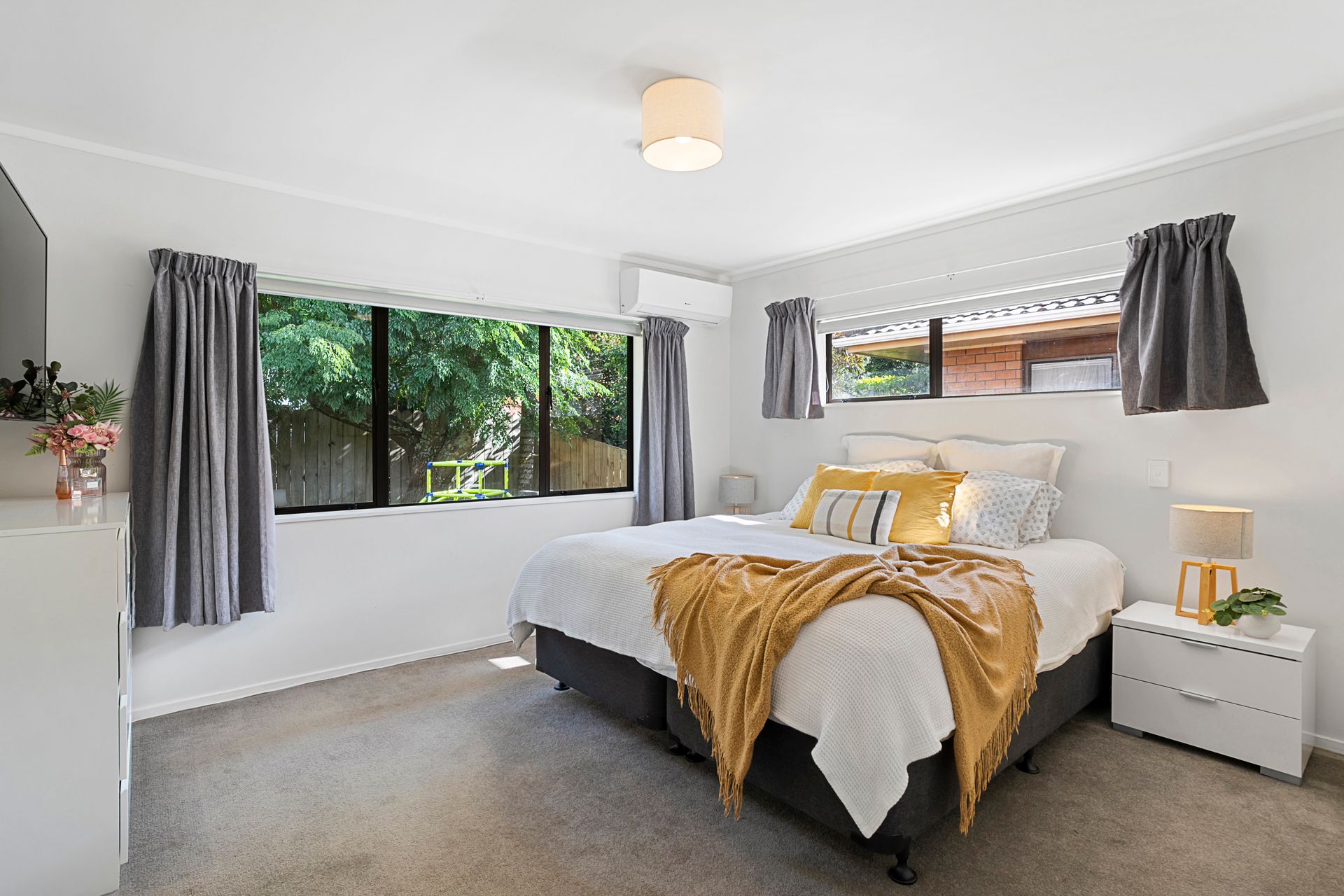 Discover three generously sized double bedrooms, each thoughtfully equipped with its own heat pump to ensure year-round comfort. The master bedroom boasts a walk-in wardrobe and an ensuite, providing a serene retreat at the end of the day.