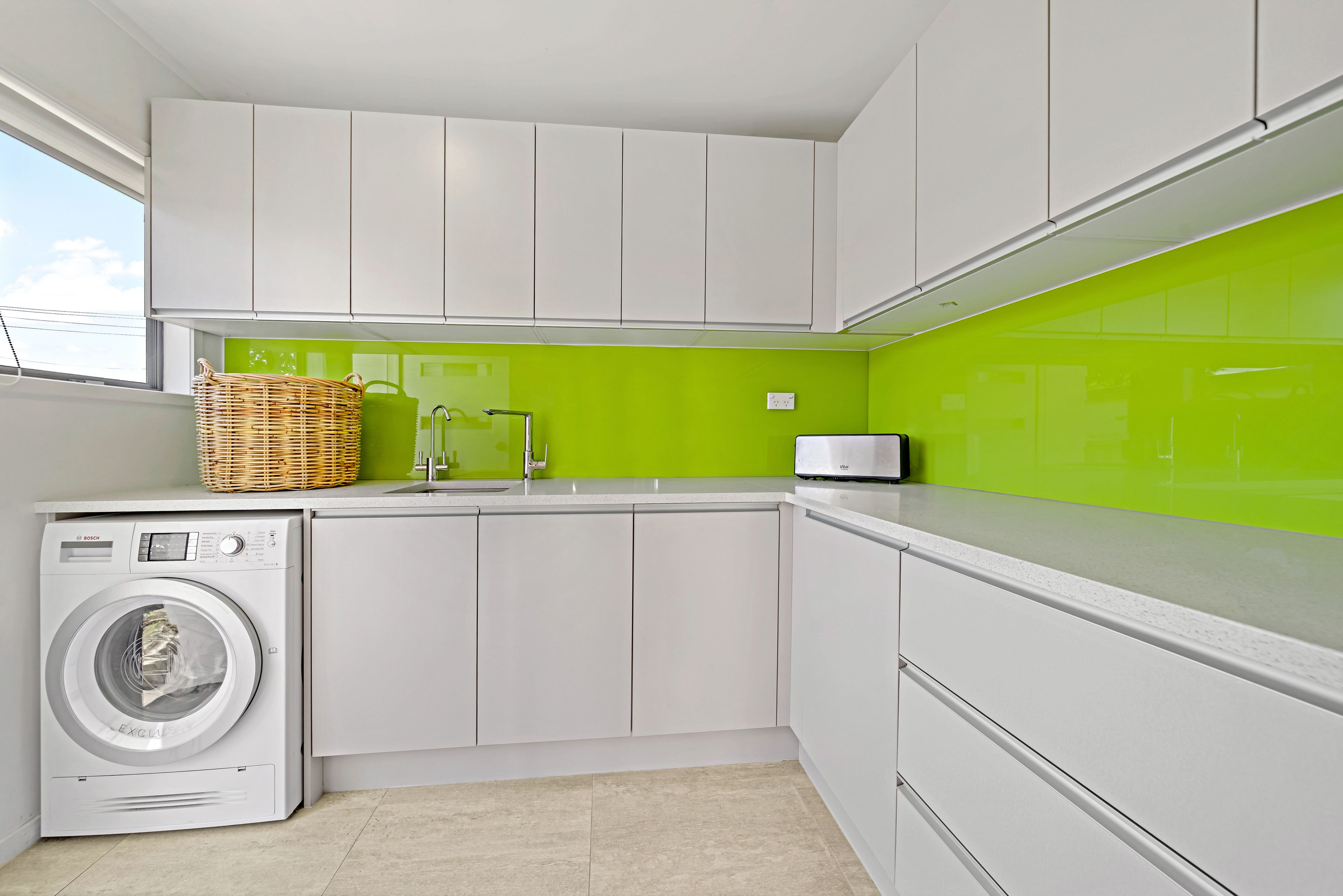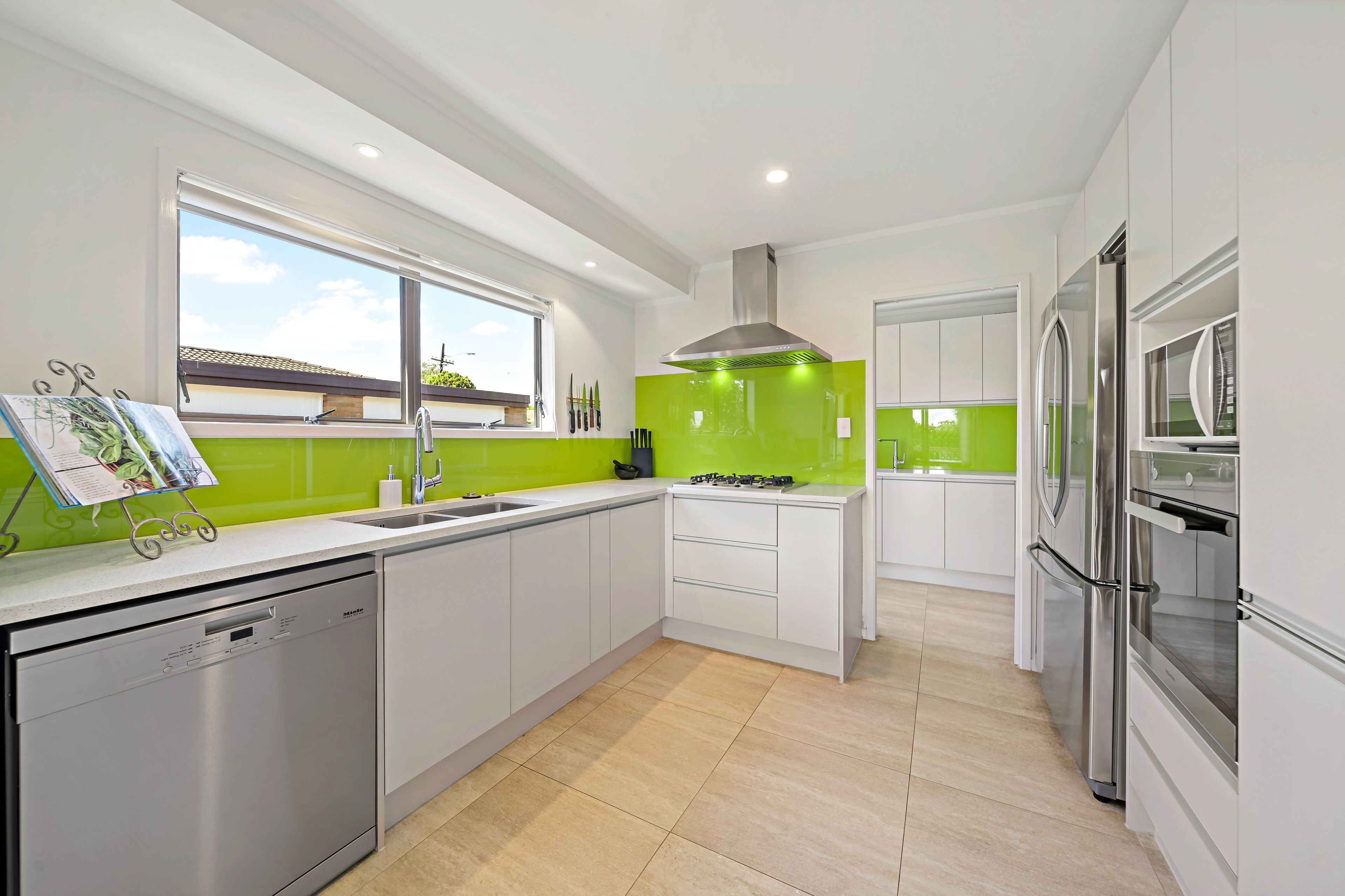 This blissful home is positioned on a generous 713m2 freehold title. It features three bedrooms, a family bathroom, en-suite and open plan living which flows out to the north facing deck area. There is a fantastic modern kitchen, sunroom and study. The kitchen and laundry feature Miele and Bosch appliances adding further quality within these spaces.