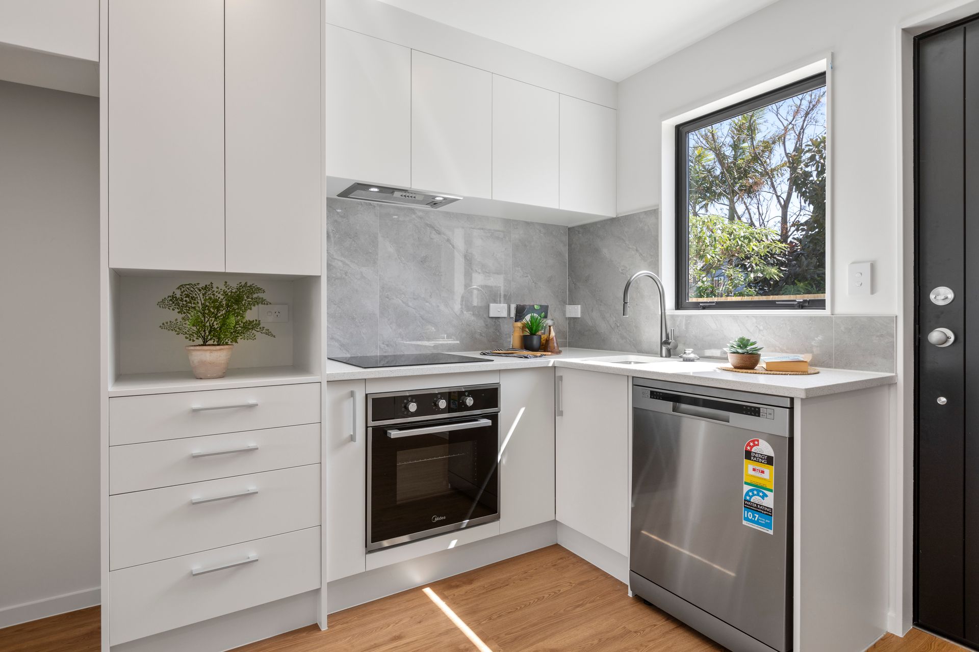 This superb B Living home features a different floor plan, aspect, and outdoor area! This unique terrace house is anything but a cookie-cutter home! Beautifully constructed with ultra-modern, low-maintenance construction, you are offered a two-bedroom plus Flexi room.