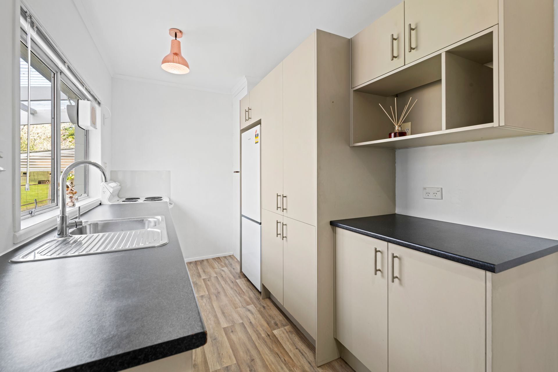 Modern comforts: Since 2018, upgrades include new carpet, a heat pump, a wall heater, a modern hot water cylinder, new vinyl in the kitchen, and ventilators in the kitchen and bathroom to keep everything fresh.