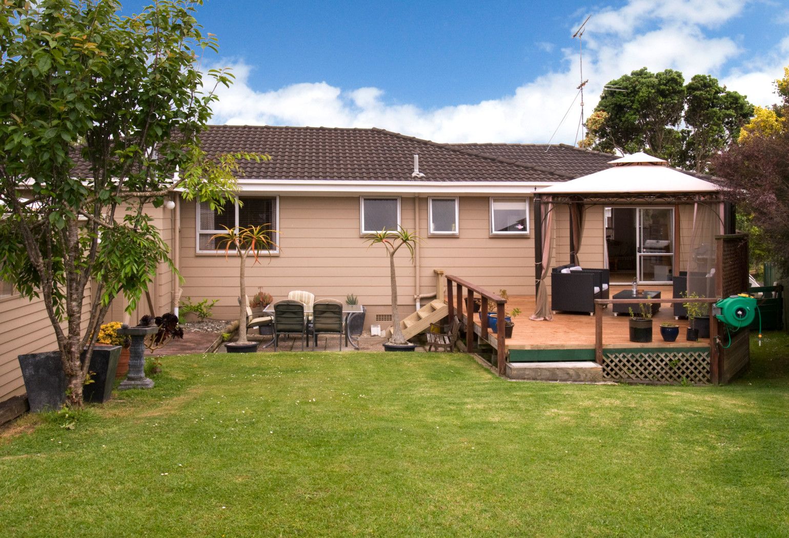This spacious home in Cockle Bay has three bedrooms, master with ensuite, a separate bathroom, two living areas with an open plan kitchen and family room. Ranch-sliders open to a sunny private deck, the family room and lounge both have heat pumps for your year round comfort and gas hot water. Double garage and off street parking, large 759m2 level section. Zoned for Cockle Bay Primary, Somerville Intermediate and Howick College which are only a 5 to 10 minute walk.
