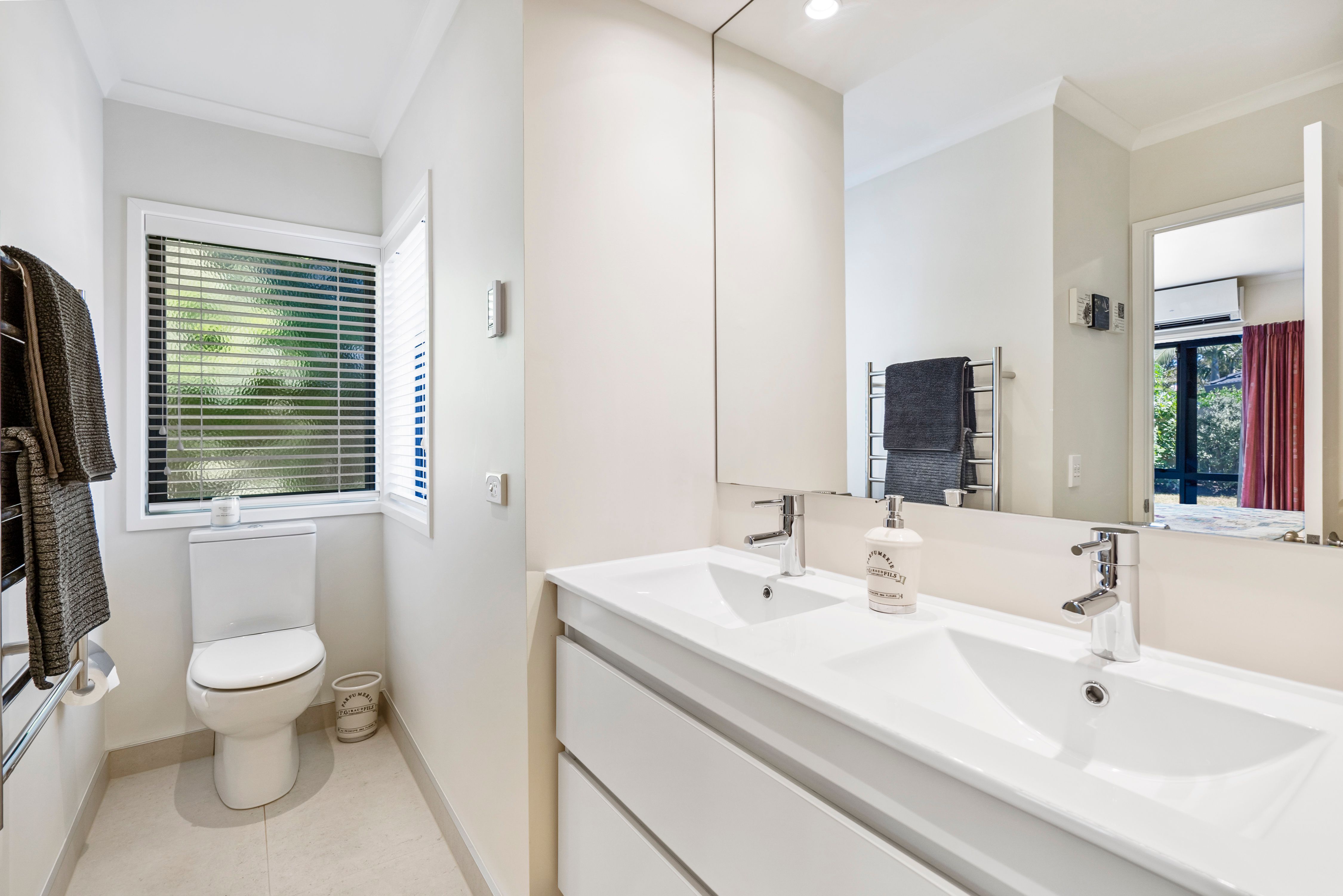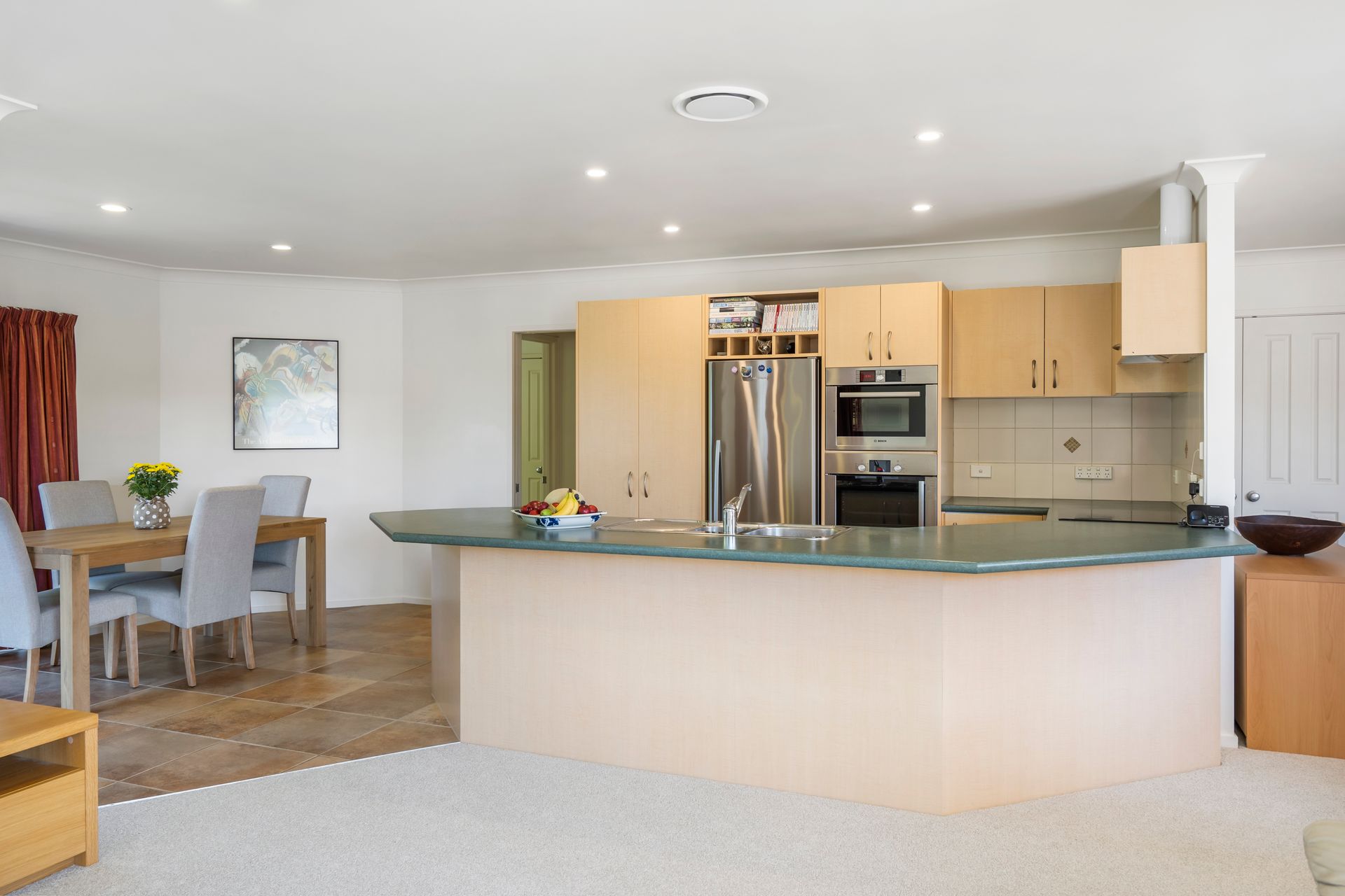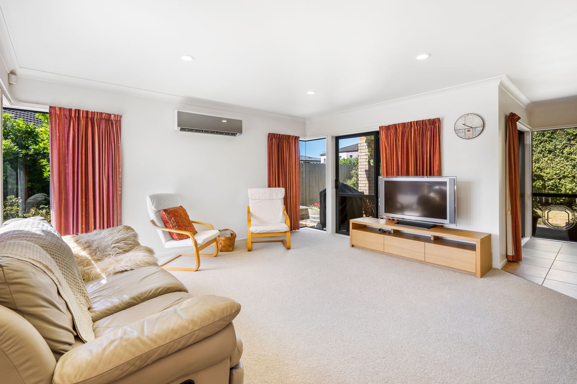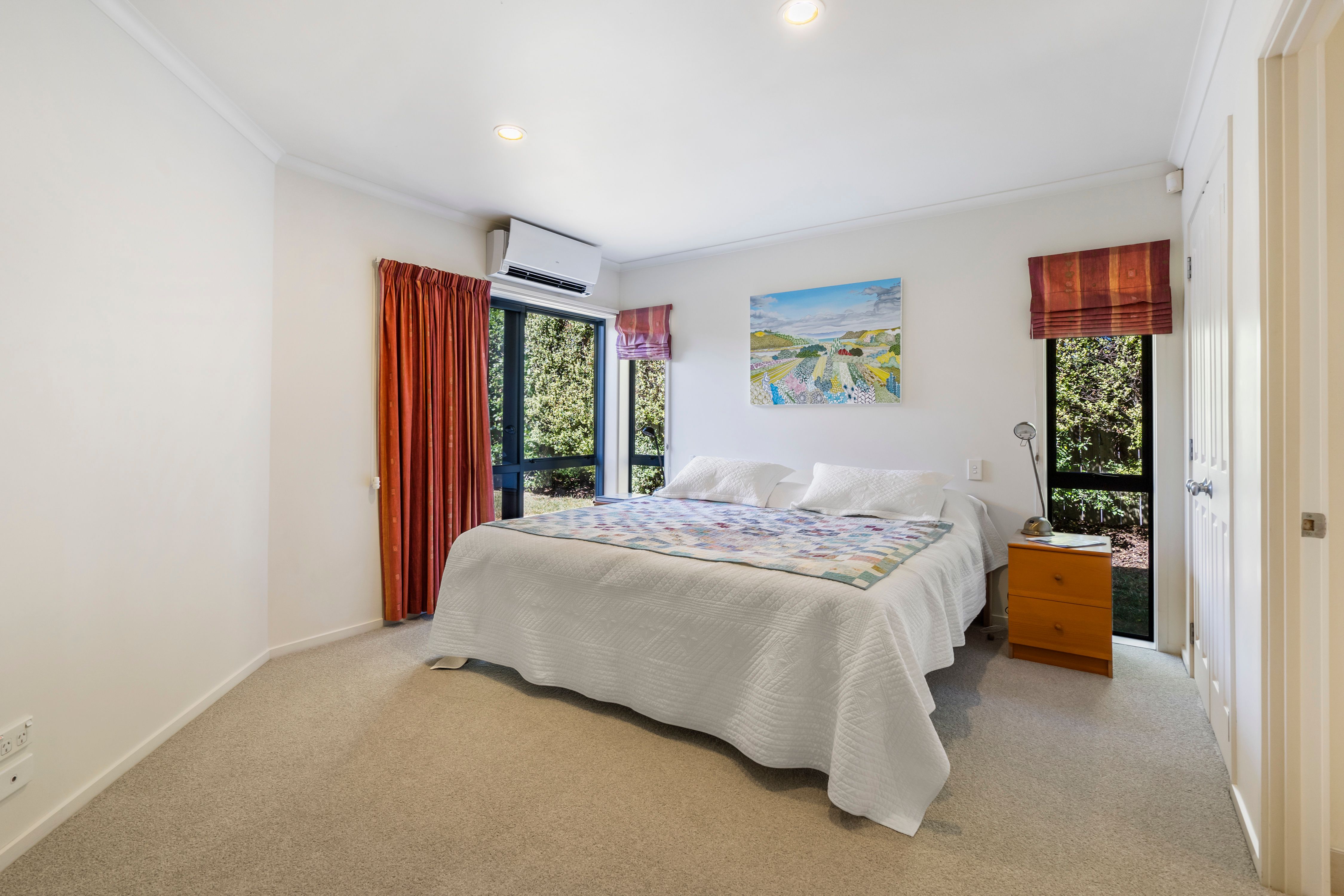 This award-winning home was designed by a locally renowned architect and builder and is nestled at the end of a quiet cul de sac. Comprising 3 double bedrooms (master with ensuite), this house ticks all the options. An open plan family/lounge/dining area showcases a Fyfe custom kitchen. With new carpet throughout, newly renovated tiled bathrooms complete with underfloor heating, two large heat pumps, the list of quality features is everything you could wish for and much, much more!