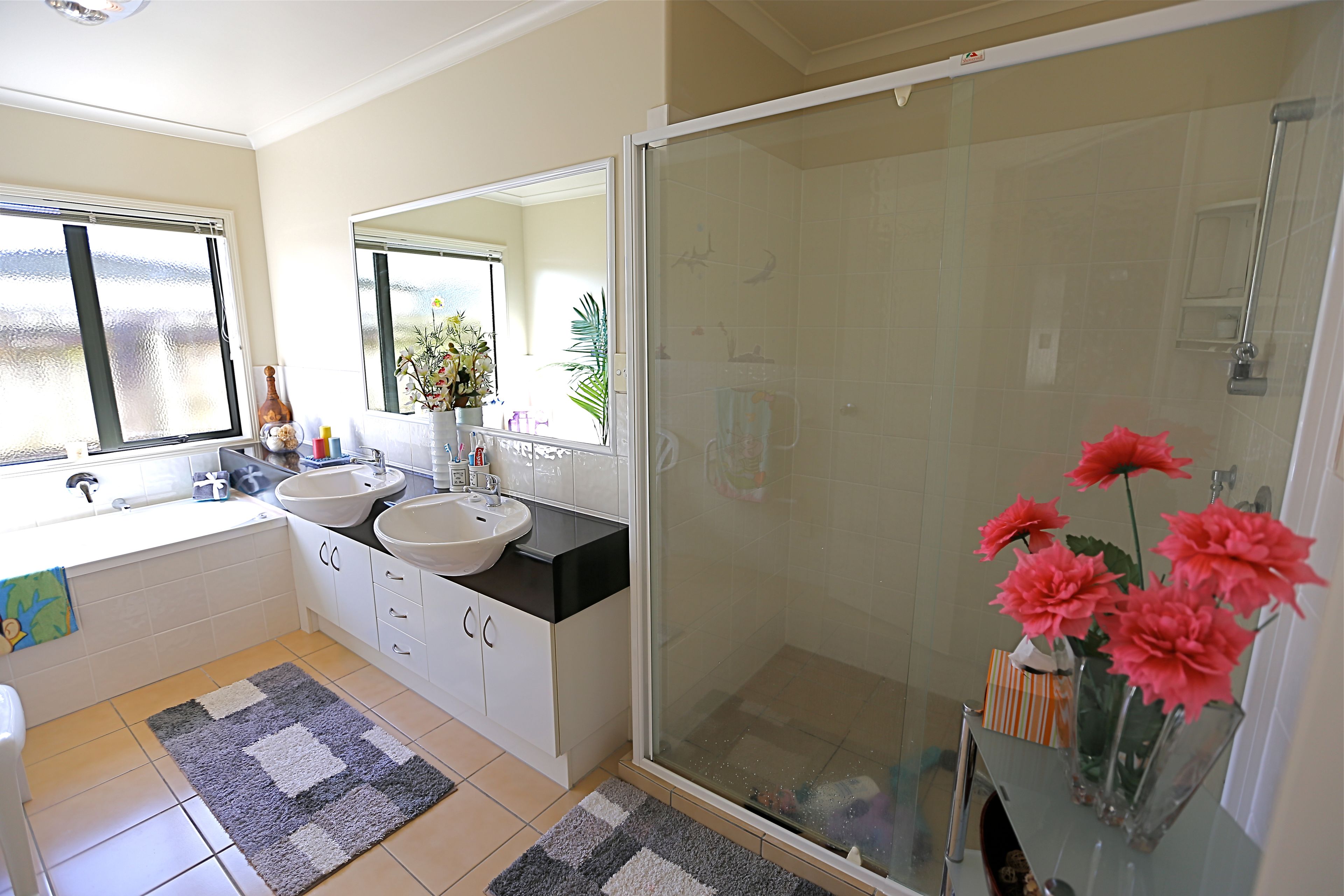 Comprising: A large 3 bedroom, 2 super bathrooms,