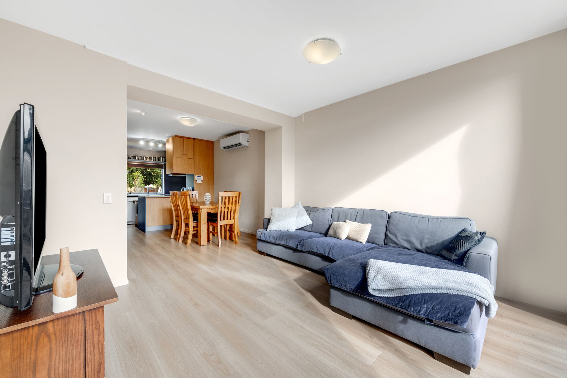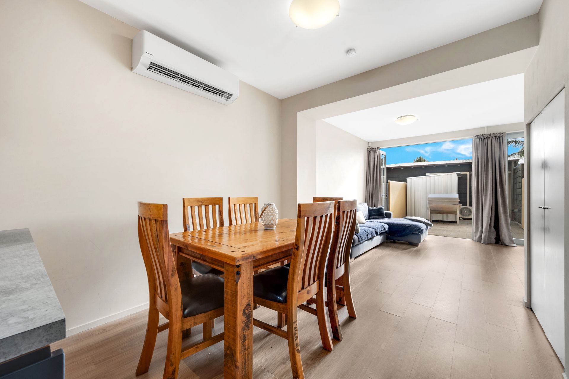 The two-level layout includes two double bedrooms, a double garage, conveniently fitted with a heatpump that easily doubles a second living area. The home enjoys a second heatpump, and a seamless flow to a private courtyard for outdoor relaxation and entertaining.
