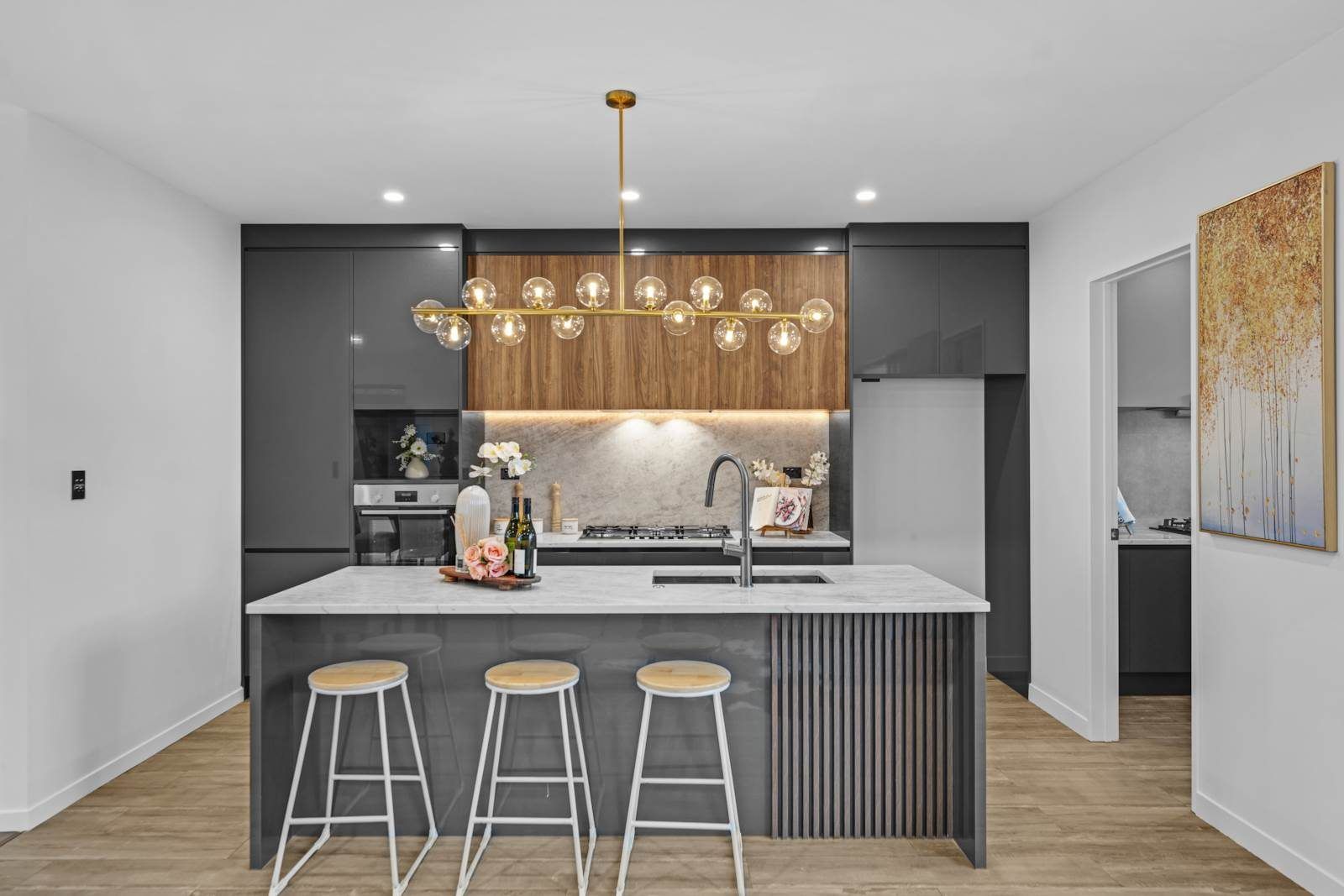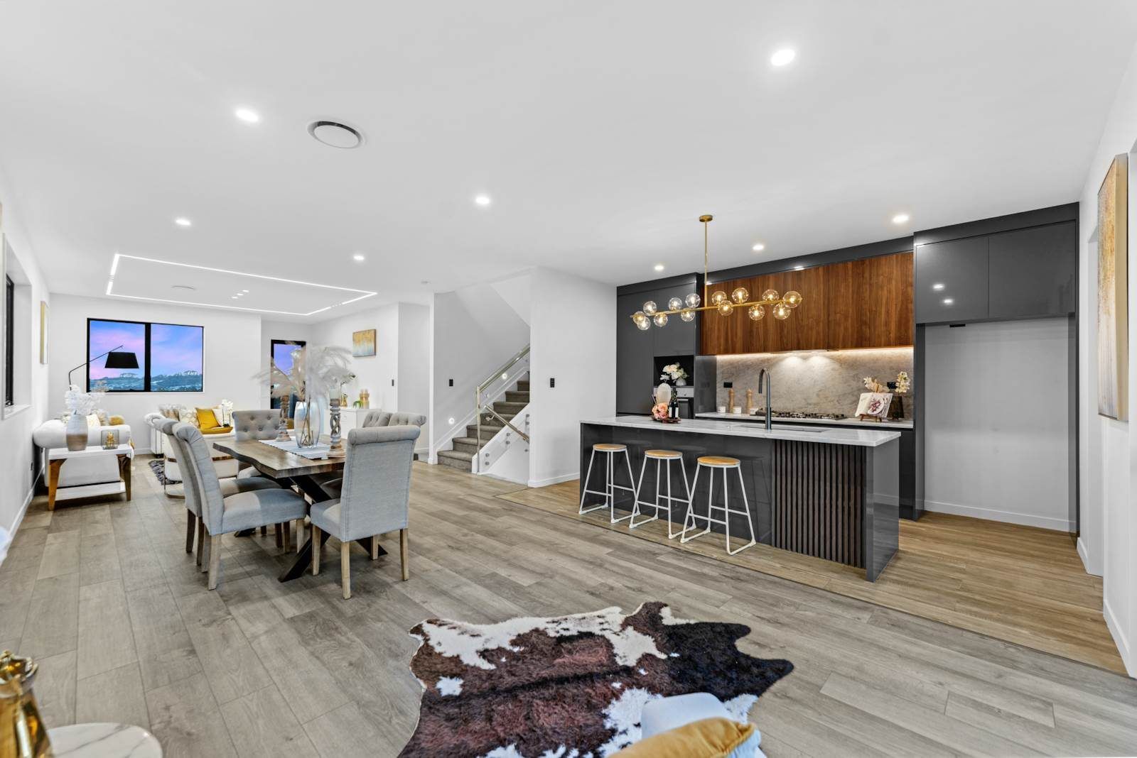 From the ground floor double garage and laundry, through the open-plan living and dining areas, right up to the top-level master suite with its private lounge, wet bar, and sweeping city views, every detail has been thoughtfully crafted for modern family living.