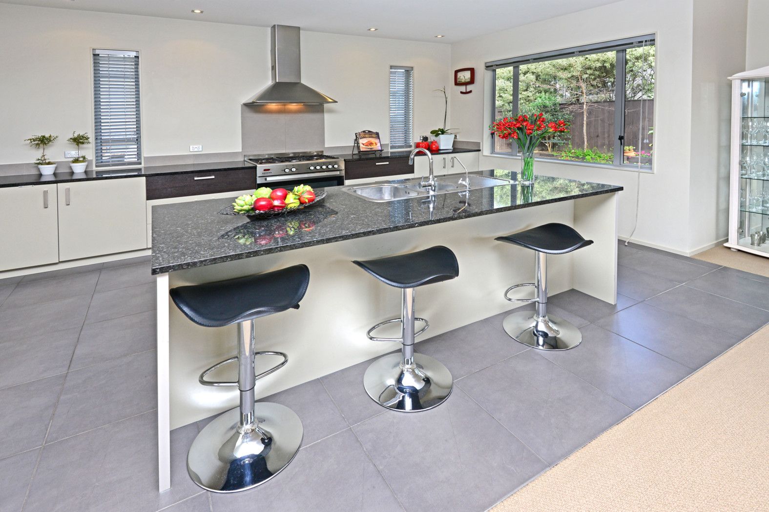 A stylish modern kitchen with 2 separate living areas