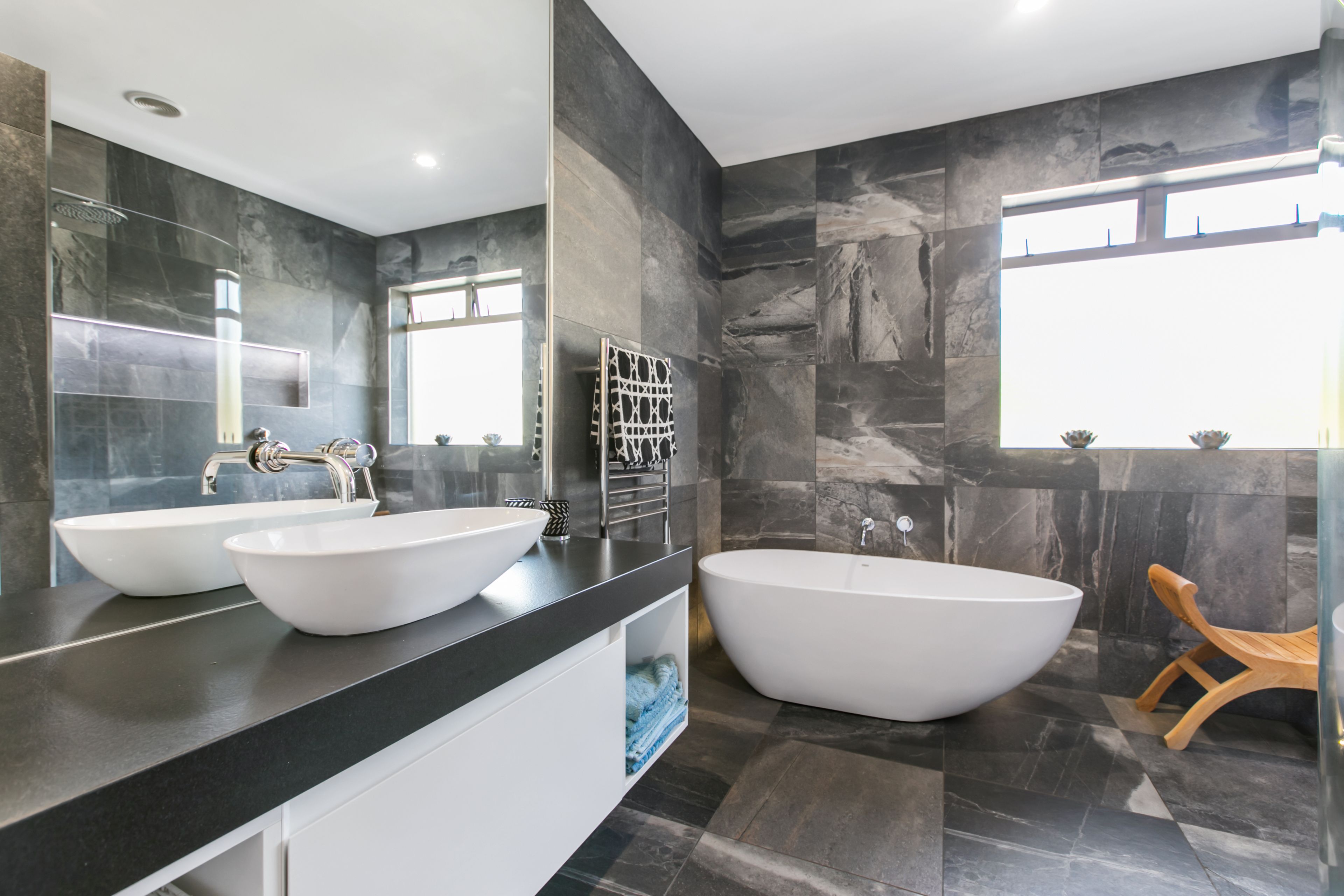 Down the hallway you'll find four spacious bedrooms, a modern tiled bathroom and a handy study. The lower level is a large master suite with its own ensuite spilling out onto a paved outdoor living areas. The separate Pool house with its own bathroom is perfect for extended family, working from home or a studio space.