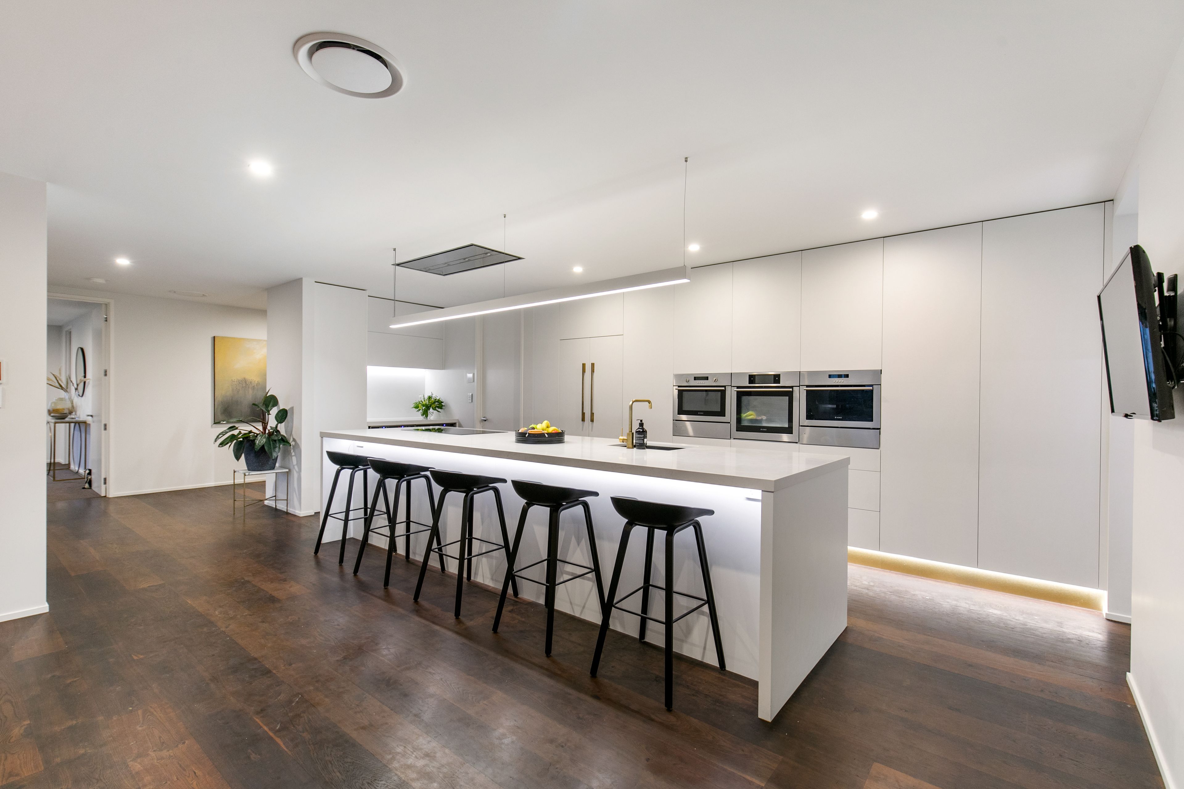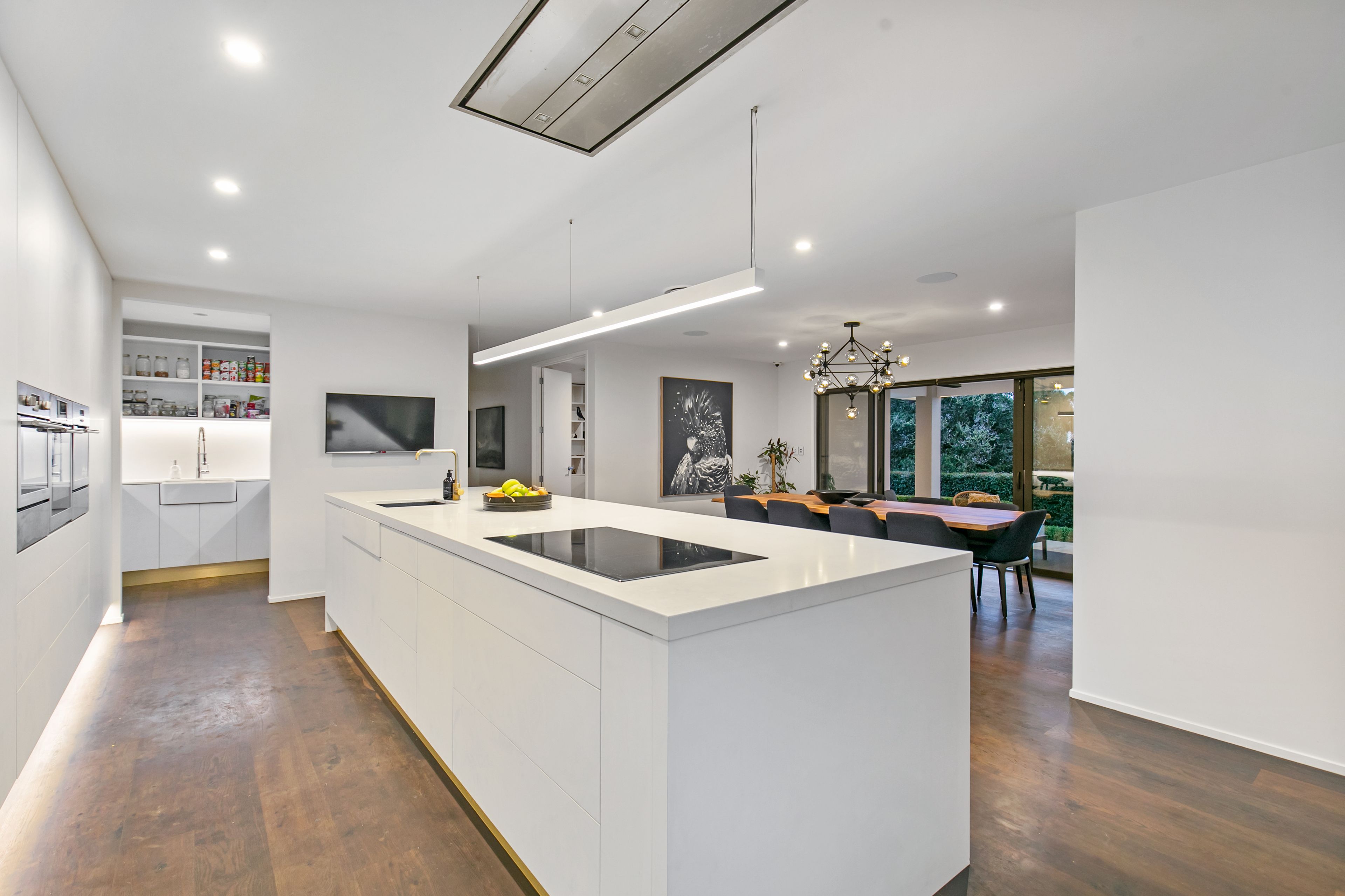 The heart of the home beats around the kitchen area that encompasses a vast bench and breakfast bar, suitably adorned with high-end fixtures & lighting to wow your guests. With clever & varied storage, Integrated wine fridges, and a full-sized scullery, it's hard to imagine a better place to cook.