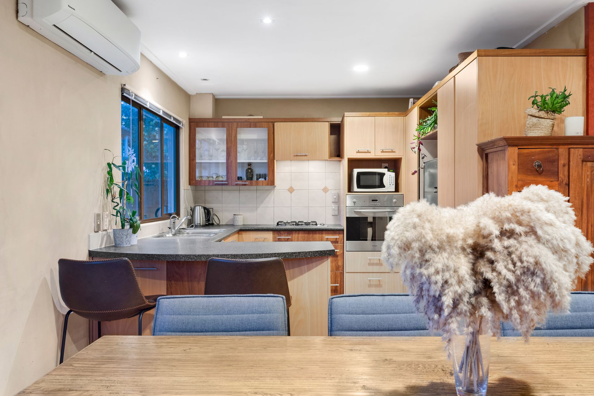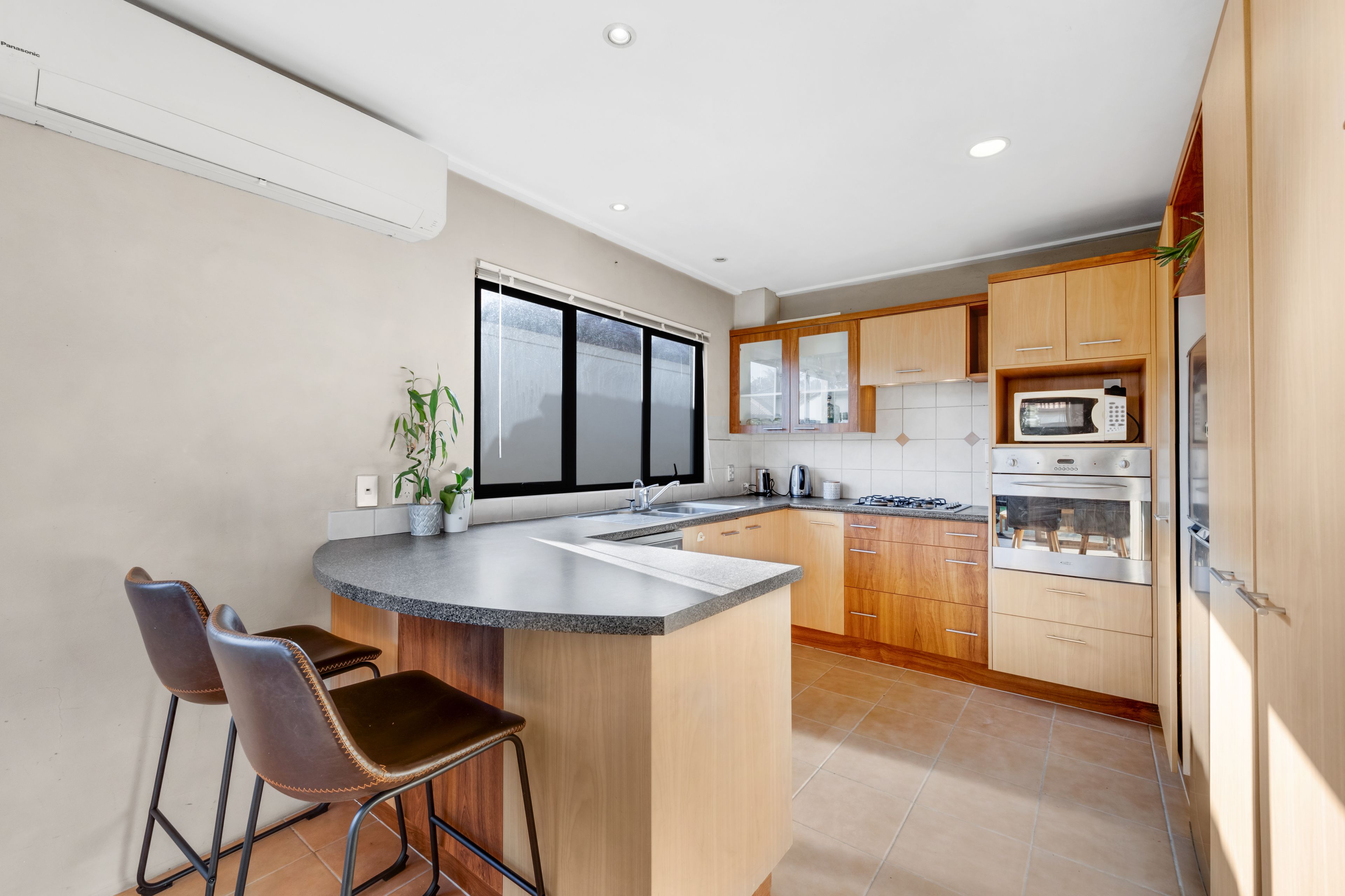Thoughtfully configured, there's easy access to the private paved courtyard from the open concept kitchen, dining, and spacious lounge area. With a full bathroom, separate toilet, and the convenience of a heat pump and home ventilation system, your year round comfort is almost guaranteed.