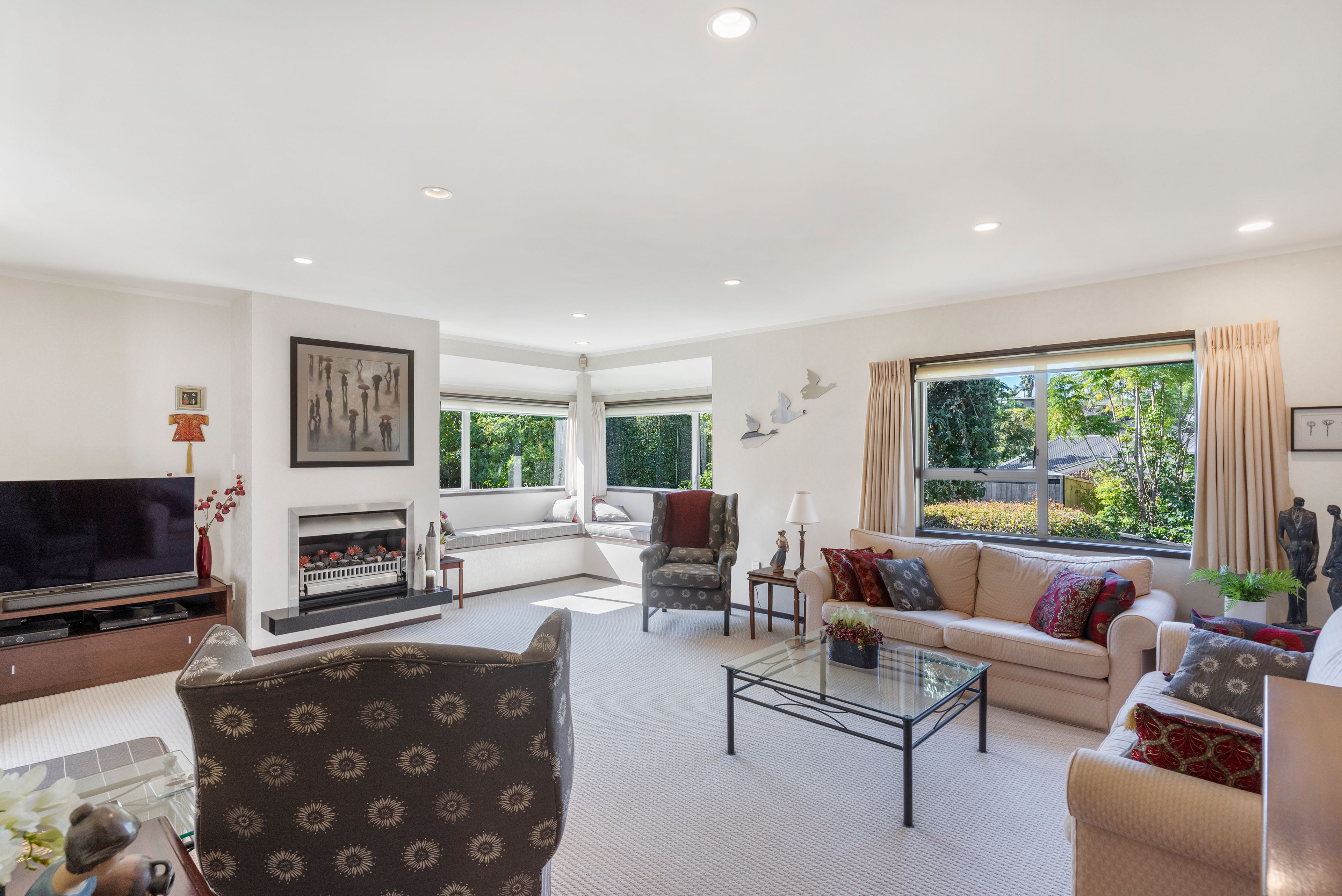 As you enter this home there is a large lounge with a fireplace, lots of natural light and window seats for a cosy reading corner. From here you can move through to the dining room and family/living room with plenty of space to gather with friends and family. These adjoin the kitchen with sweeping bench tops, ample storage and quality appliances.