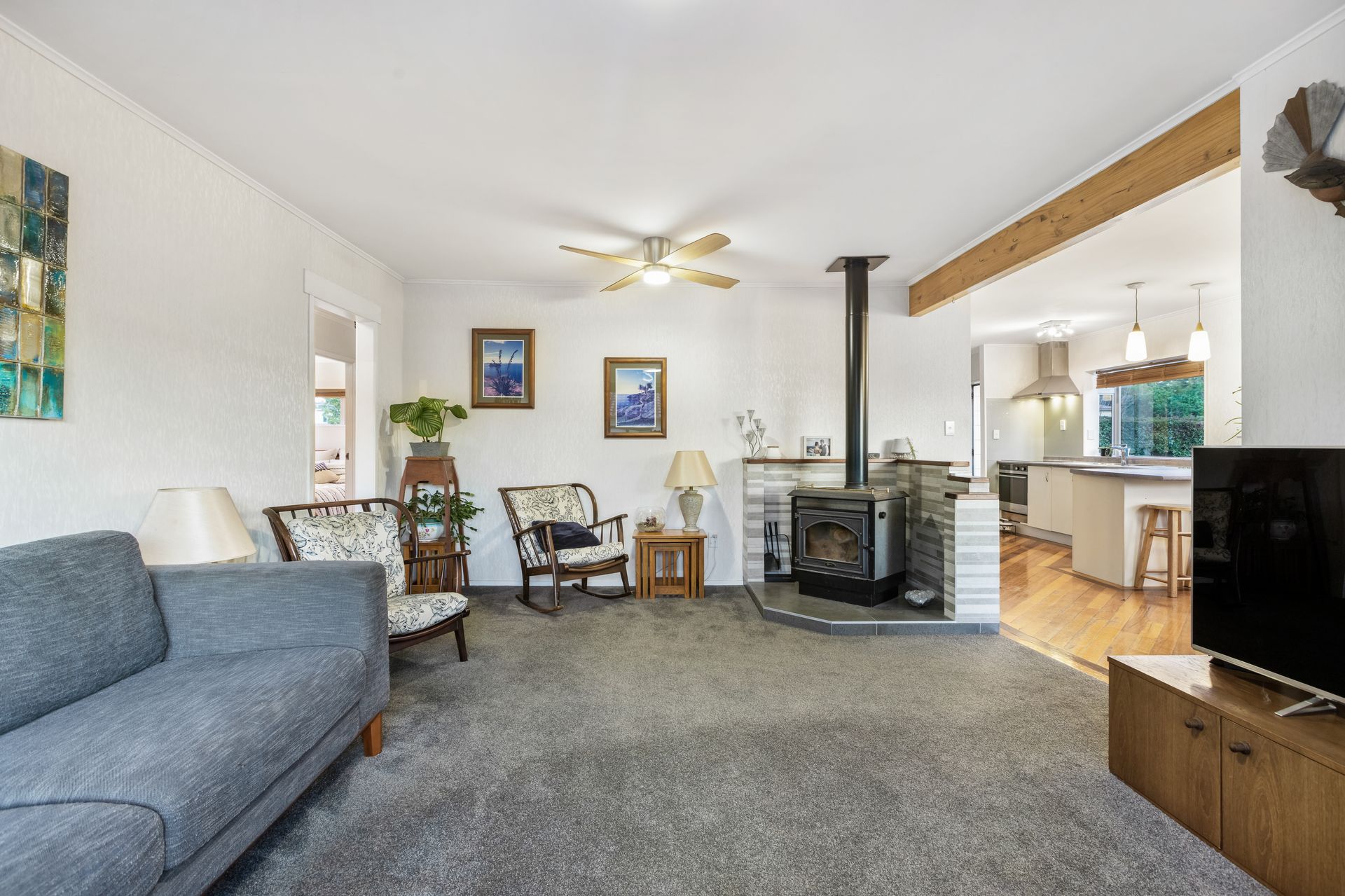As you step inside, you will be greeted by the large living room, complete with a free-standing fire with a wet back, ensures cozy winters by heating both the hot water and the entire home, plus three spacious bedrooms accompanied by a modern family bathroom. Upstairs, two additional bedrooms, along with an informal living area and another bathroom, providing ample space for the whole family.
