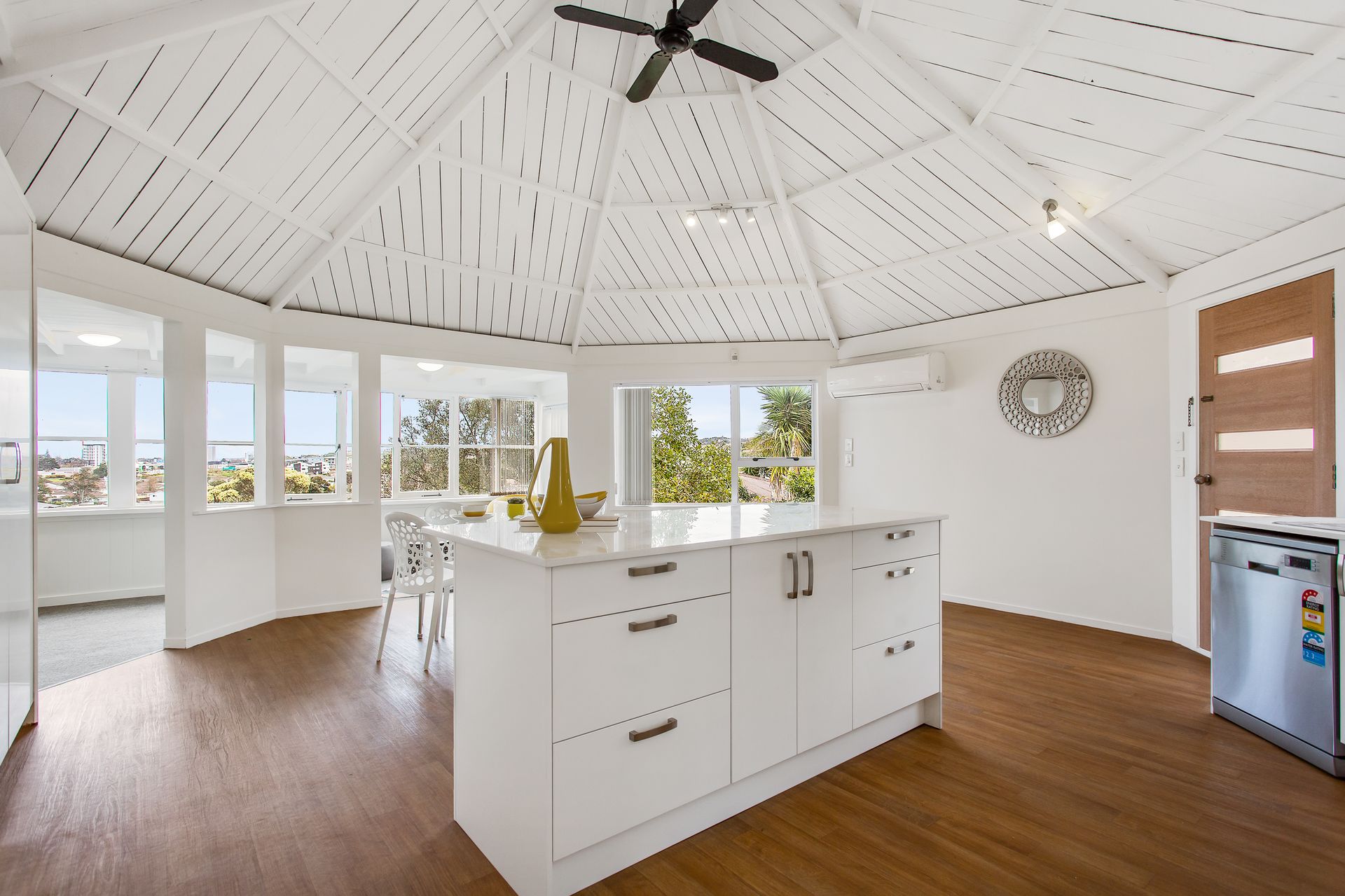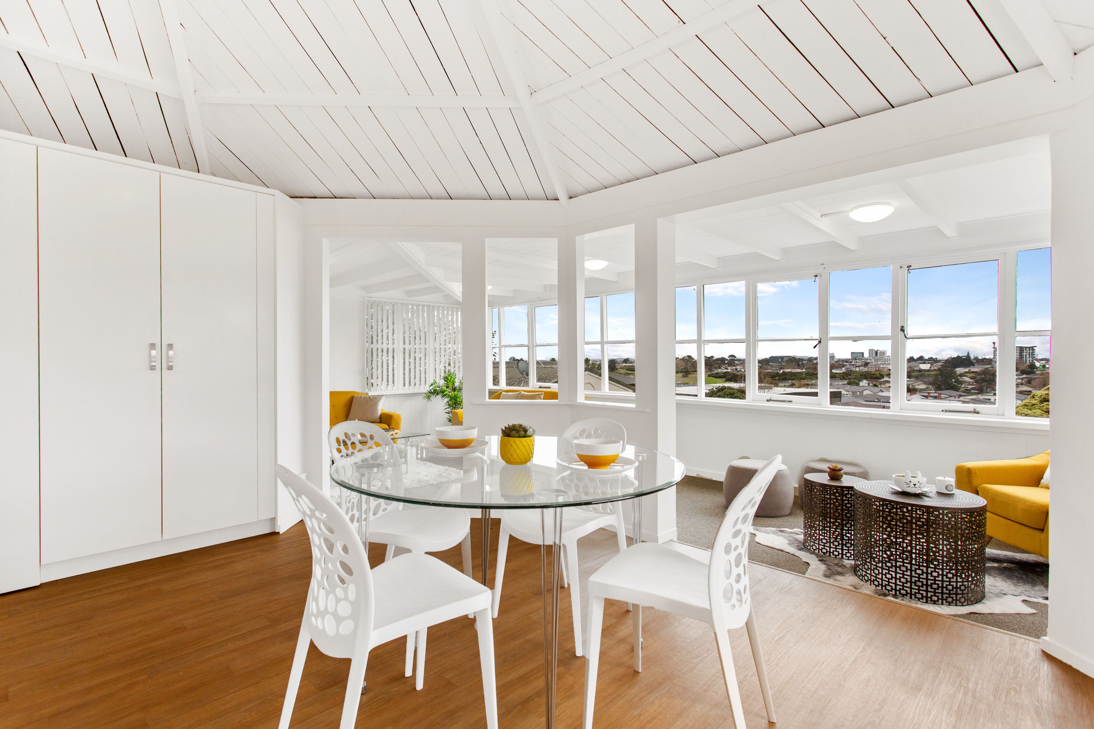 Executed in a neutral white palette sure to pair to perfection with your selection of art and soft furnishings with wide wrap-around panoramic windows admitting waves of natural light, abundant warmth and sun.