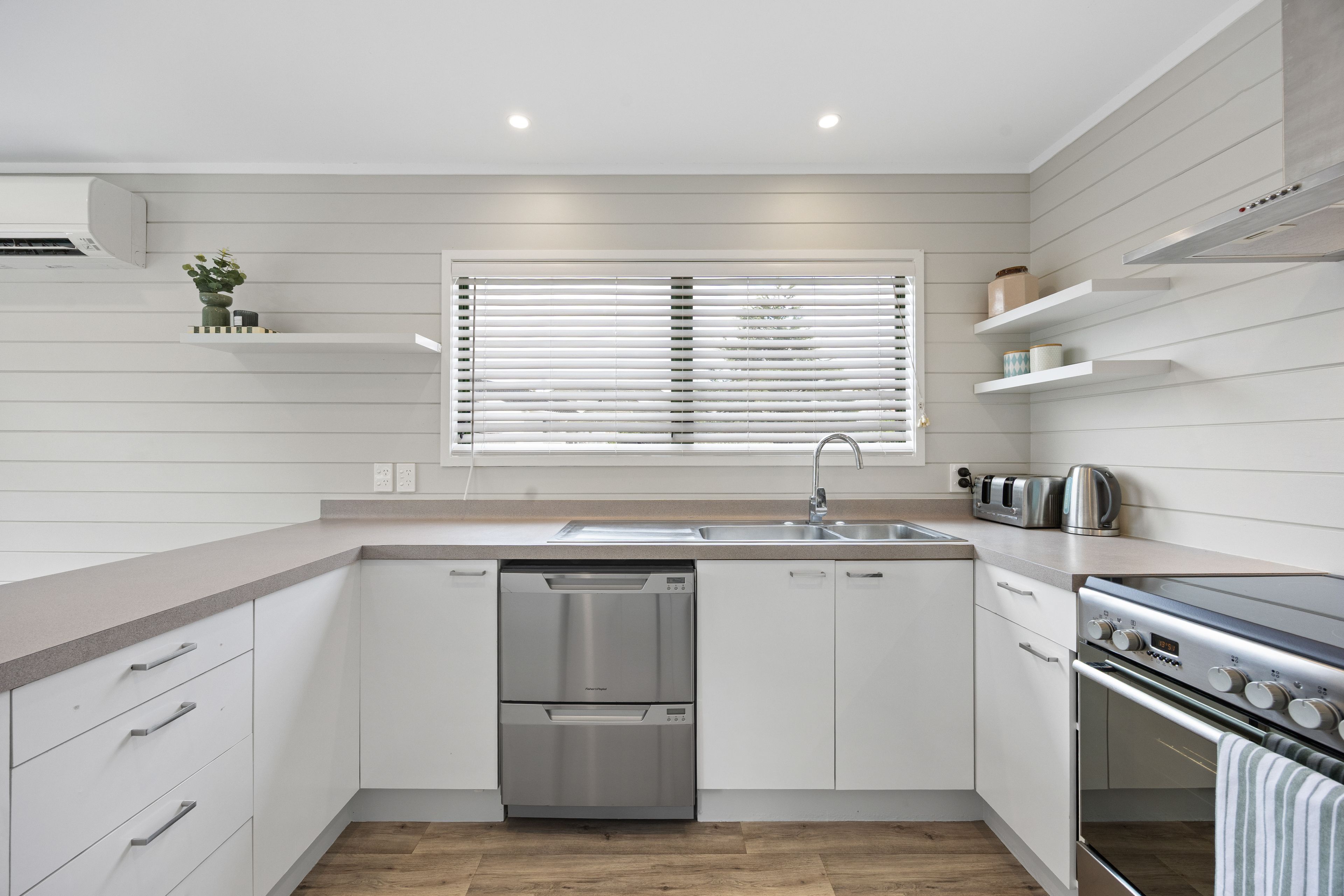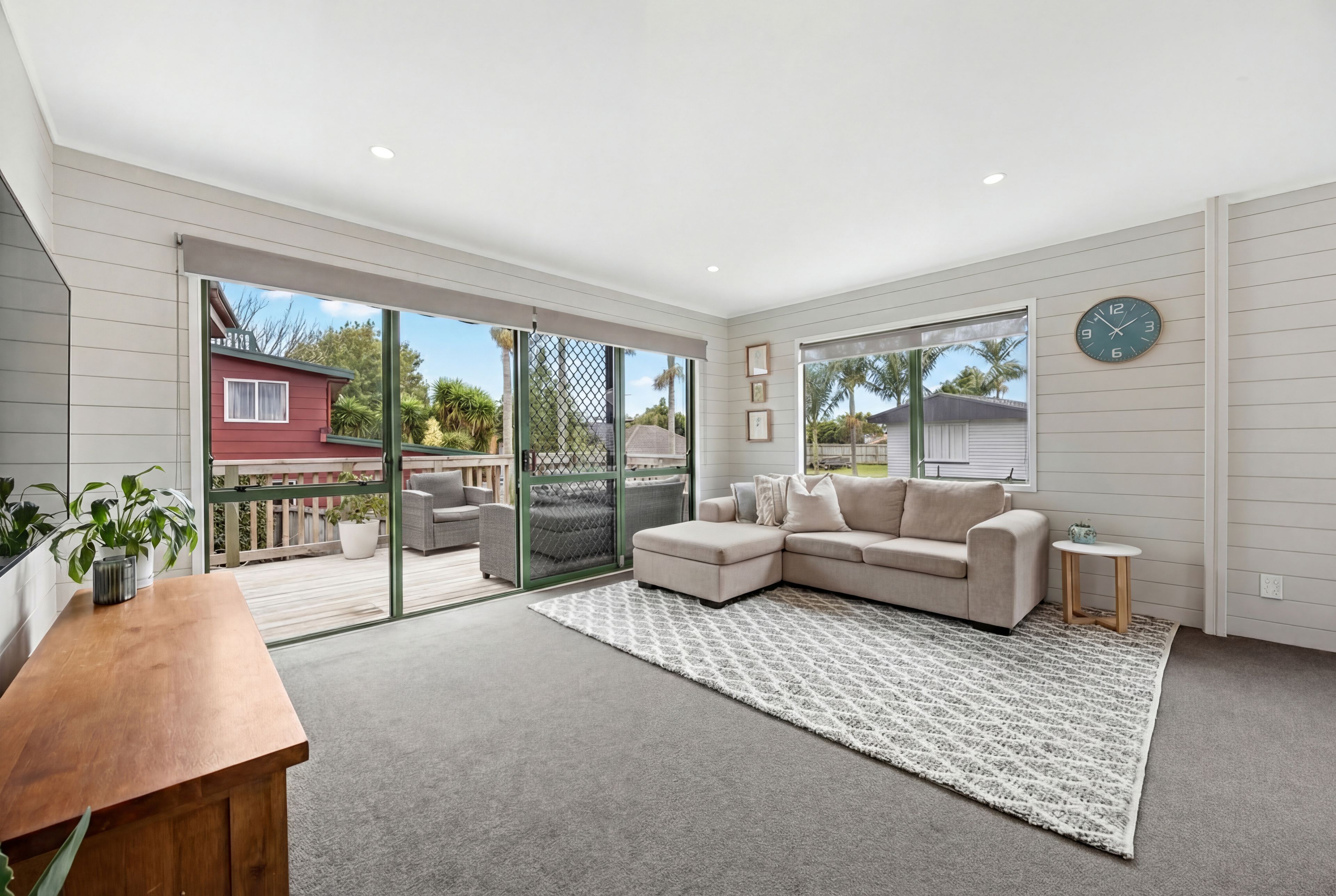 Step inside to discover a beautifully flowing open plan living space where kitchen, dining, and lounge come together effortlessly. The lounge seamlessly flows out onto the expansive entertainer's deck - delivering that perfect indoor-outdoor connection Kiwi families love. The tidy, functional family kitchen is ready for everything from quick weeknight dinners to weekend baking sessions, while the heat pump ensures year round comfort. Natural light floods through, creating a warm and welcoming atmosphere that's perfect for everyday living and special moments alike.