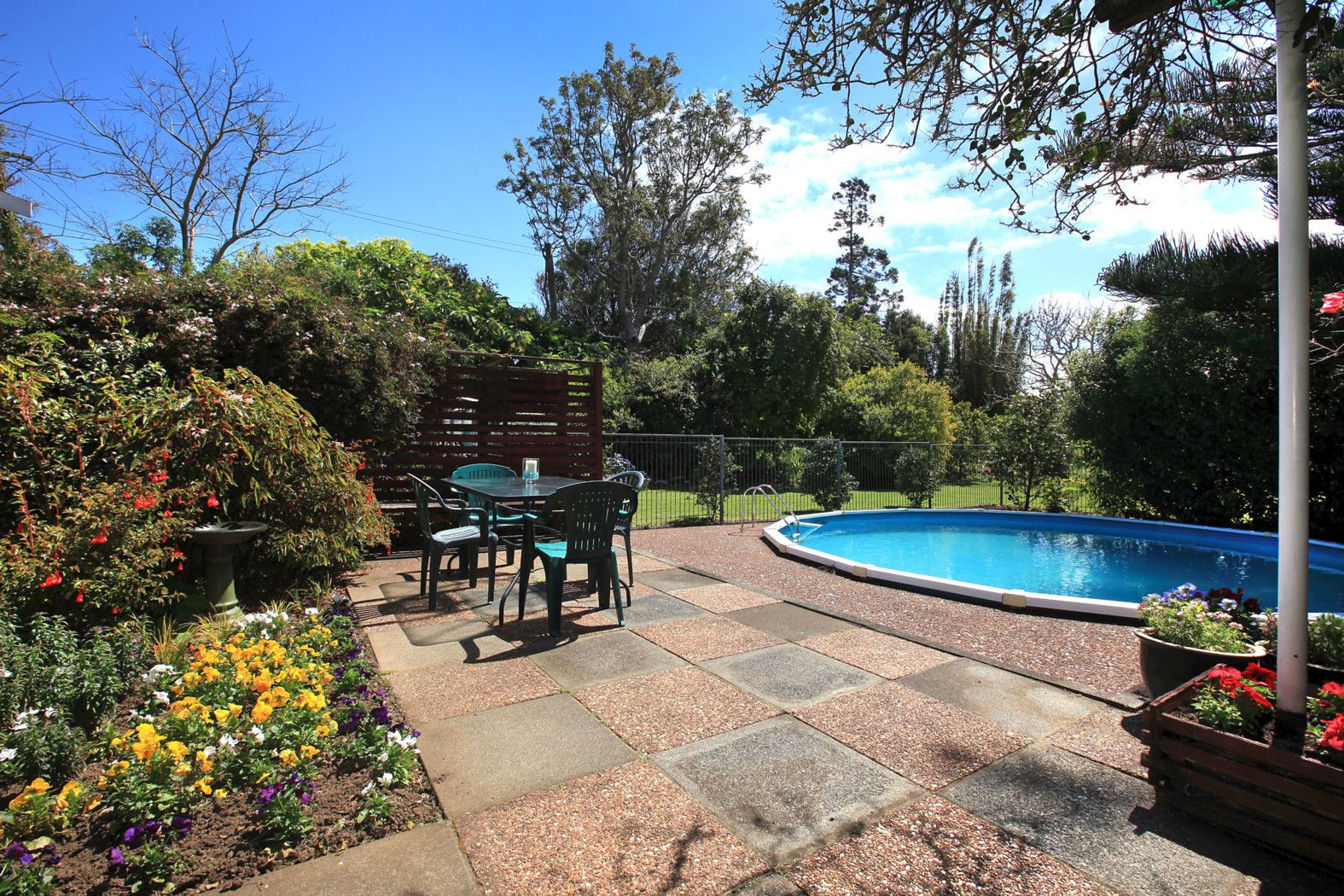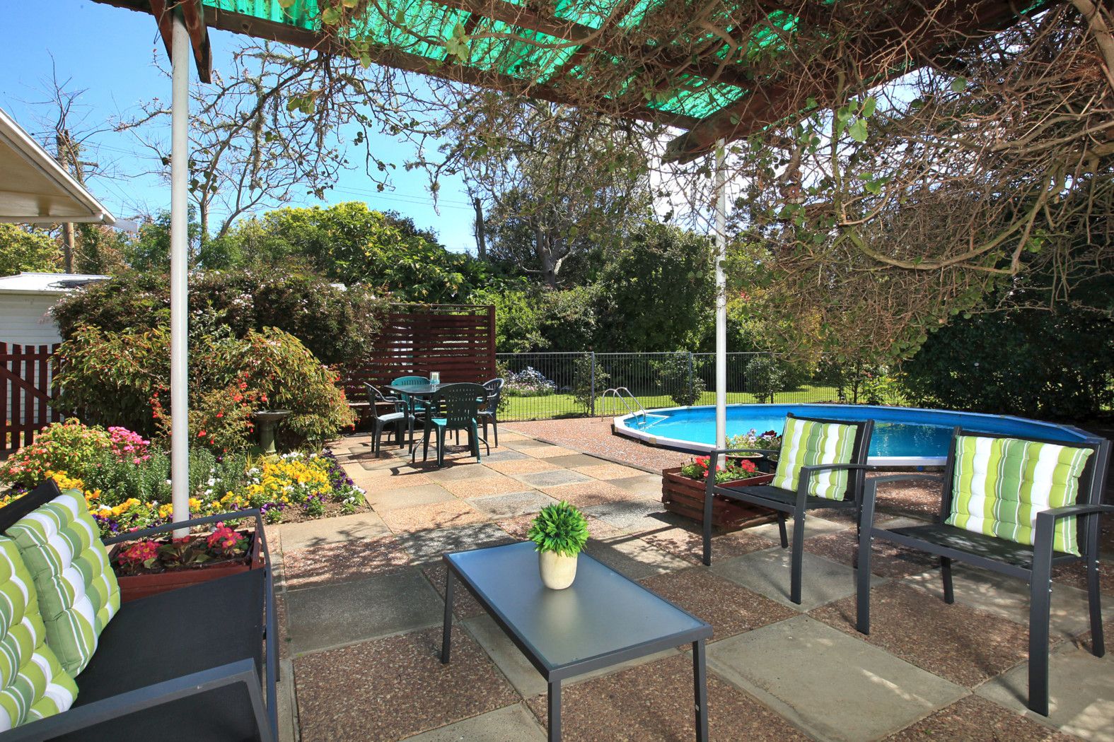 With four bedrooms, one and a half bathrooms and a large open plan dining and lounge designed around the sunny north facing patio, you can entertain alfresco under cover or spread out further with built in seating for guests and family. Take comfort in knowing you can keep an eye on the kids as they race in and out from the in-ground pool or play hide and seek in the surrounding luscious garden.