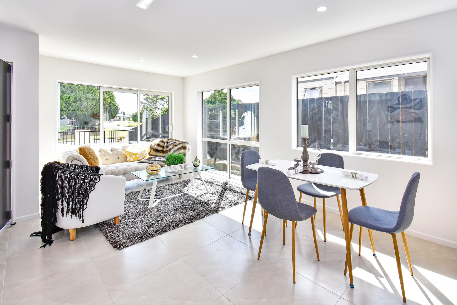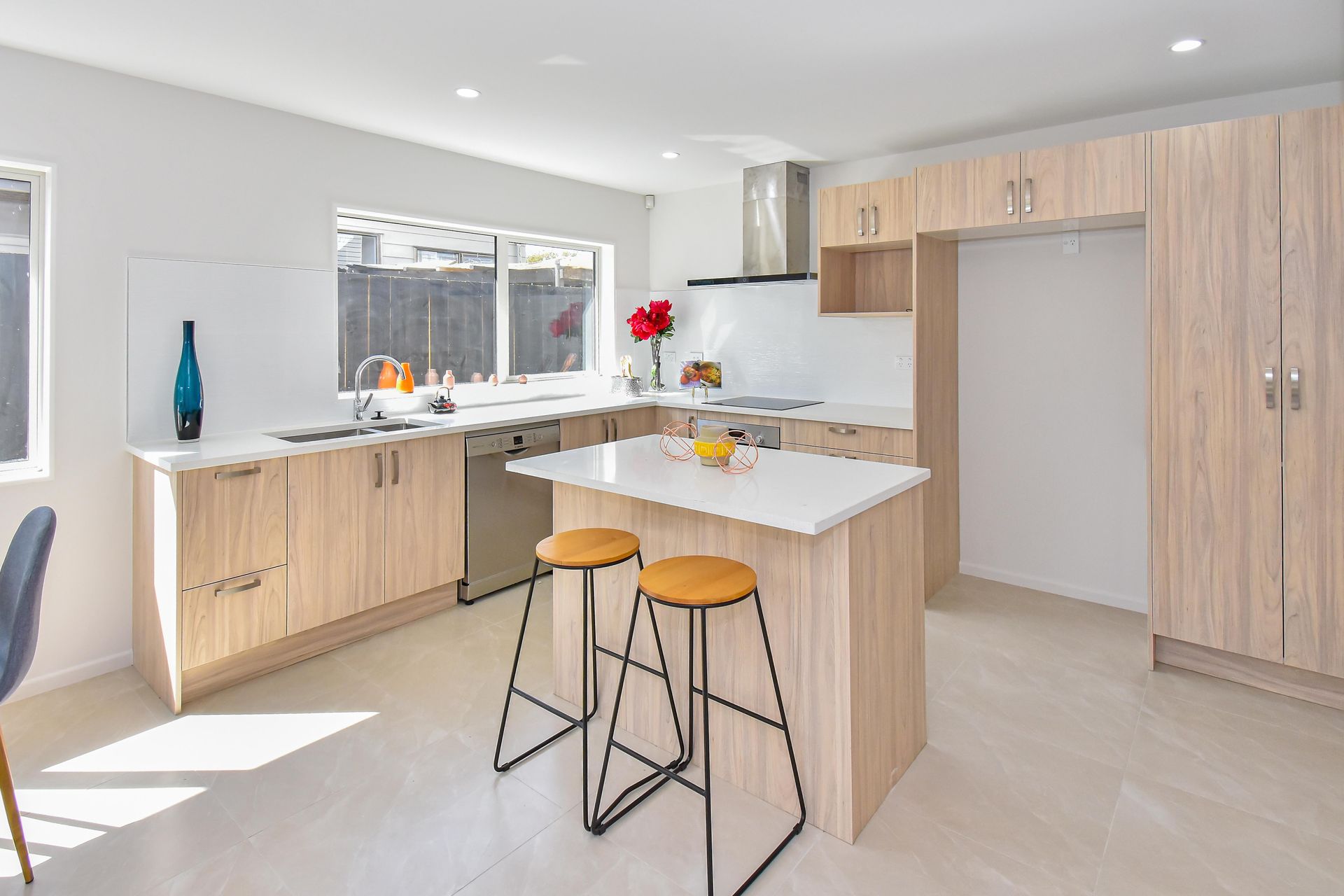 The functional kitchen is open plan with the dining and lounge which steps to a private fenced backyard.