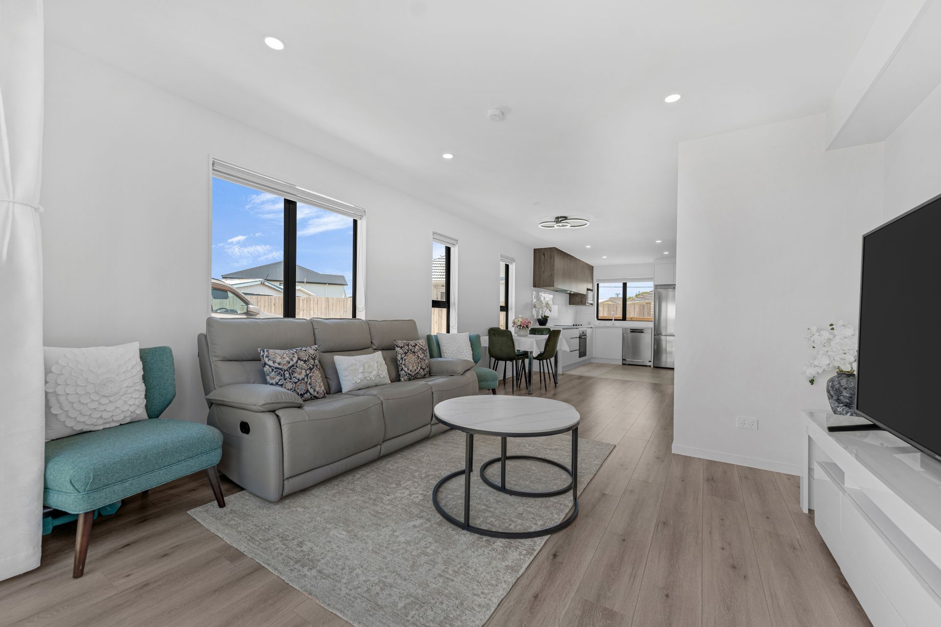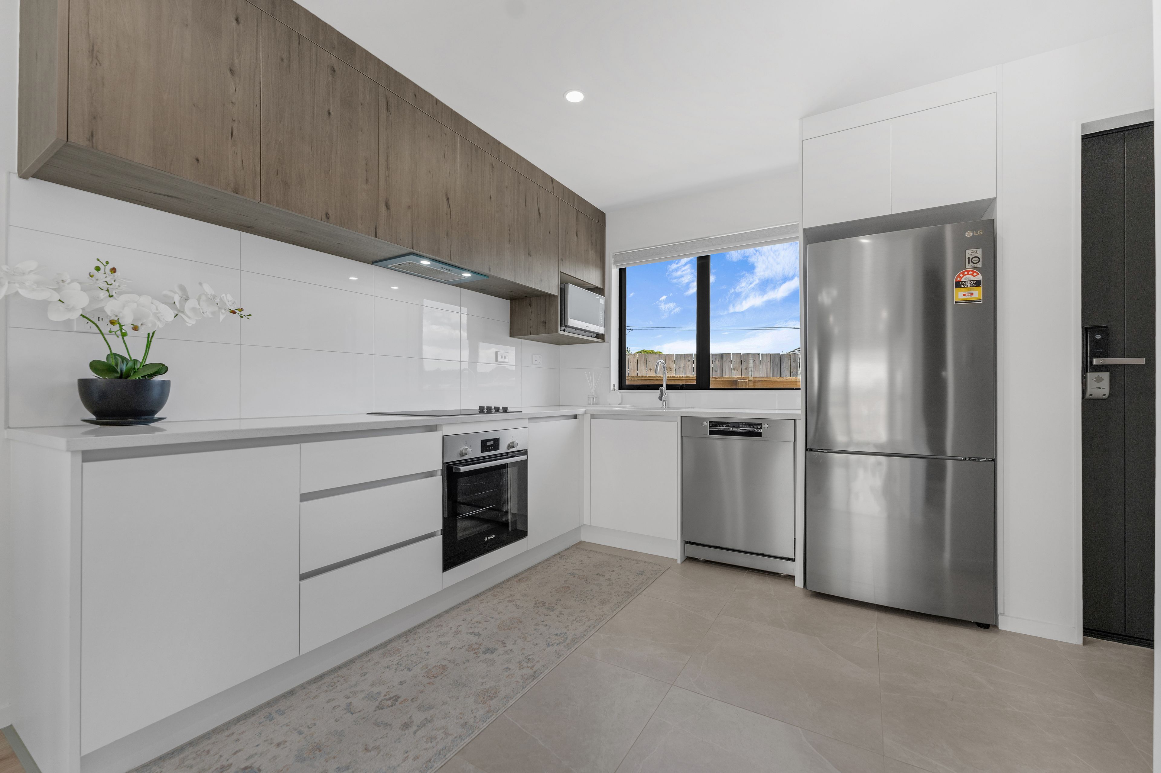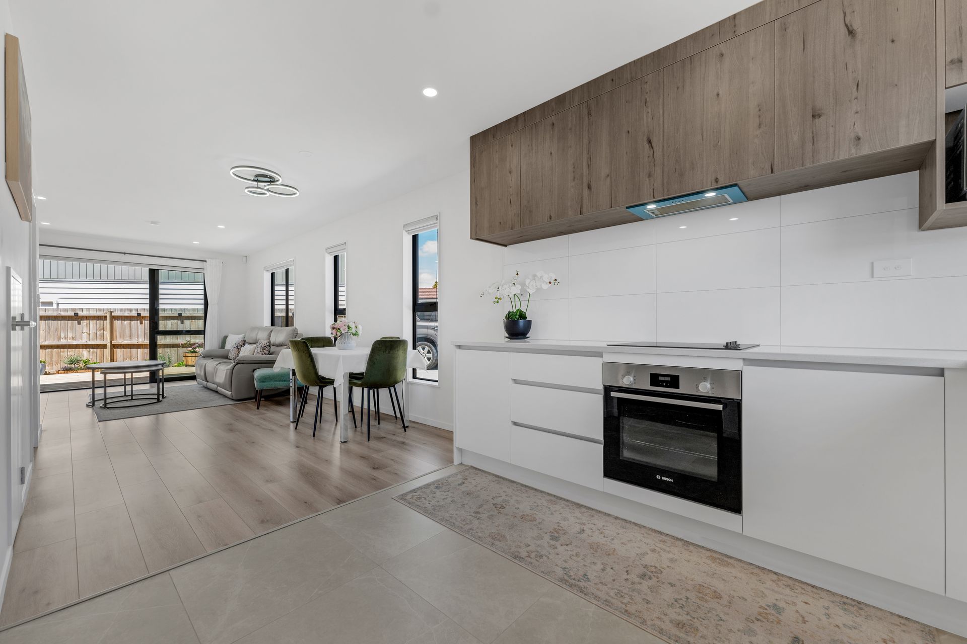 • Modern open plan kitchen with quality appliances, large benchtop with ample storage.