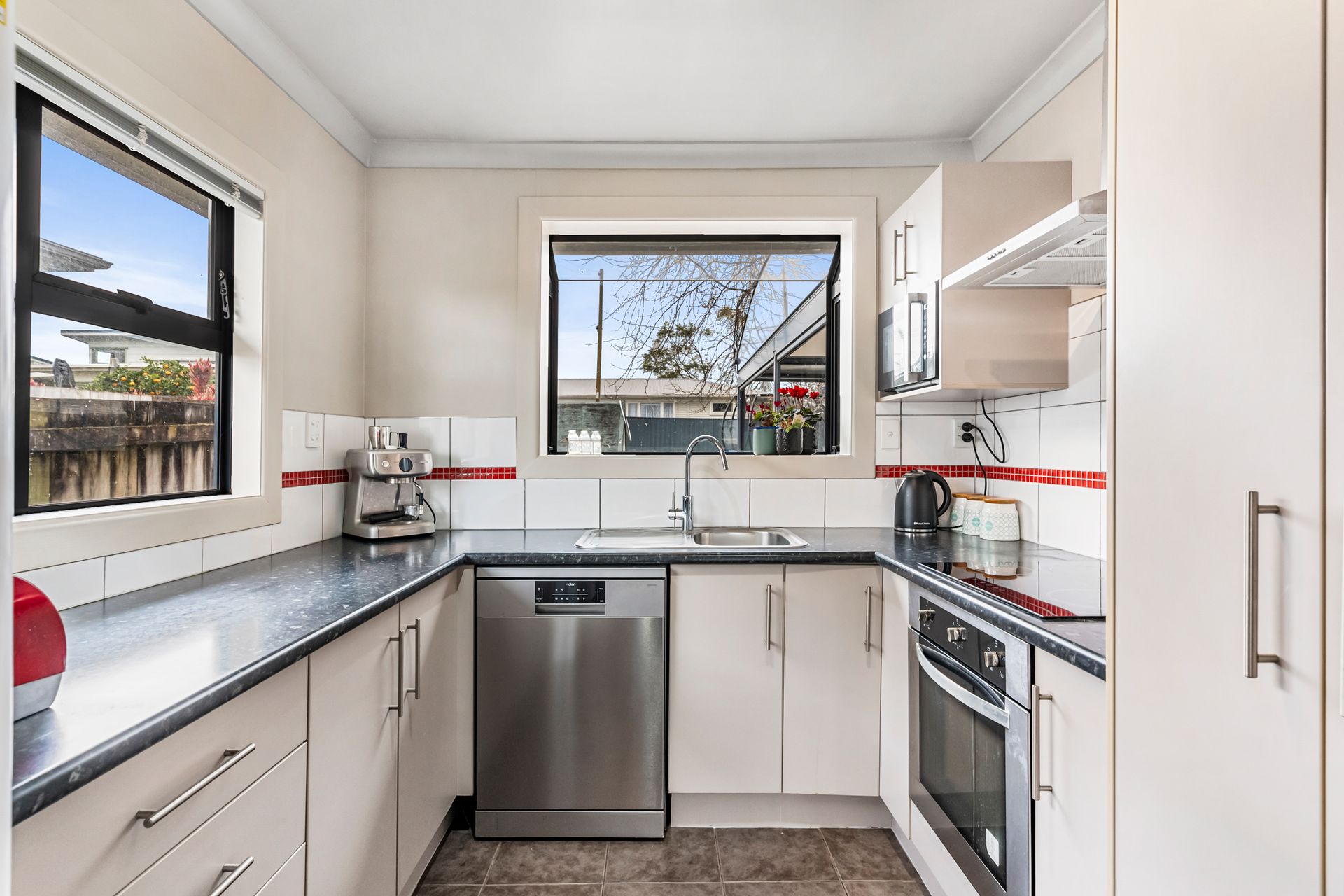• A modern kitchen complete with a dishwasher.
