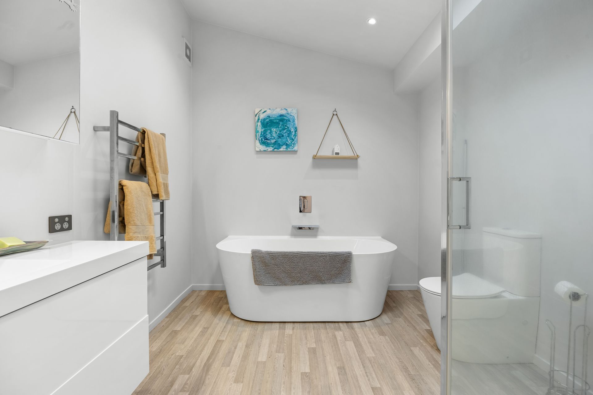 • Modern family bathroom with bath and separate toilet