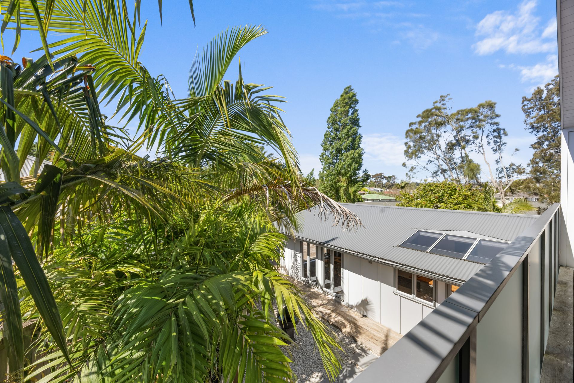 A palm lined entry leads into a bright, spacious living area that flows to a sheltered courtyard - ideal for relaxed entertaining. The light filled kitchen features a large island, double oven, double fridge space and walk in pantry, connecting effortlessly to open plan dining and living. Step outside to a sunny two level deck overlooking tropical bush, with a private spa nestled among the trees.