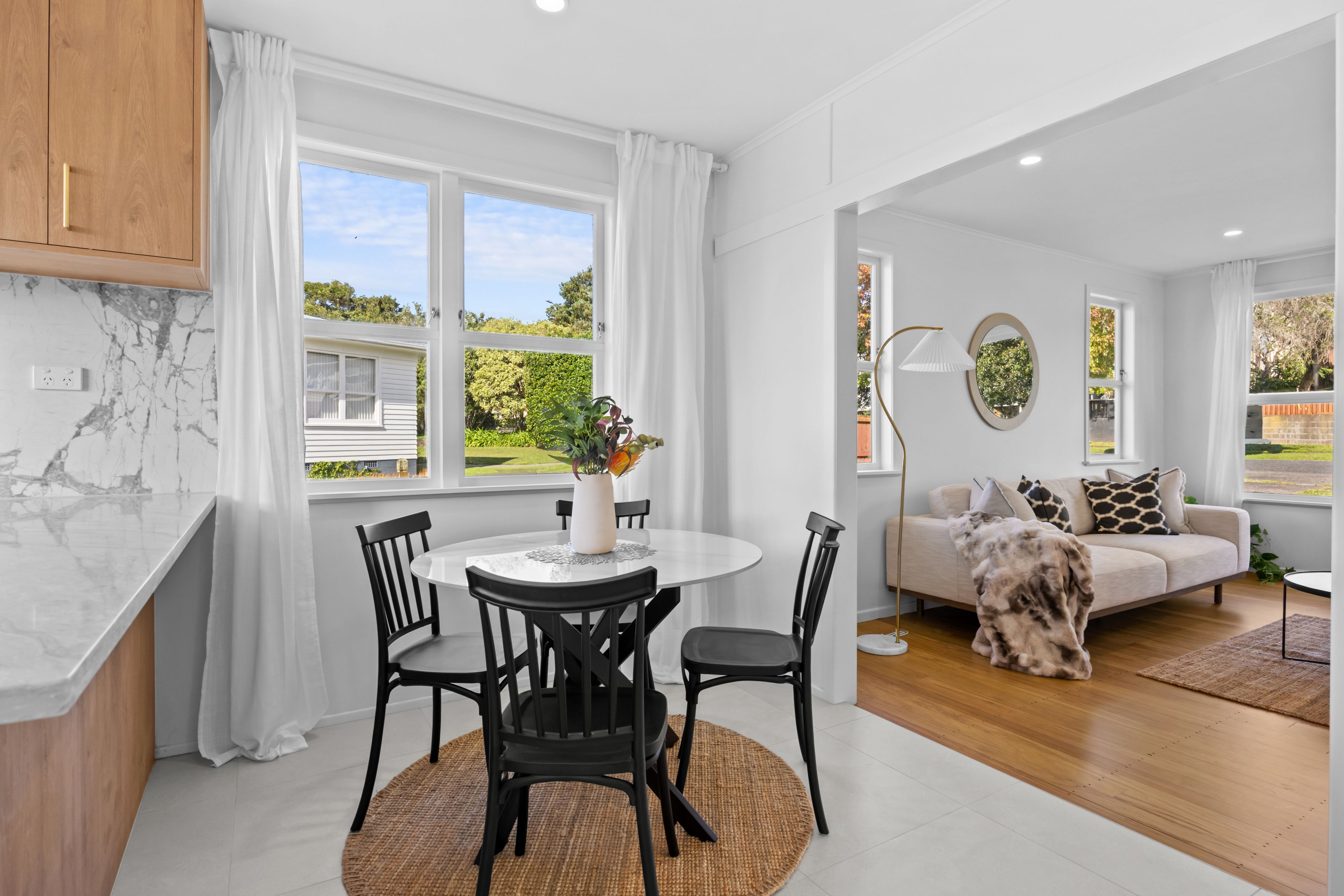 The moment you walk in, the home feels bright and easy to live in. Polished floors lead you through a layout that makes sense, with living areas that flow naturally into one another. Big windows let in plenty of light, giving the whole space an open, airy feel.