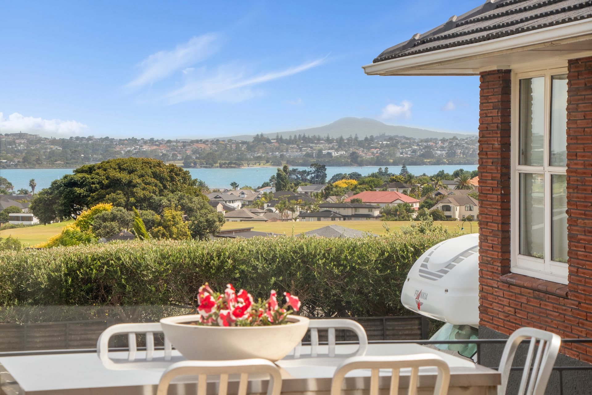 Located high on the hill with sweeping views across the water to Rangitoto, this solid brick home updated with double glazed windows sits on 804sqm in zone for Terrace Housing Apartment.