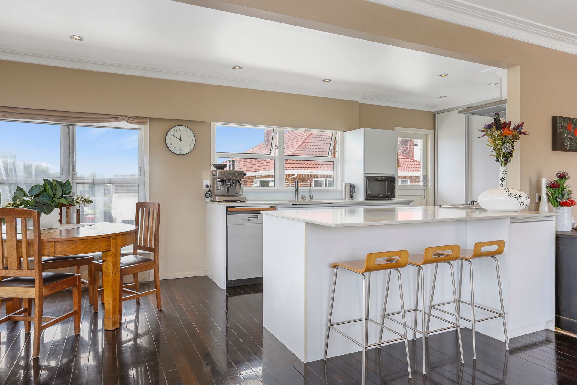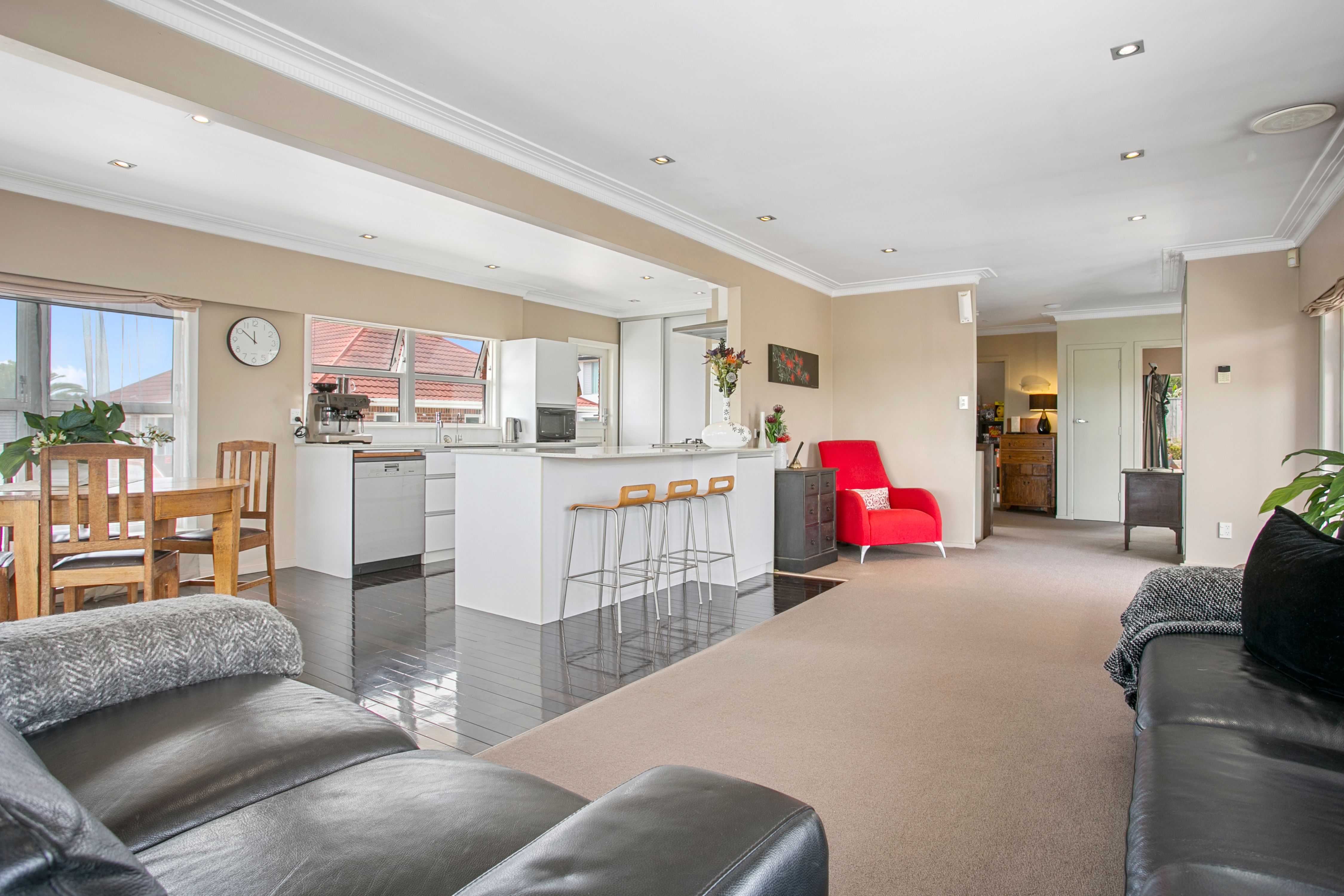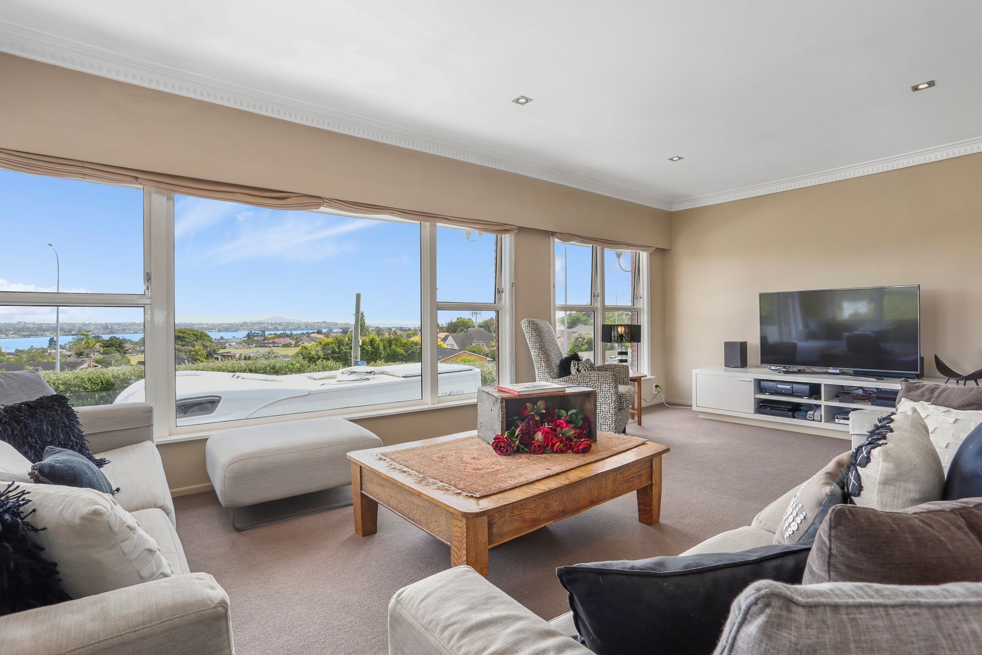 This 1960s four bedroom, one bathroom, brick and tile home comes with really generous garaging, storage and huge off street parking. Superb views from the open plan family living areas.