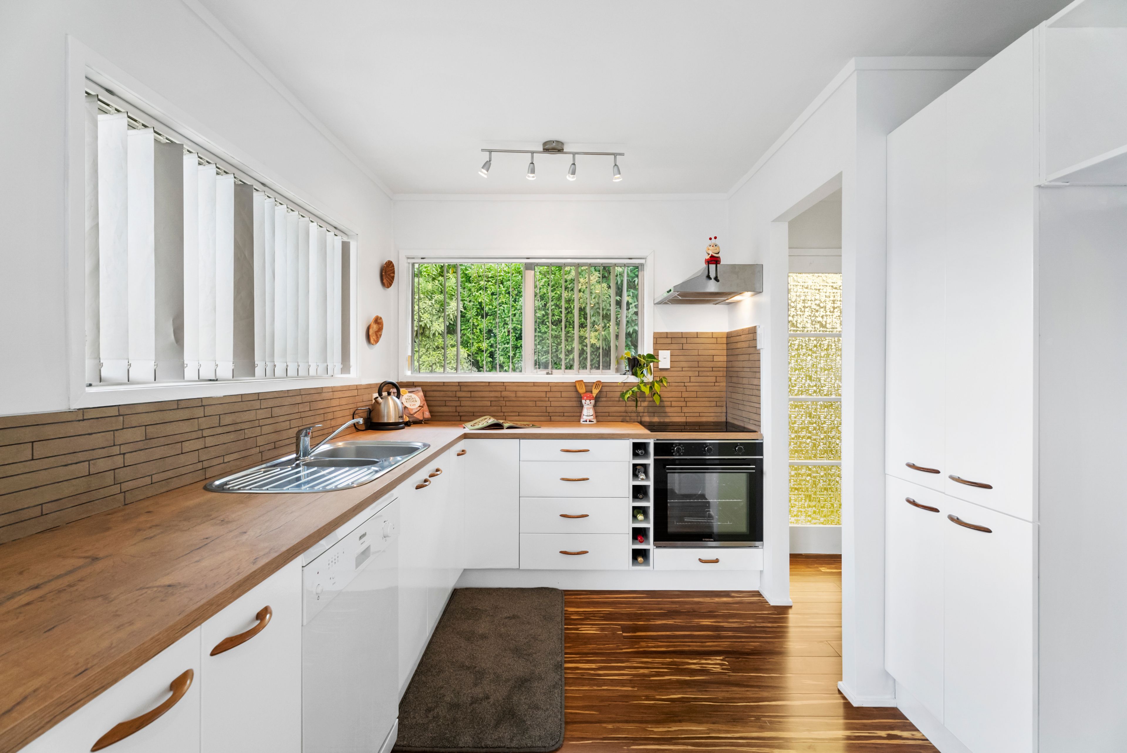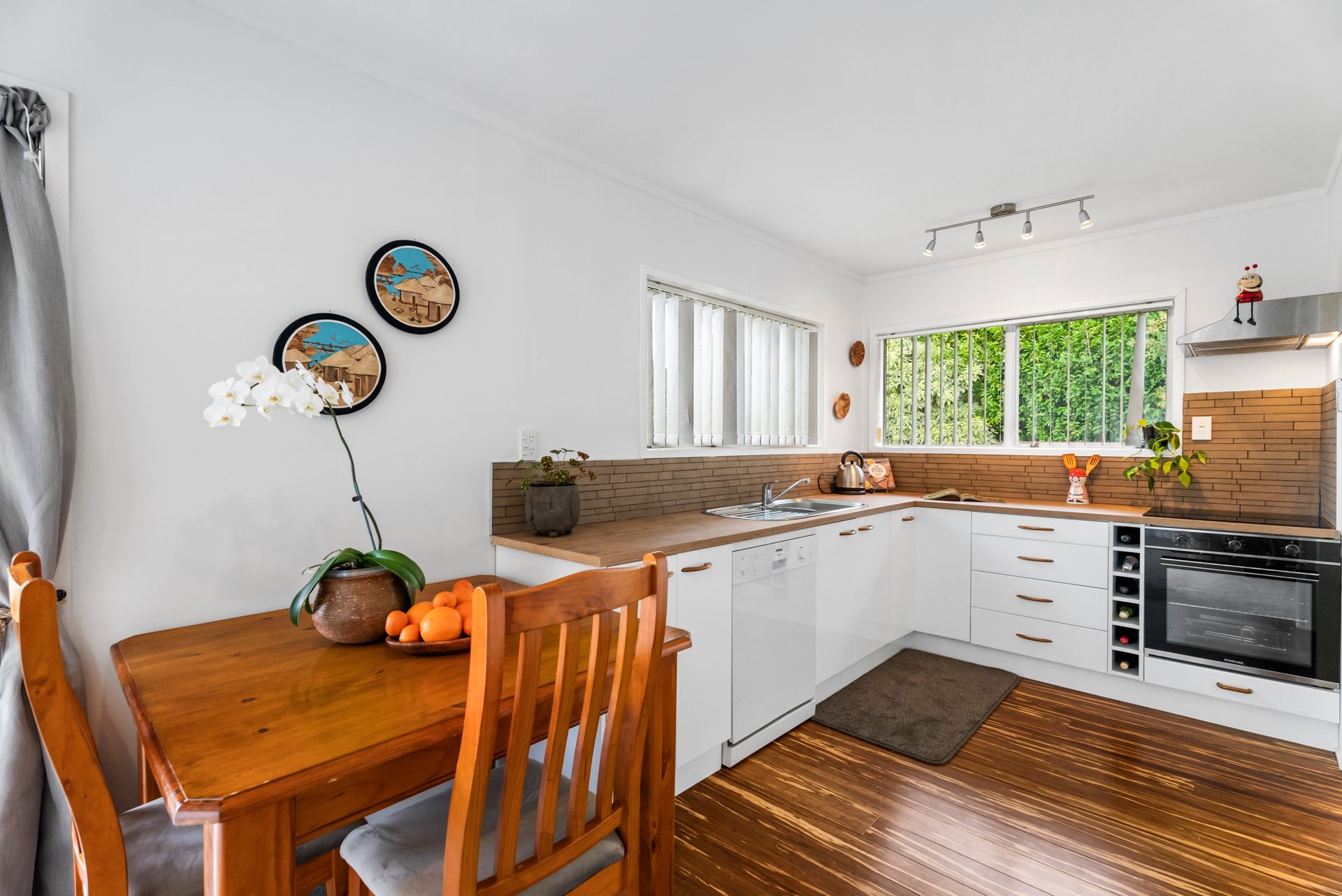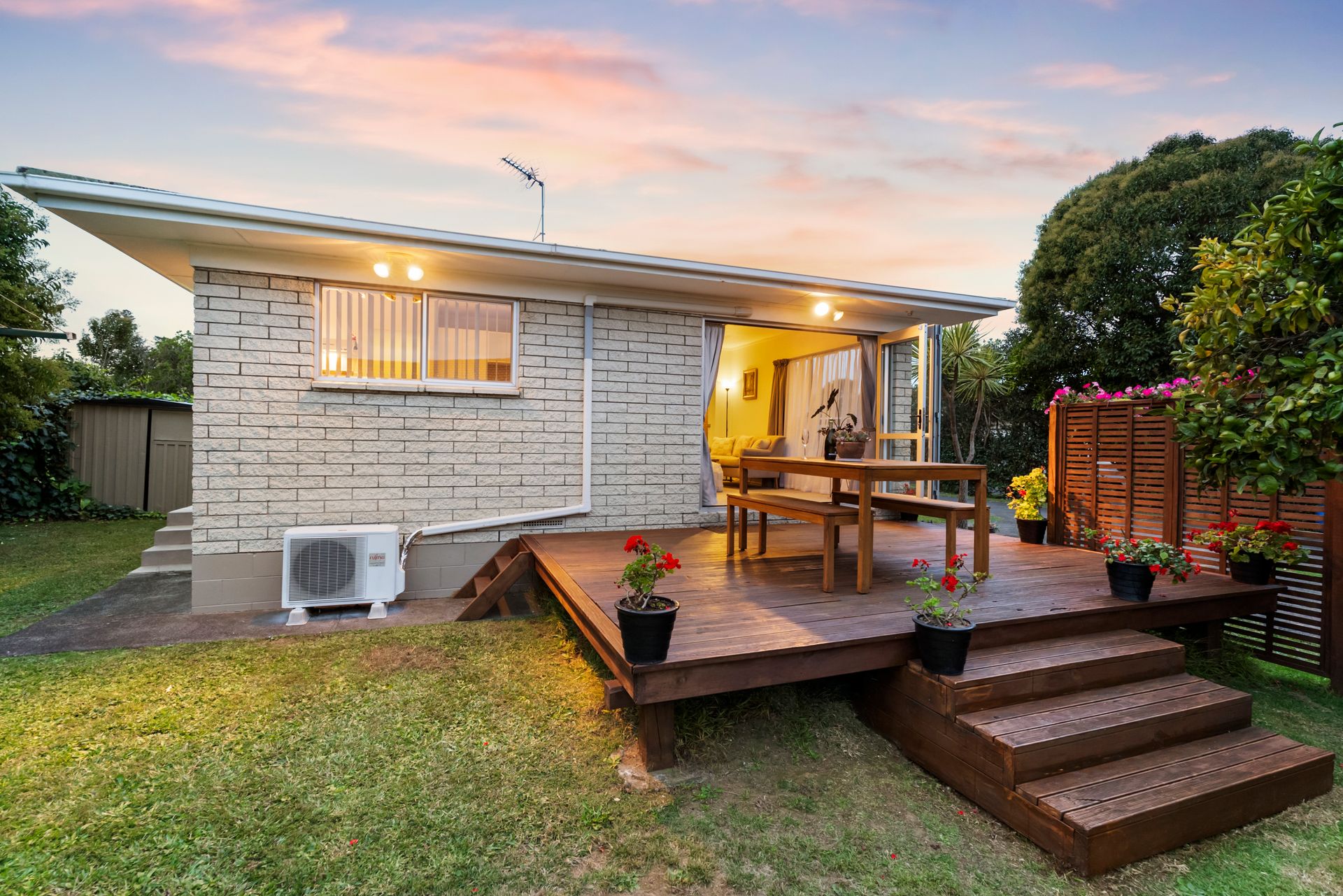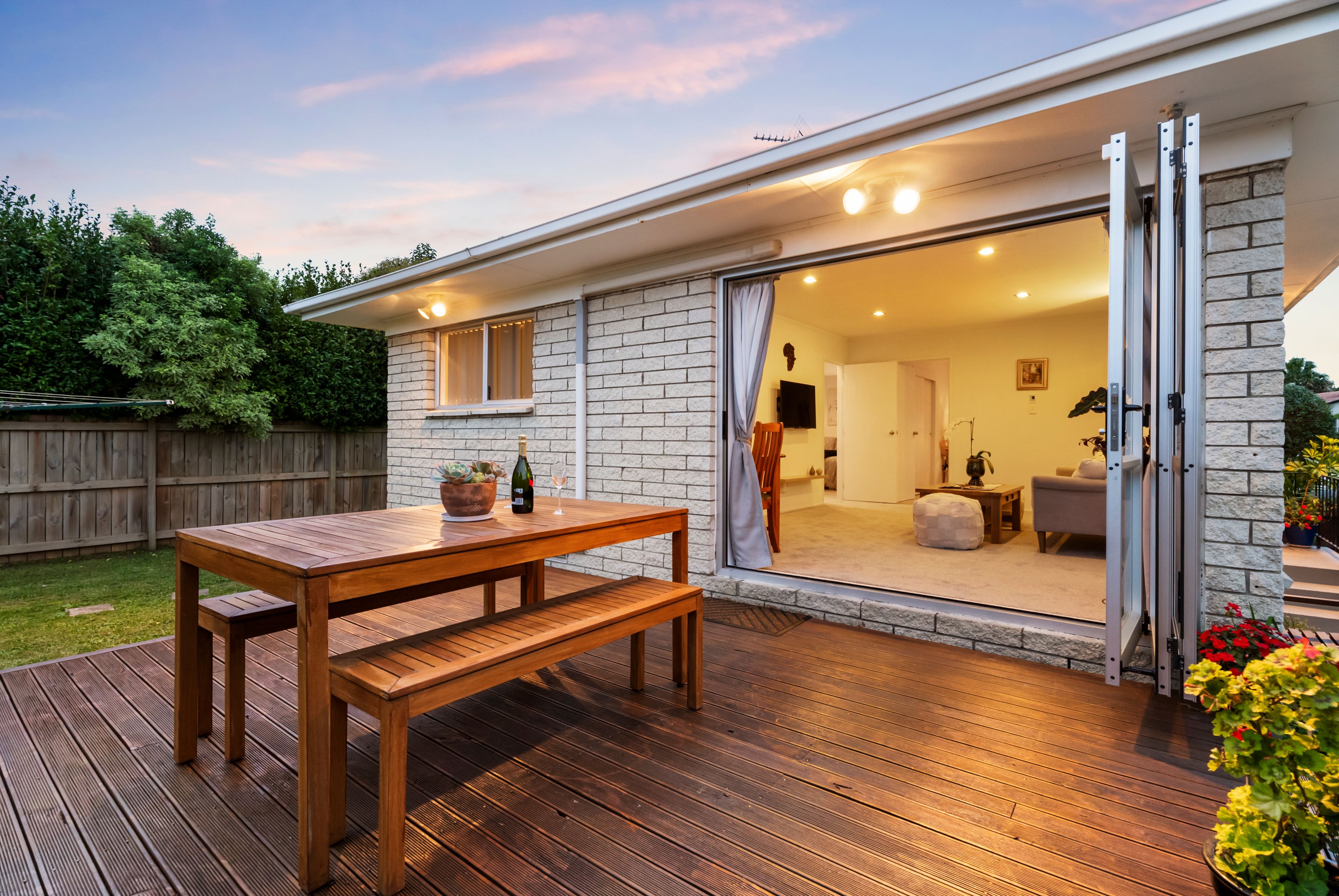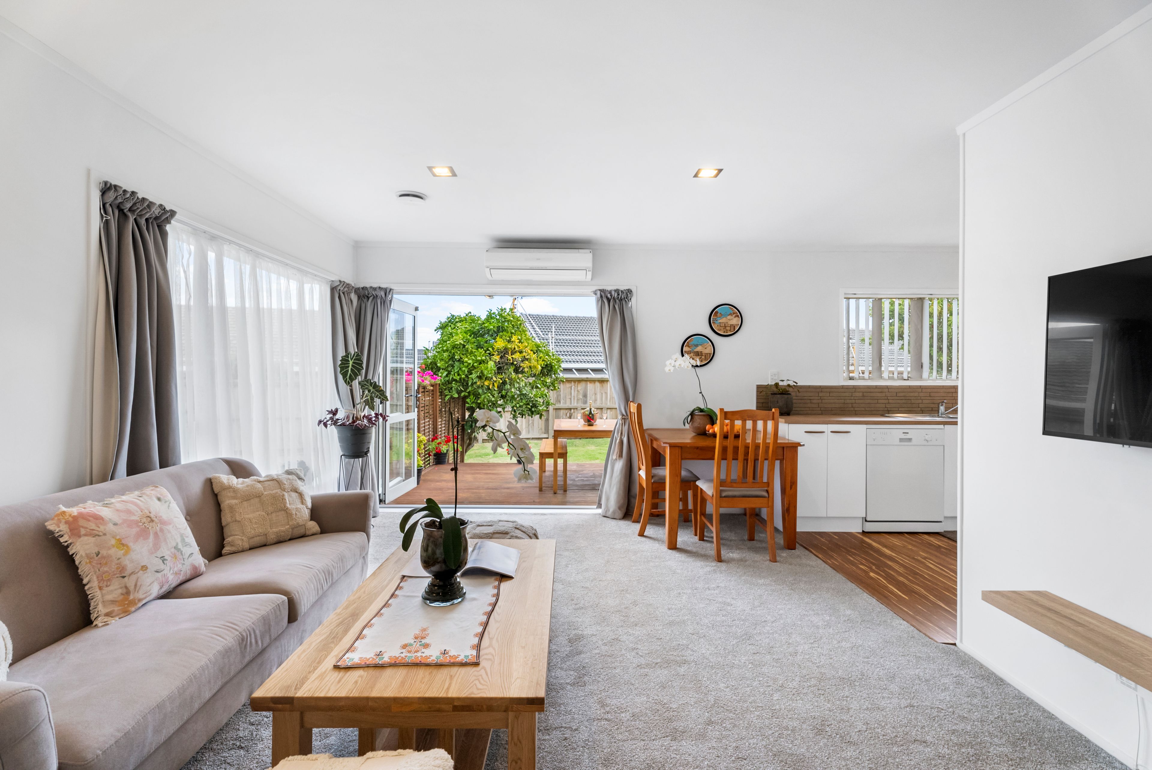 An efficient layout with tastefully updated interior décor works hand in glove creating a harmonious ambiance with stackable bifolds leading to a sunny secluded deck for coveted indoor/outdoor flow. The entire home has been recently recarpeted while crisp white walls and ample glazing graced by liberal drapery instil a contemporary vibe throughout. The updated white and woodgrain kitchen is conveniently adjacent to the deck for swift transport of the tasty treats for summer barbecue parties while a neighbouring laundry is also generously proportioned. Two bedrooms have built in closets and the wall mounted heat pump in the living area along with an HRV system assures comfortable climate control all year round. The contemporary bathroom boasts chic white tile walls complementing trendy vessel basin, corner shower and toilet. A carport and off street parking at the end of the driveway caters well for multi vehicle households while kids and pets can scoot about on a well-established section of fenced flat lawns integrating a toolshed.