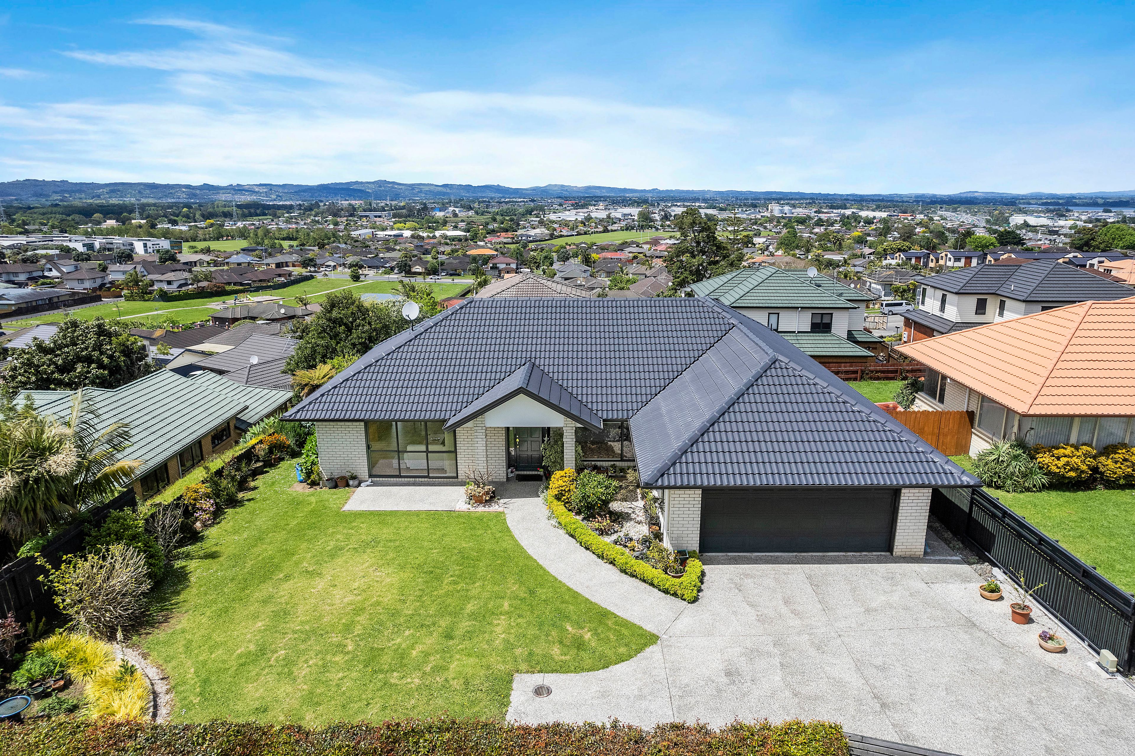 Wake up to incredible views of Red Hill and across to Ardmore's rolling rural land. There's always a great vista at this exceptional three-bedroom home, nestled at the end of a tranquil cul-de-sac close to the Auckland Botanic Gardens.
