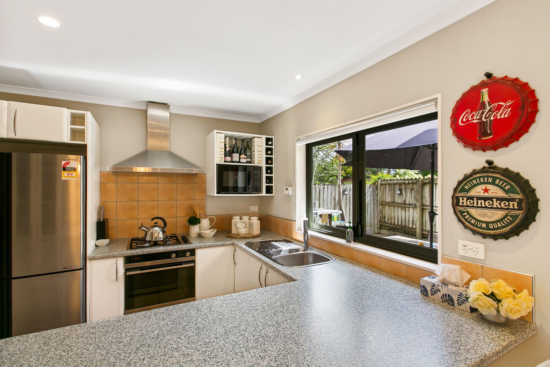 Outside, the sheltered courtyard is complemented by low maintenance gardens, completed in 2005 by Jalcon homes, the durable brick & insulclad (with cavity system) construction adds peace of mind. Double, internal access garaging with room to park 6 or more vehicles completes the appeal.