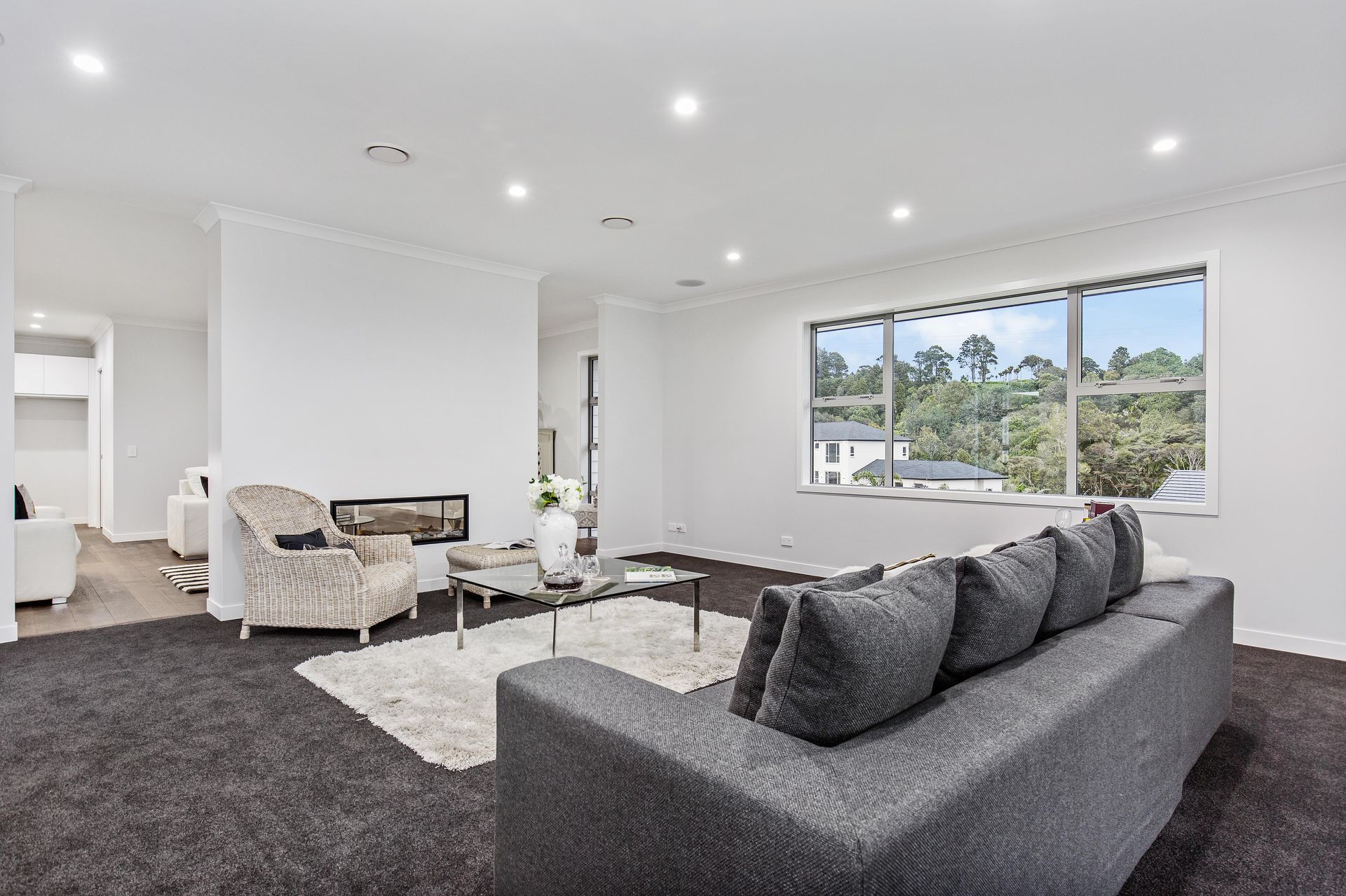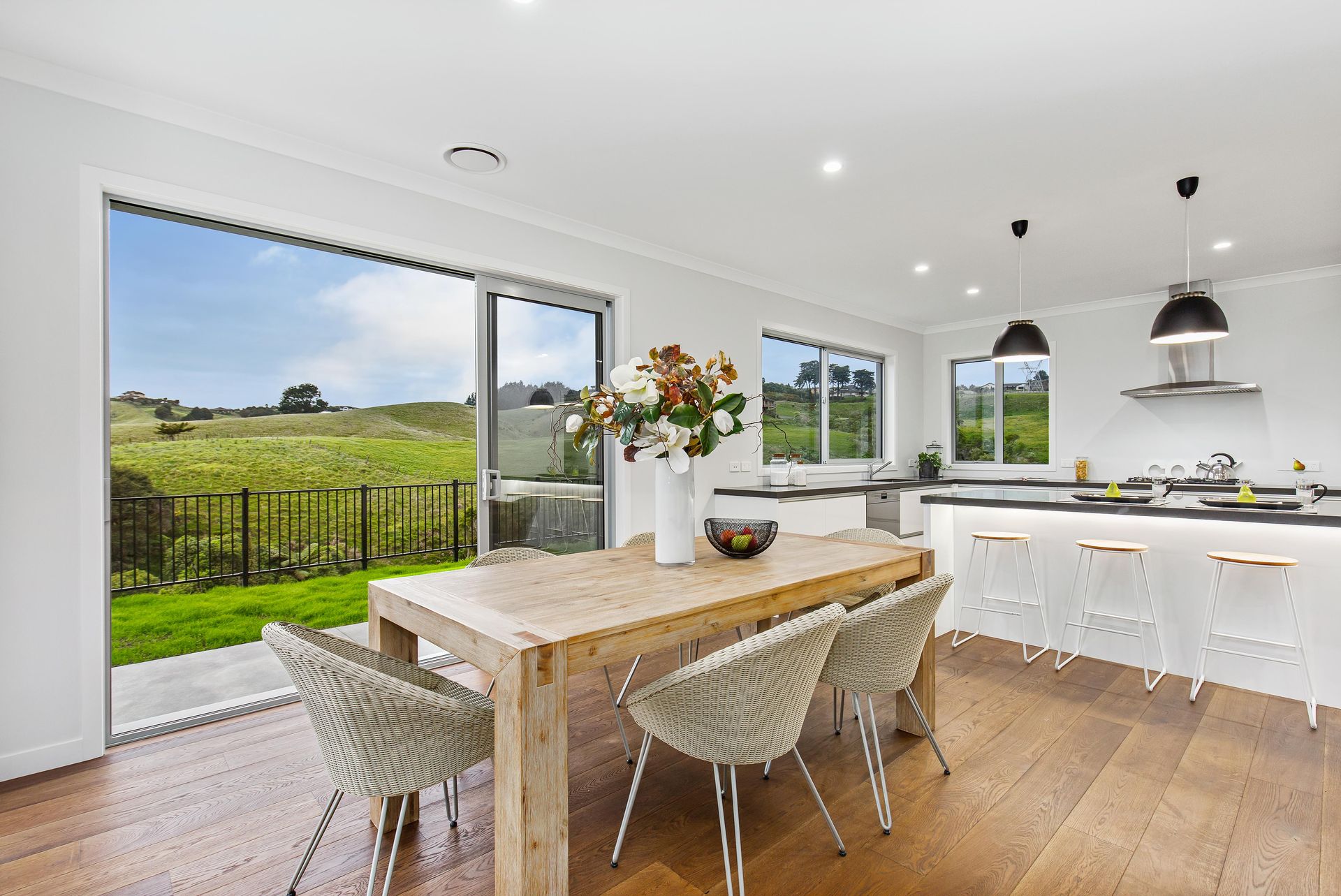 Set back from the road down a private lane, you will be forgiven for forgetting you are moments away from suburbia. This brand-new home has been built to the highest standard, and architecturally designed to capture the stunning views over the native bush and rolling hills surrounding its tranquil location.