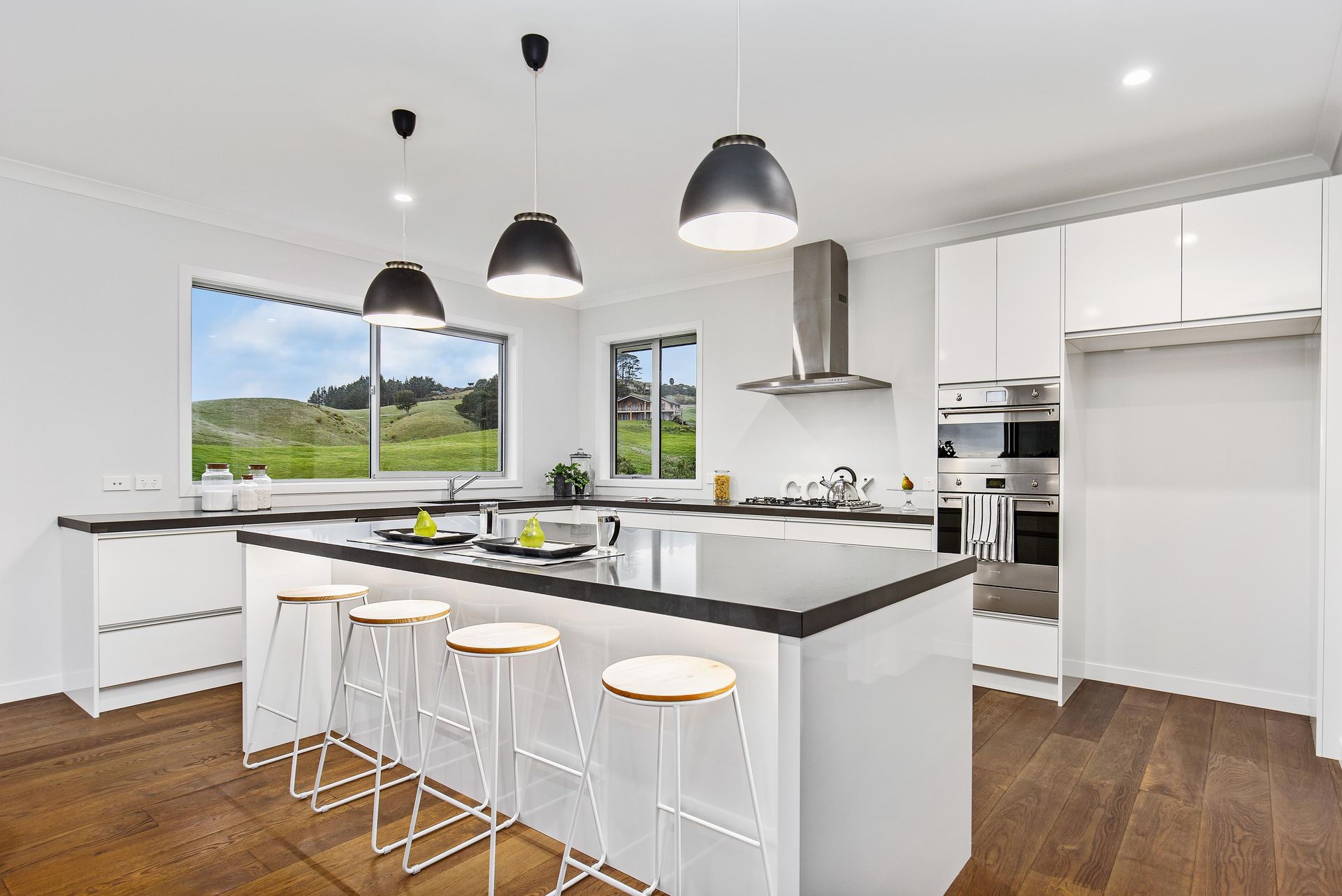 Constructed by master craftsmen, from cedar, linear weatherboard and schist, only the finest materials have been used externally, with simply the best of the best internally too. Canadian oak flooring from the entrance way to the open plan living, kitchen and dining sets the tone and ignites the rural feel. The family room is perfectly separated from the formal lounge/theatre room by a feature wall with in built double sided gas fireplace. The hub of the house doesn't disappoint, a huge kitchen with quality appliances and double oven is complimented by a butler's pantry, fit for a MasterChef.
