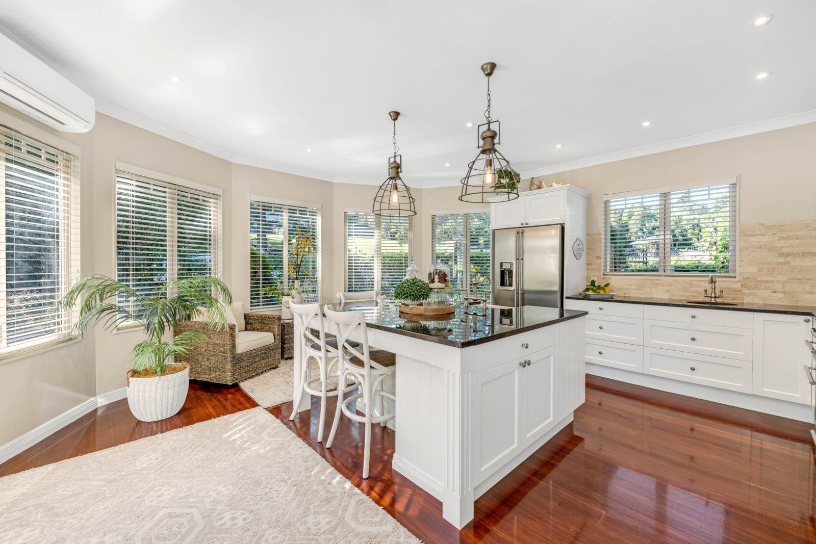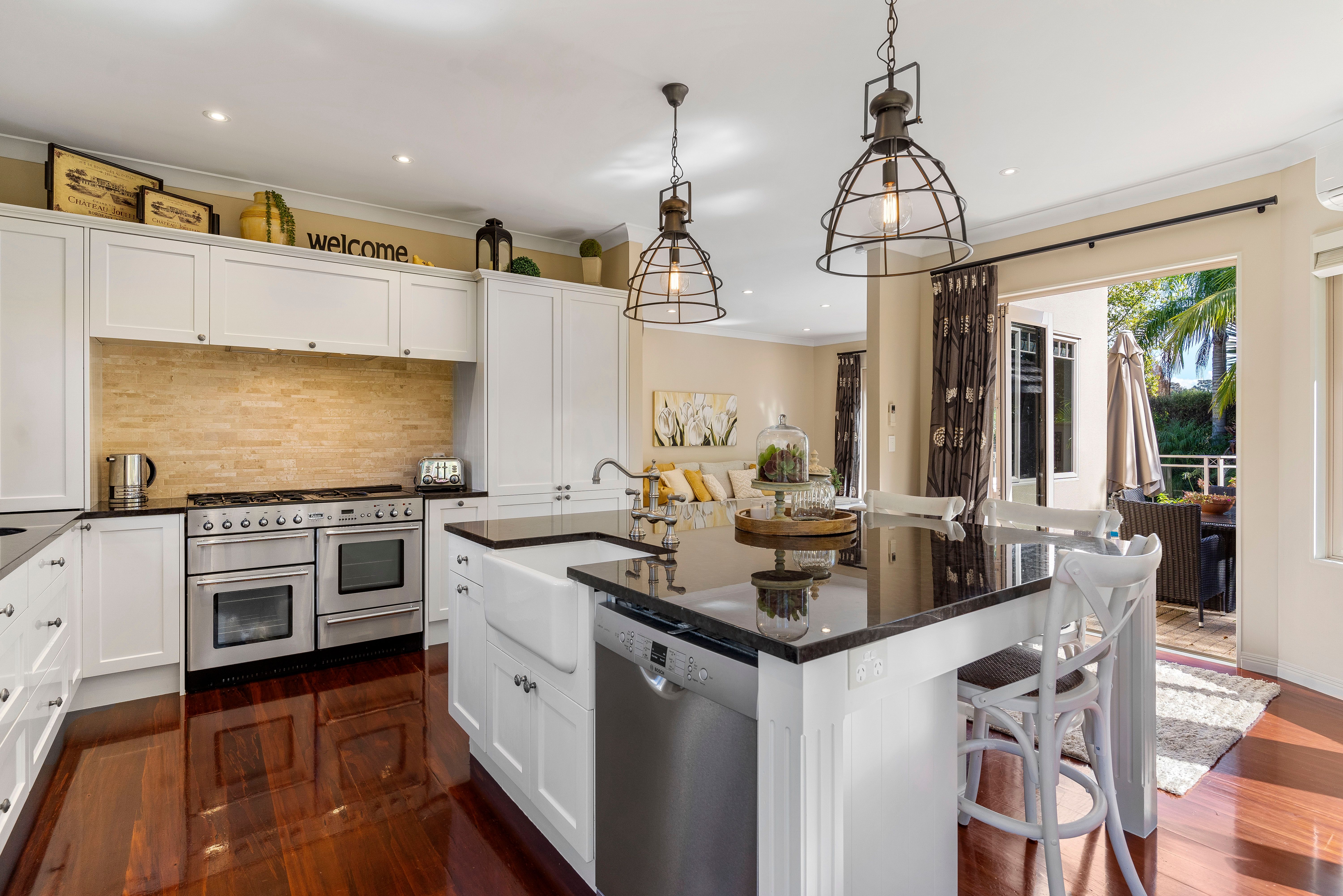 The heart of the home is formed around the chefs kitchen, equipped with two sinks, a huge double oven country style stove and an island that serving double duty as a breakfast bar. Complimented by a separate lounge with indoor outdoor flow through out, it's an entertainer's dream.