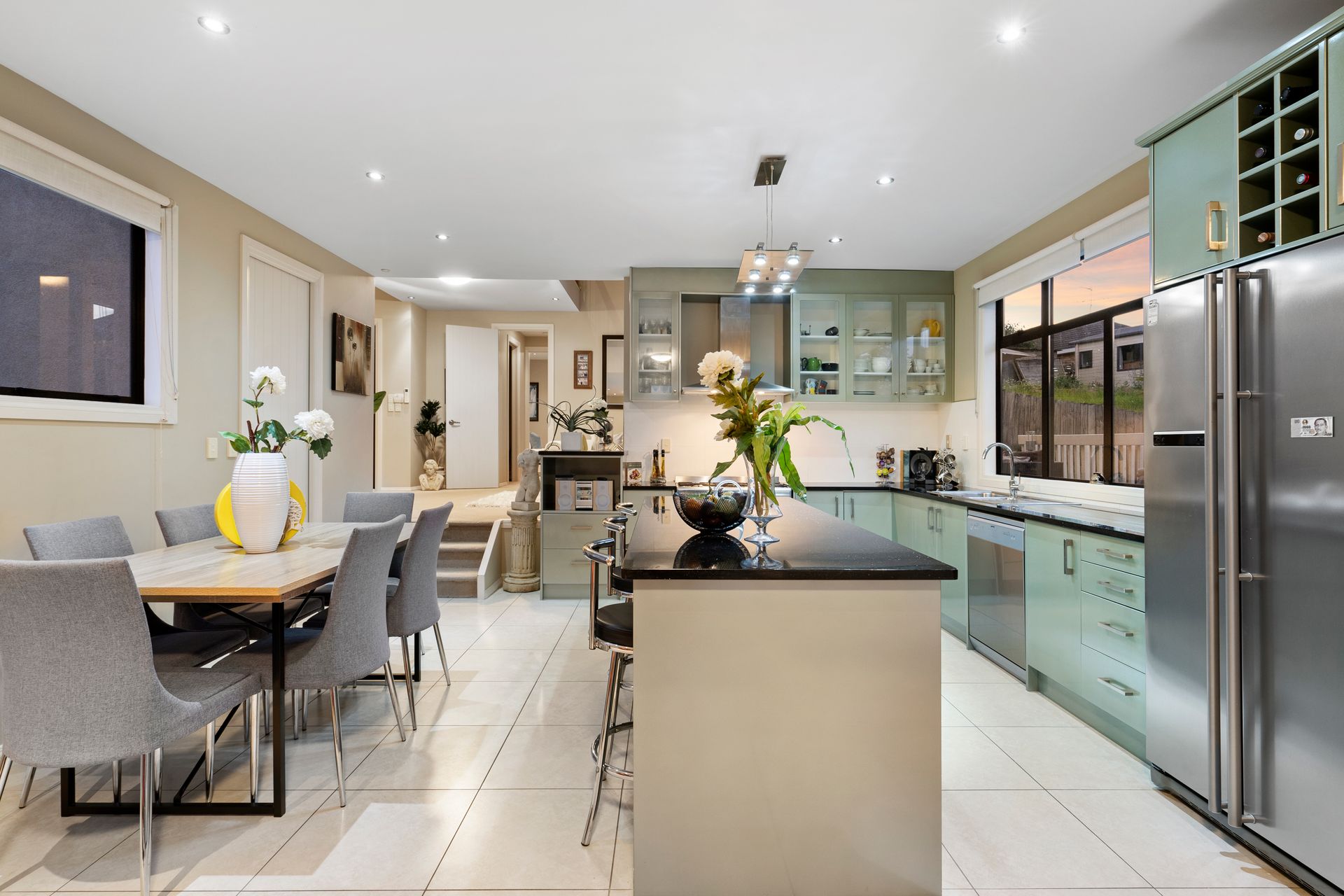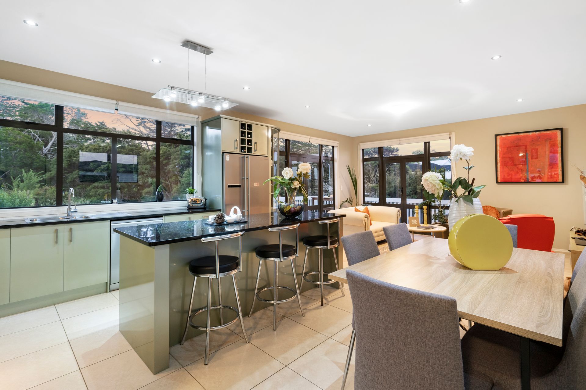 Open plan living, dining and kitchen with high ceilings and floor to ceiling windows, accentuating the ample spaces available, all surrounded by wraparound decking providing elevated views over the substantial 1368m2 approx section and luscious bush setting.