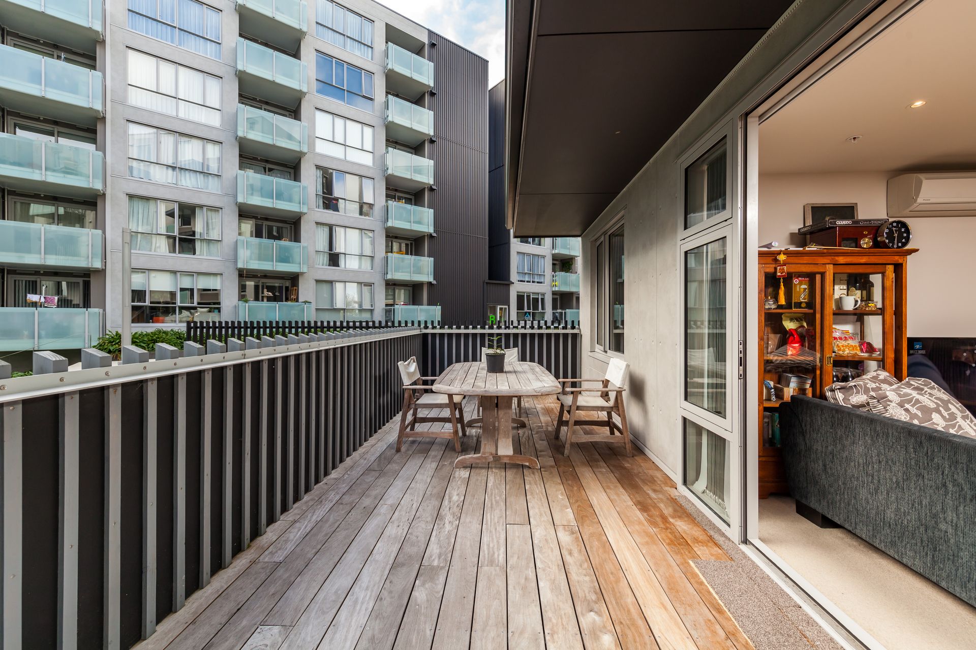 Designed by award winning architects, there are four spacious bedrooms (including master with ensuite) and three bathrooms. The generous 118m2 floor plan combines interior open plan living with a large balcony for relaxing or entertaining (plus a balcony 24.3m2). On the ground floor you'll find the living spaces, plus one bedroom and bathroom, while upstairs are the remaining bedrooms and bathroom. All fixtures and fittings are high-spec with an enduring contemporary design throughout the apartment. This apartment also comes with two carparks.