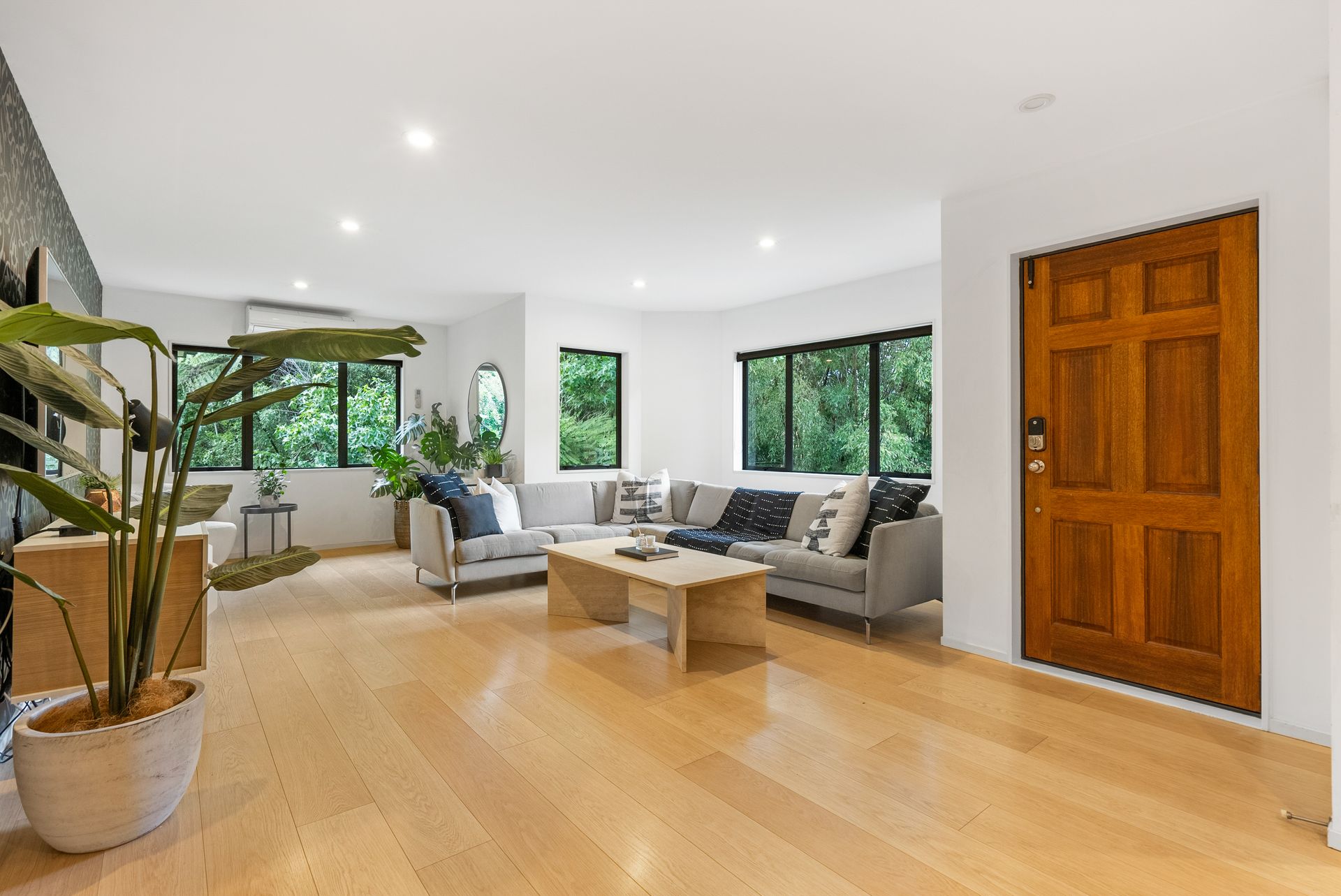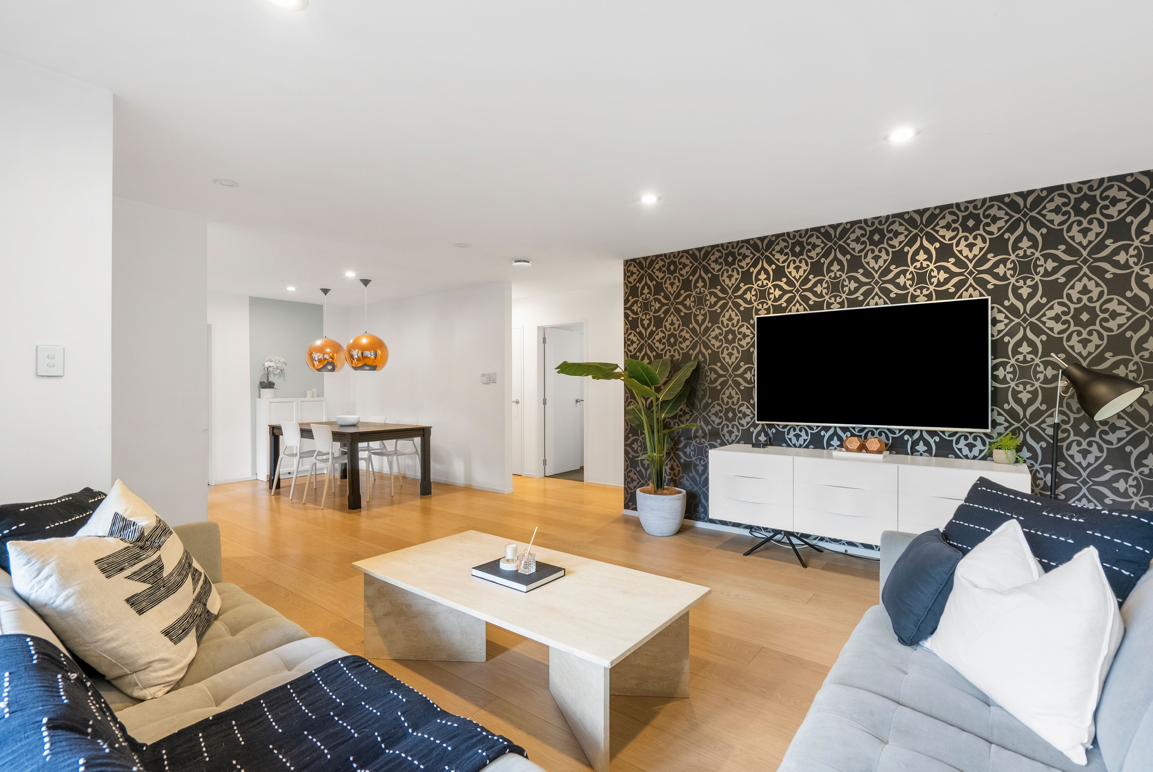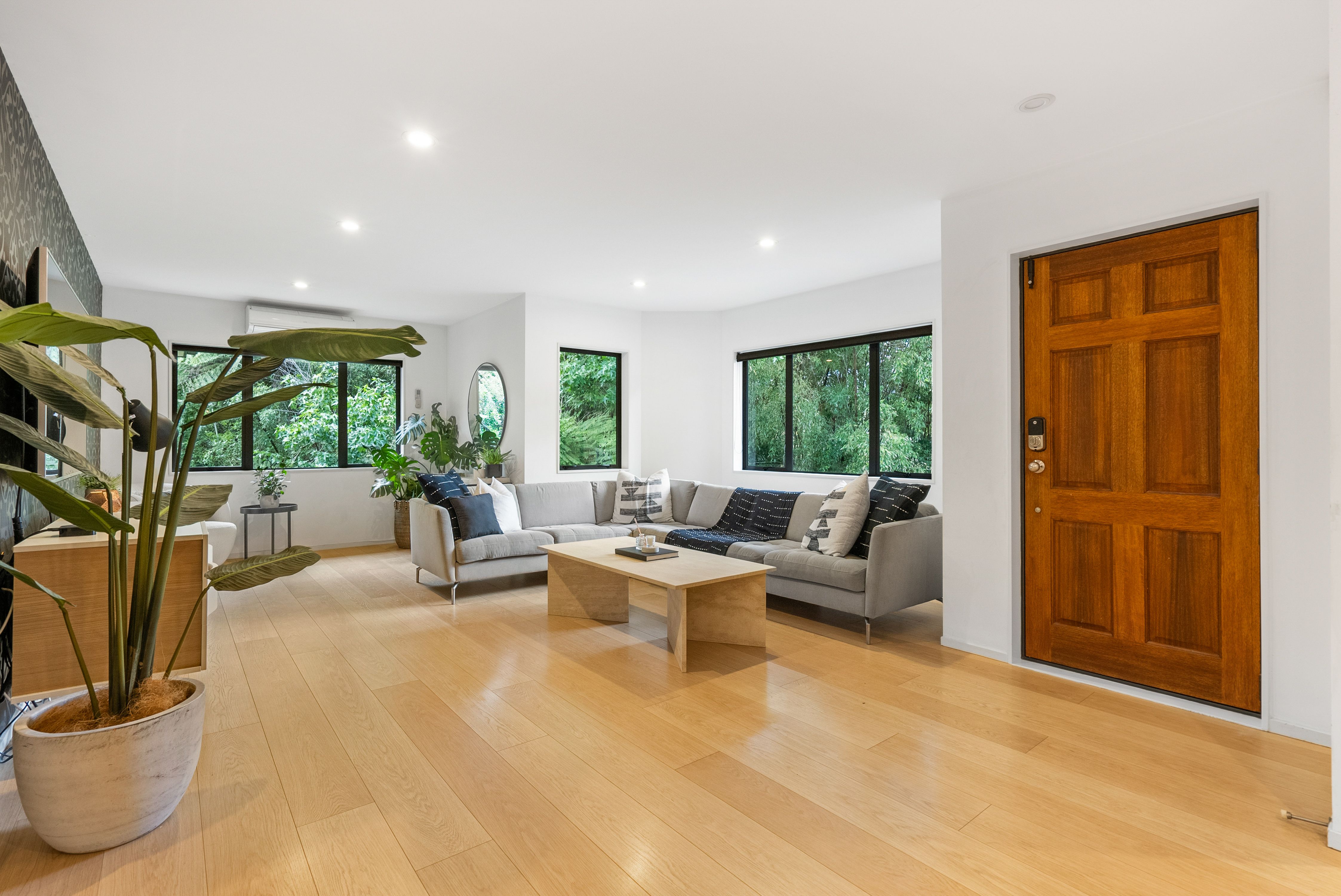 At the end of a cul de sac and backing on to NZ native bush, a private and quiet home awaits. Spread across a single level you are welcomed into this stylish home with a bright and airy open plan living room with hardwood floors. A gorgeous dining area with feature pendant lighting to really set the mood, and the kitchen… it's a dream, with stainless steel appliances, lots of bench space and plenty of storage, perfect for whipping up delicious meals and entertaining guests. Everywhere you look you're surrounded by the tranquillity of nature, creating a very calm and inviting atmosphere to enjoy.
