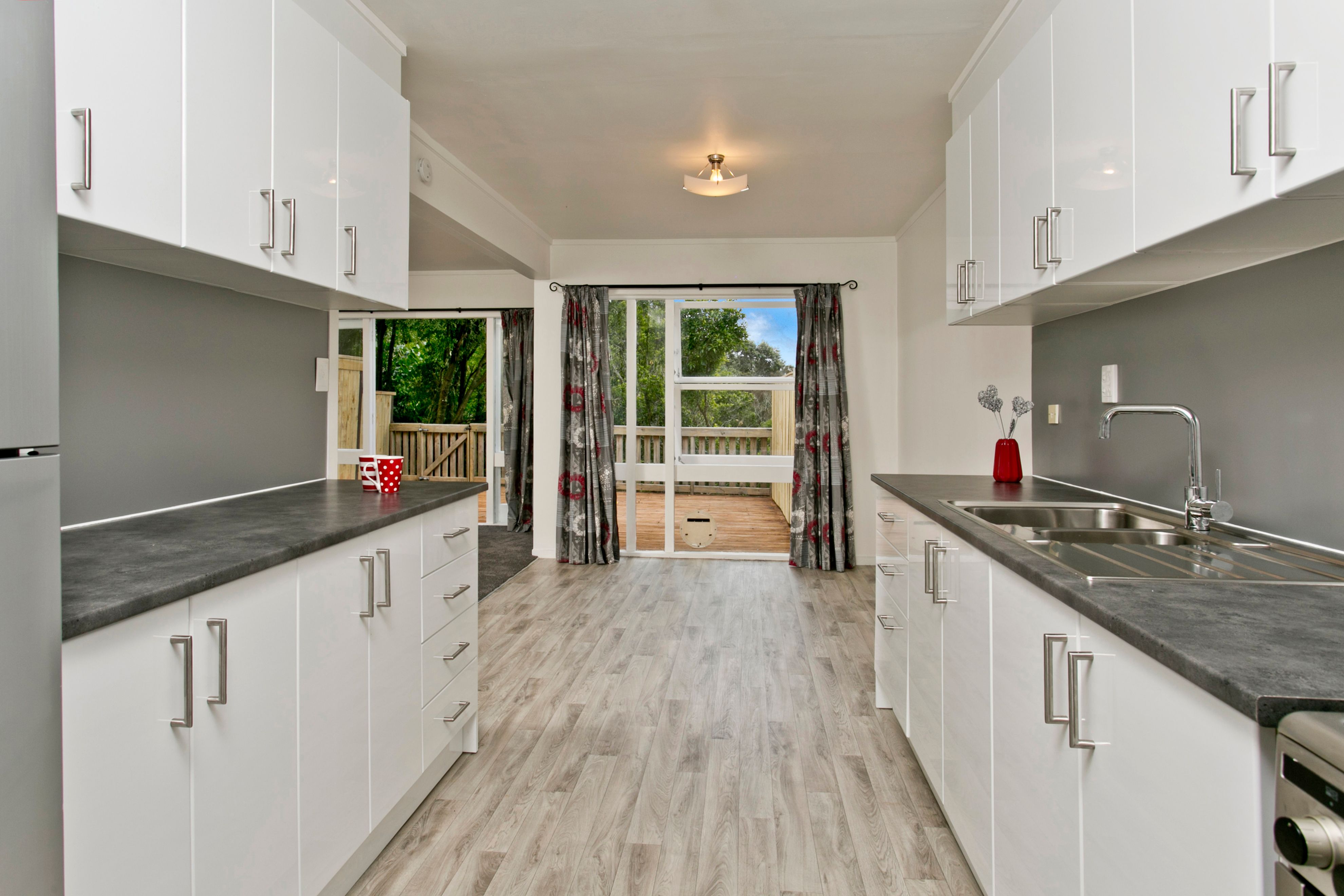 The deck captures the afternoon sun, a great place for BBQs with a wine, and is fully enclosed for the little ones to play safely. This property also has a carport and storage shed, built to last with block and concrete tile roof. A great secure location and no Body Corporate fees. Easy distance to the local zoned Kauri Park School, bus stops and shops.
