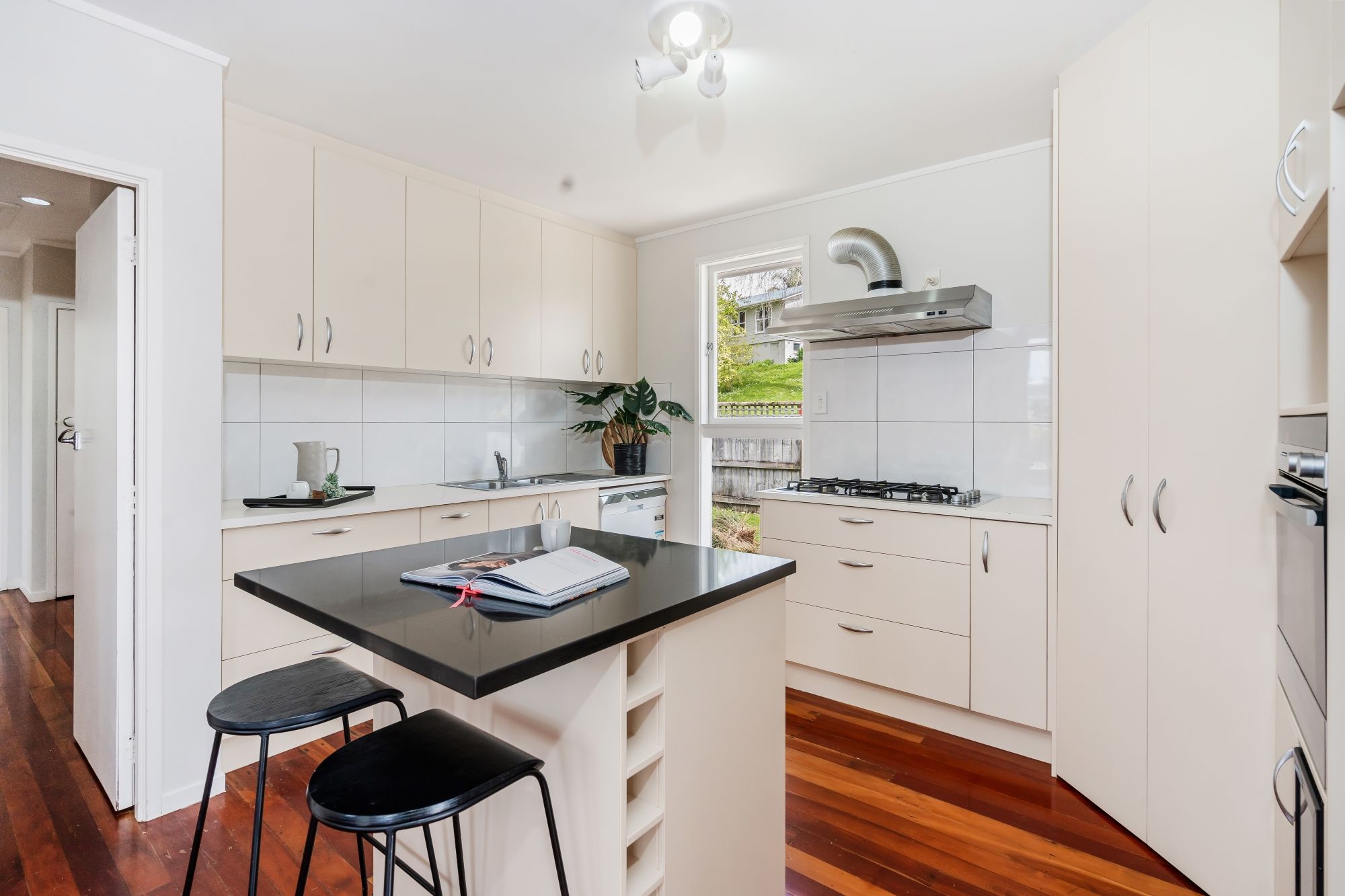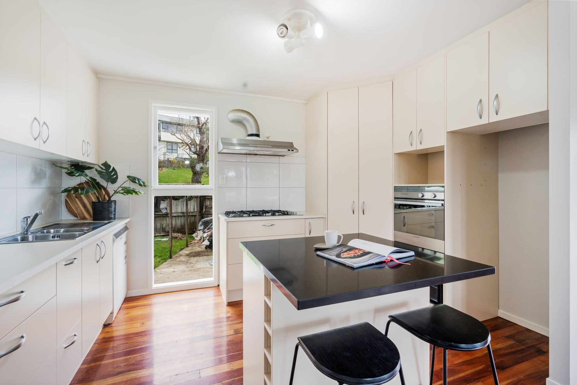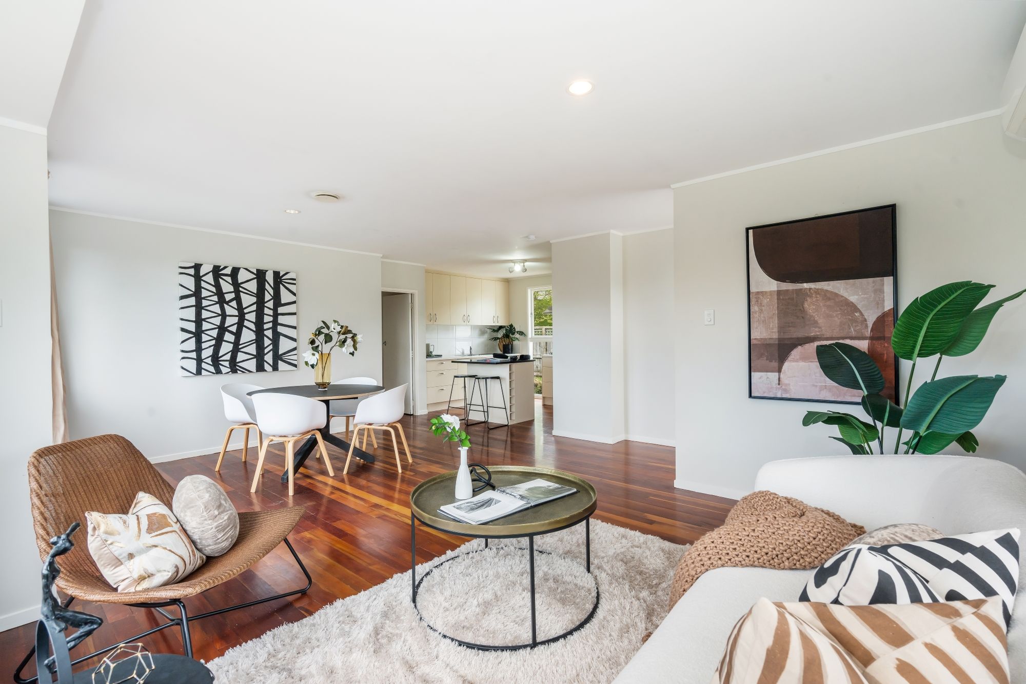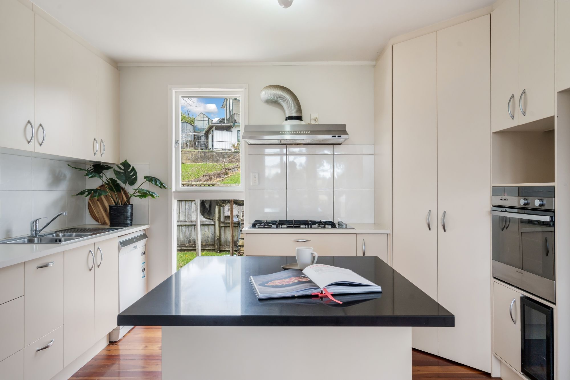 Inside, you'll discover timeless Matai wooden floors that exude elegance and warmth, creating an inviting atmosphere throughout. The heart of the home is a bright, open-plan living space connecting the kitchen, dining, and living areas.