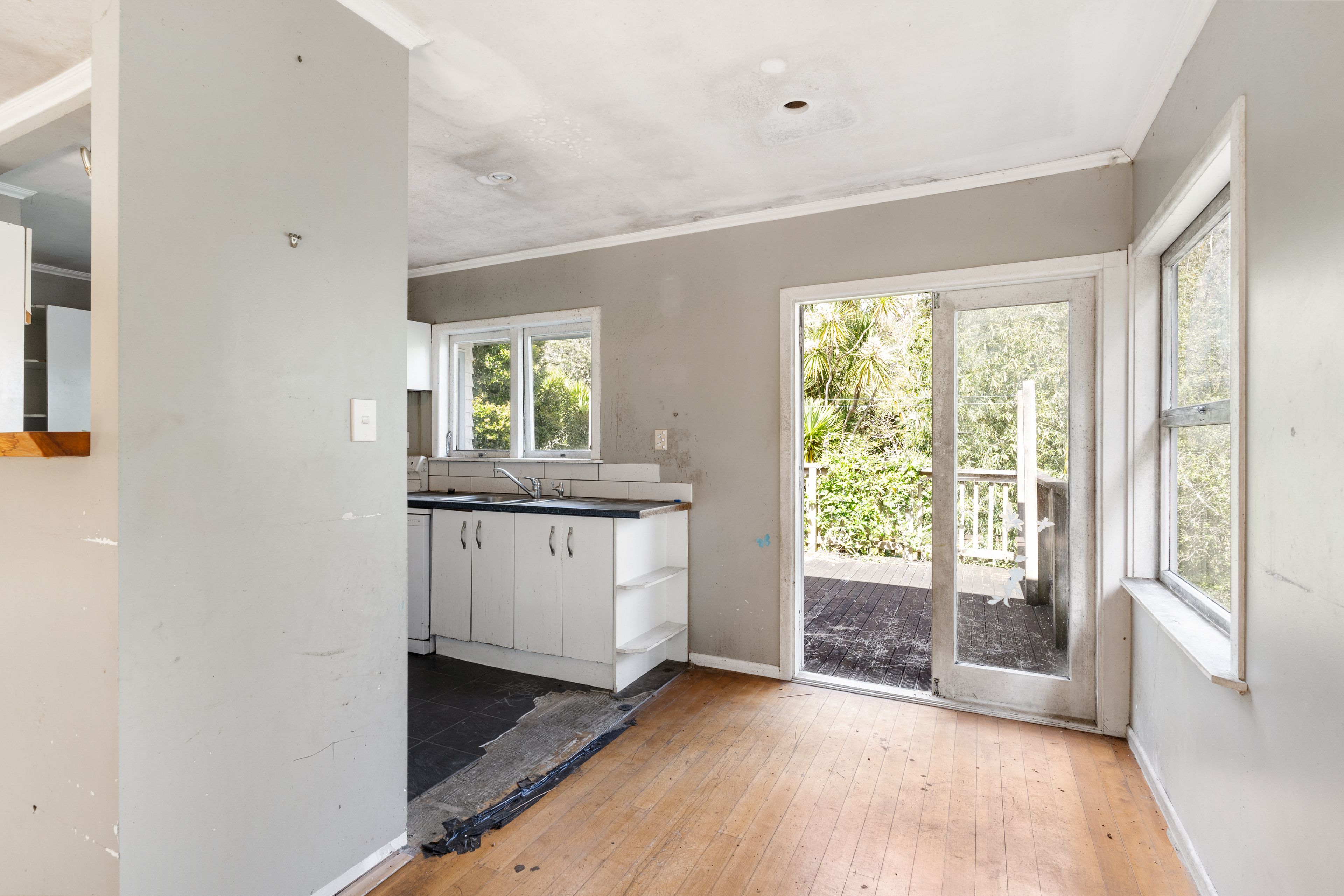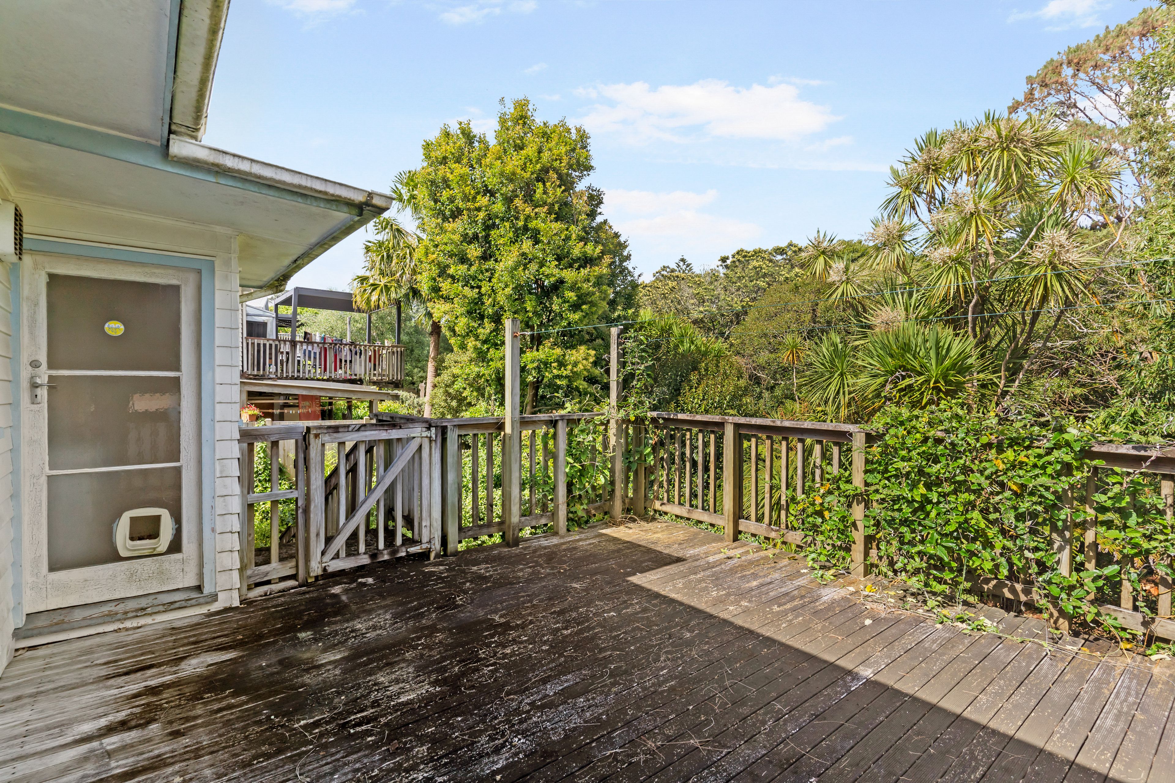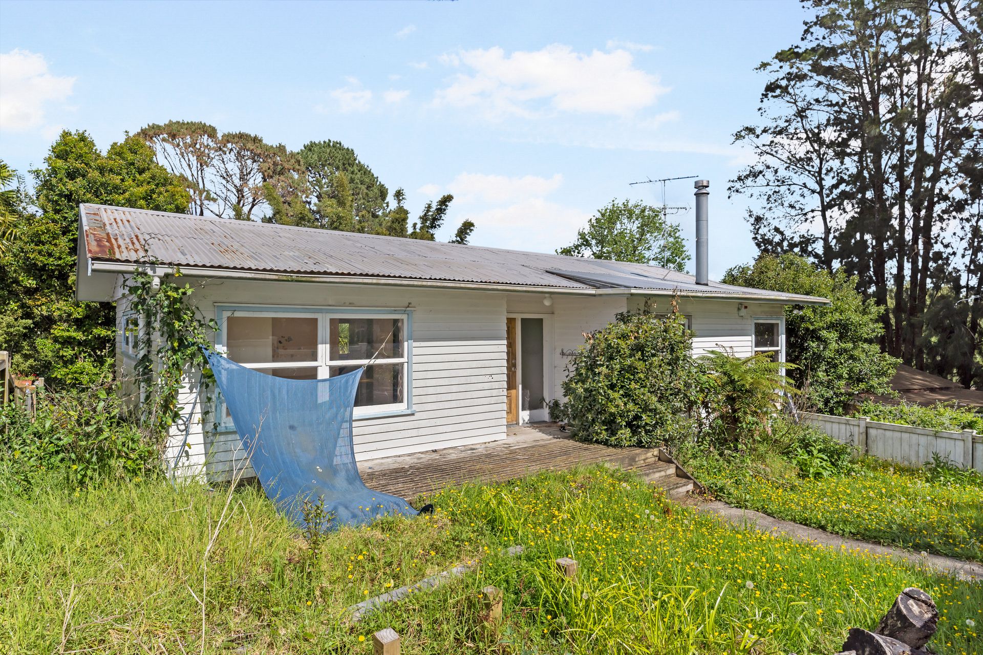 Tucked away near the end of Paramu Ave, a quiet cul-de-sac, sits this two bedroom home. It has genuinely seen better days, but with a leafy setting and large decking from which to enjoy the outdoors, it just begs for its time in the spotlight.