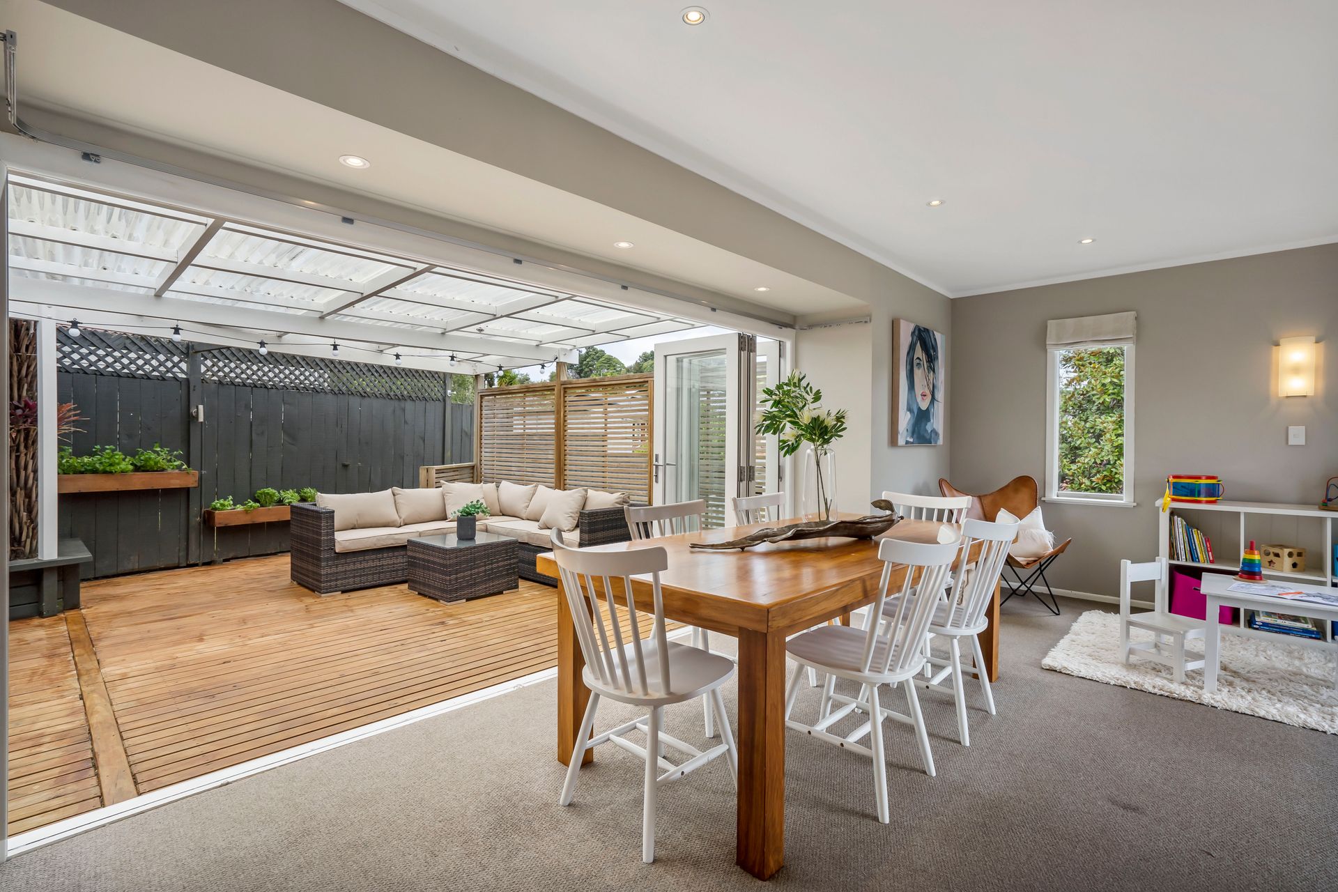 * Huge partially-separated living area, creating a flexible second lounge/study/playroom.