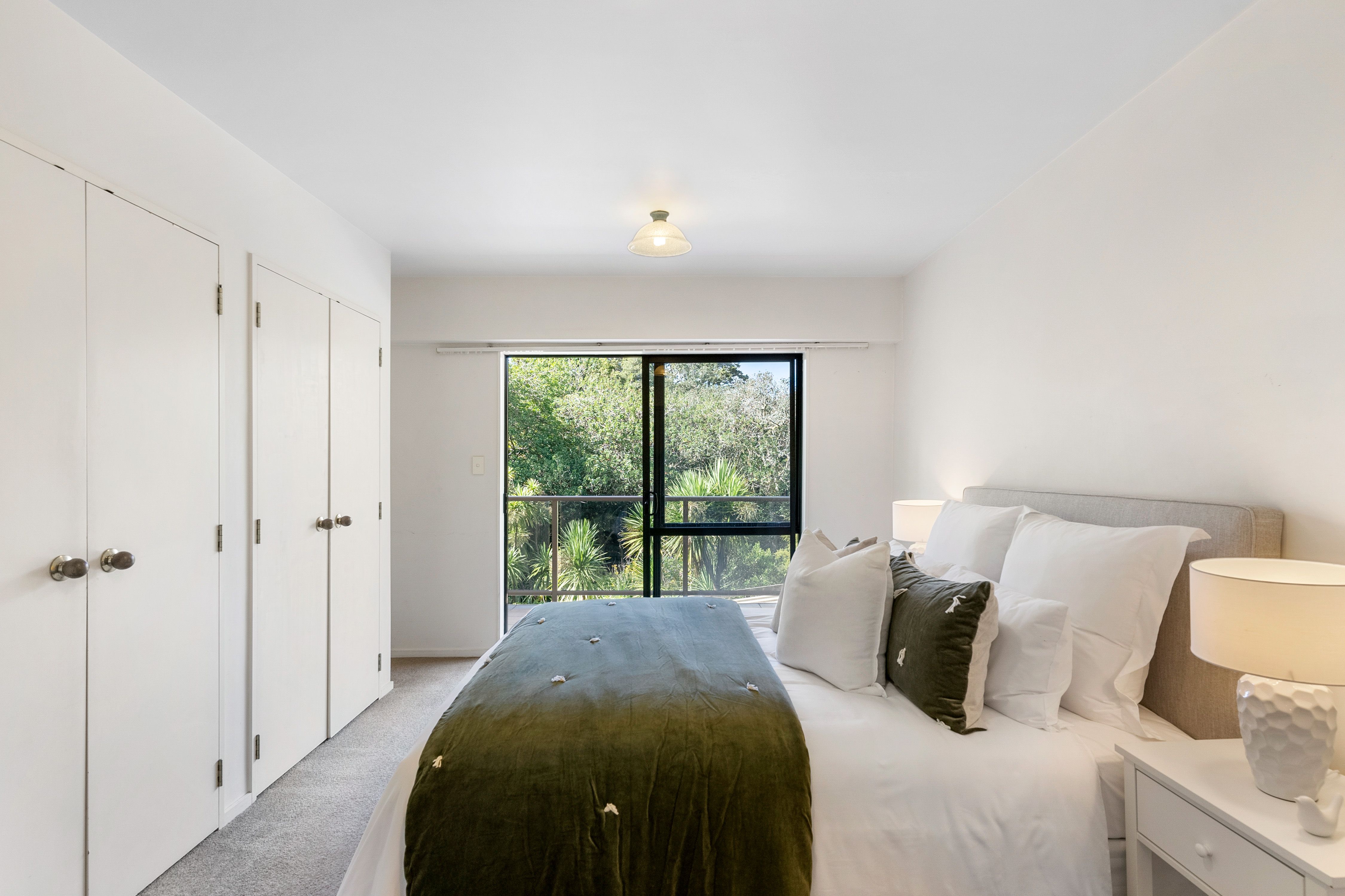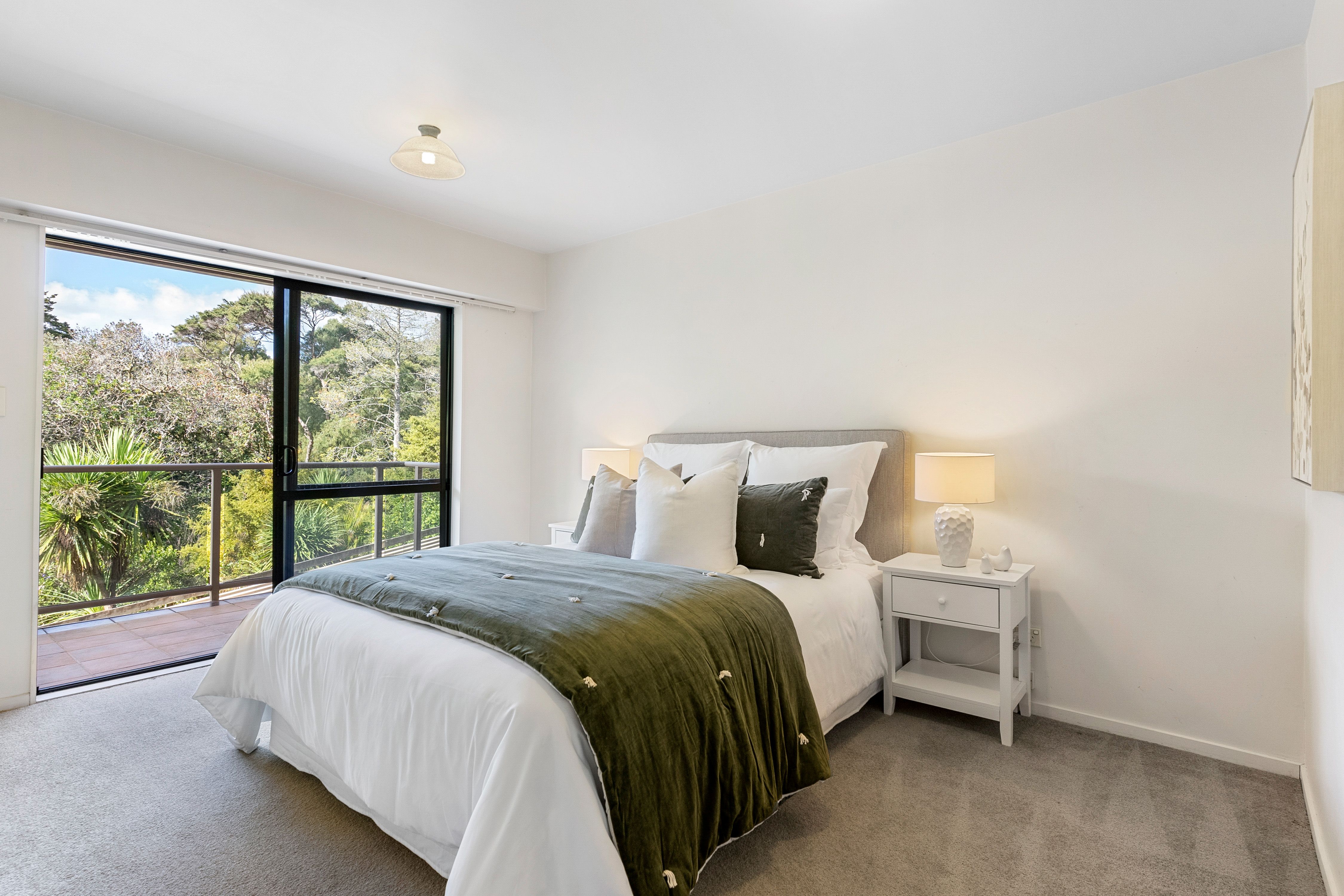 The master bedroom flows directly out onto the full-width front balcony, privately screened from neighbours, exploiting the stunning outlook and setting. What a scene to wake up to.