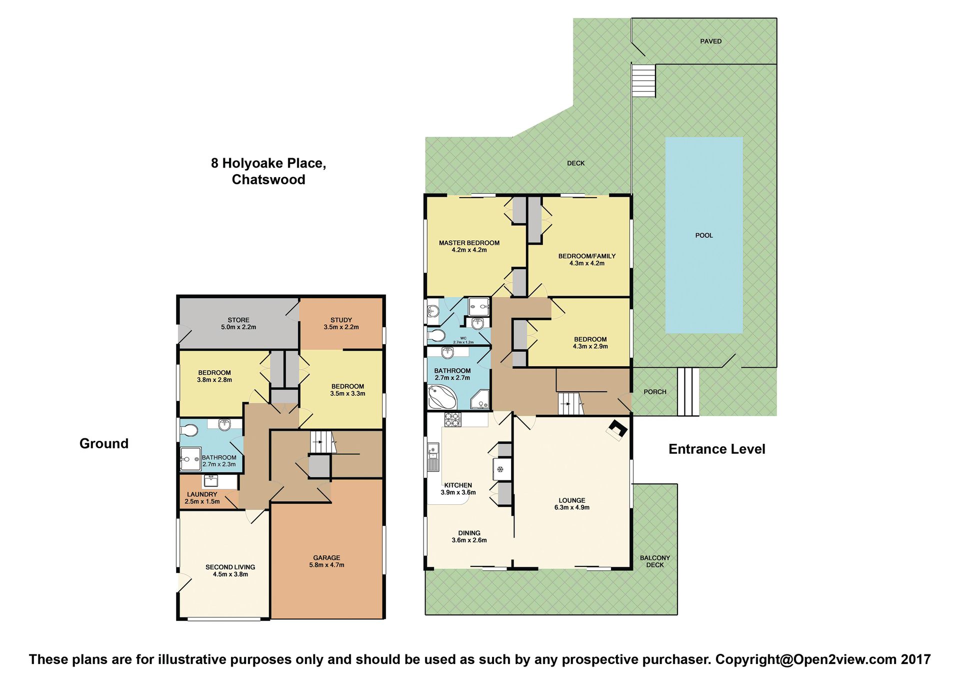 It has 5 double bedrooms, 3 bathrooms, 2 living spaces with abundant storage and an excellent outdoor dining / living area which overlooks the pool.