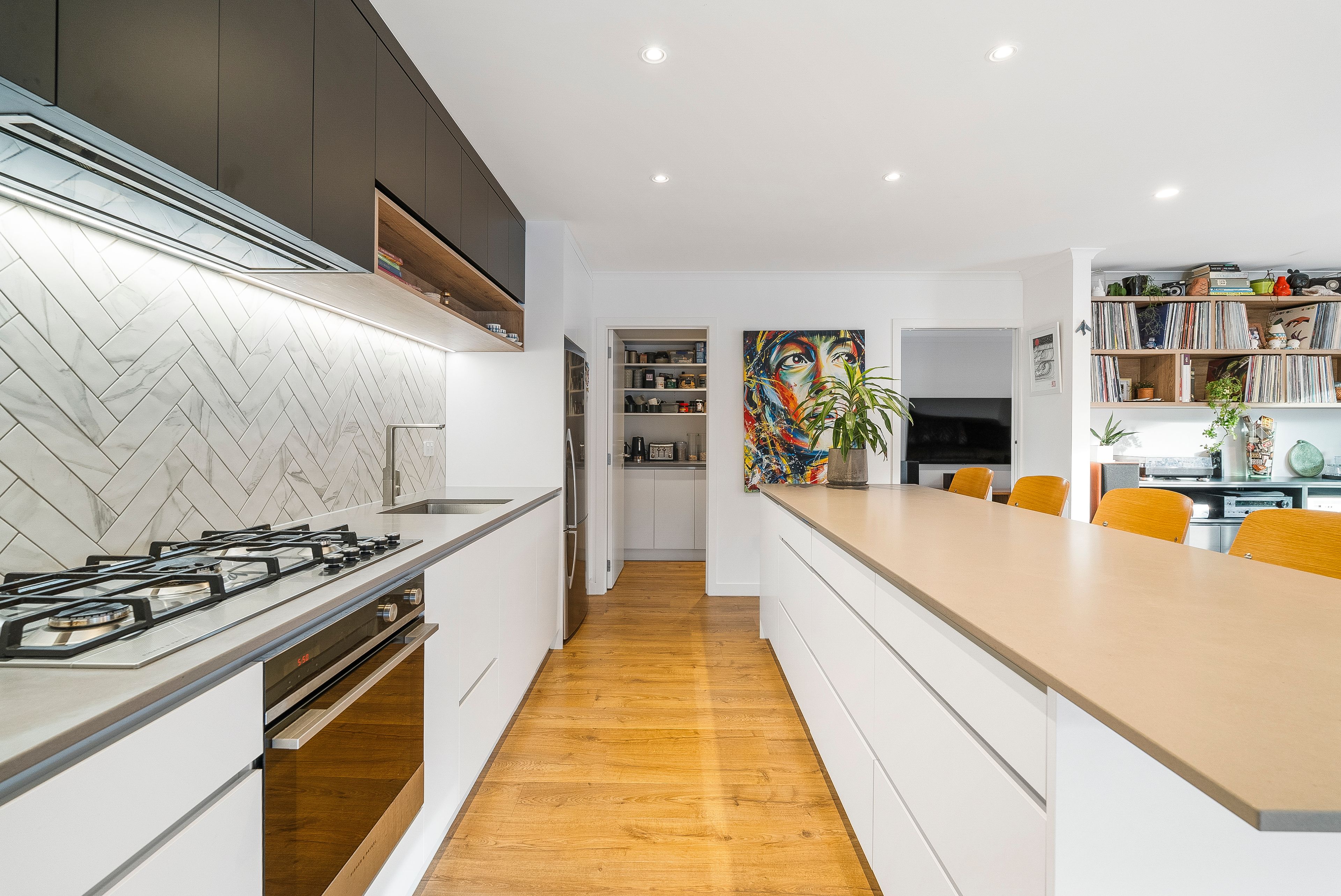 Enter through the electric gate, down a meticulously landscaped driveway to a double internal access garage complete with separate office. Inside, an expansive open-plan living area seamlessly connects the kitchen, dining, and lounge. The kitchen, complete with breakfast bar, scullery, Fisher and Paykel appliances, and gas hob, is perfect for family meals and culinary adventures.