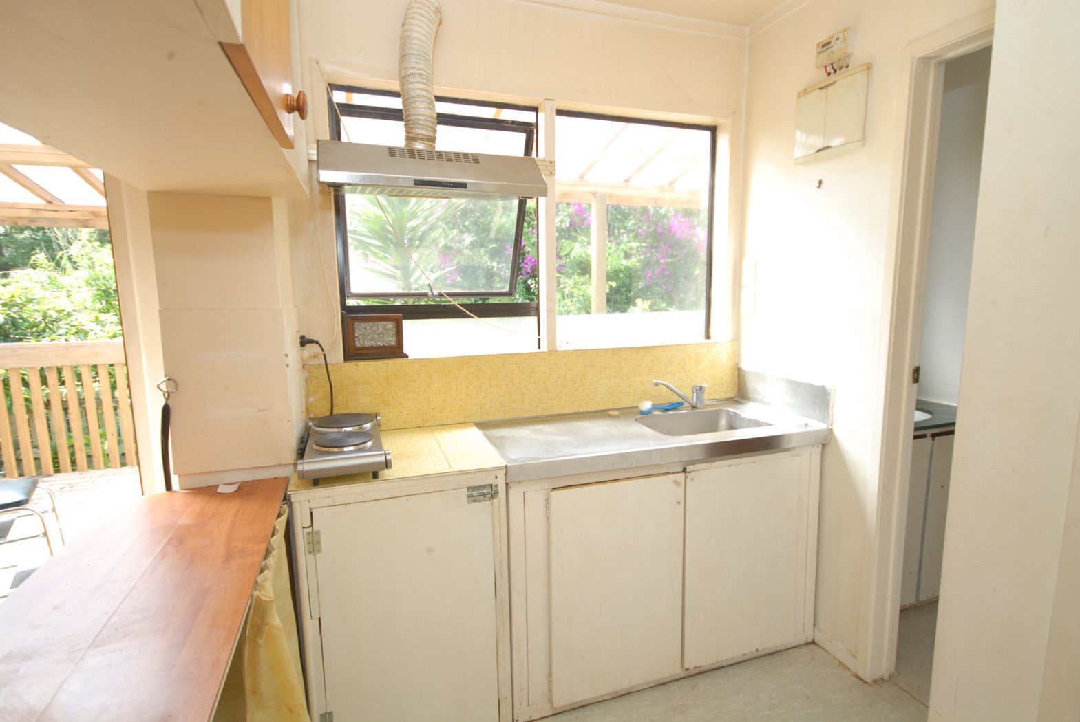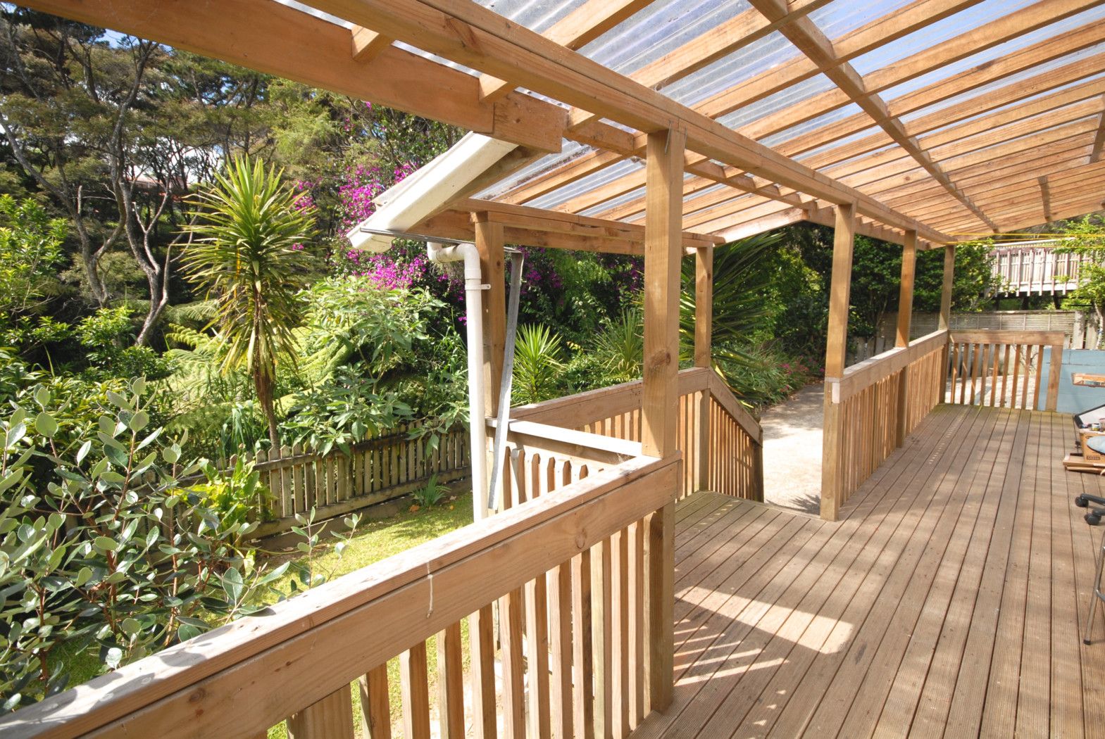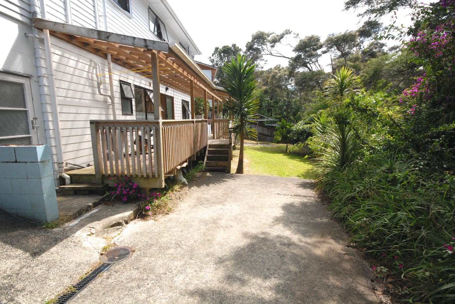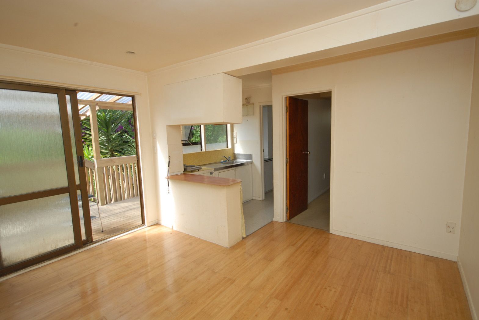 2 Bedroom flat with parking space and deck area situated under a house. Ready to move in now.