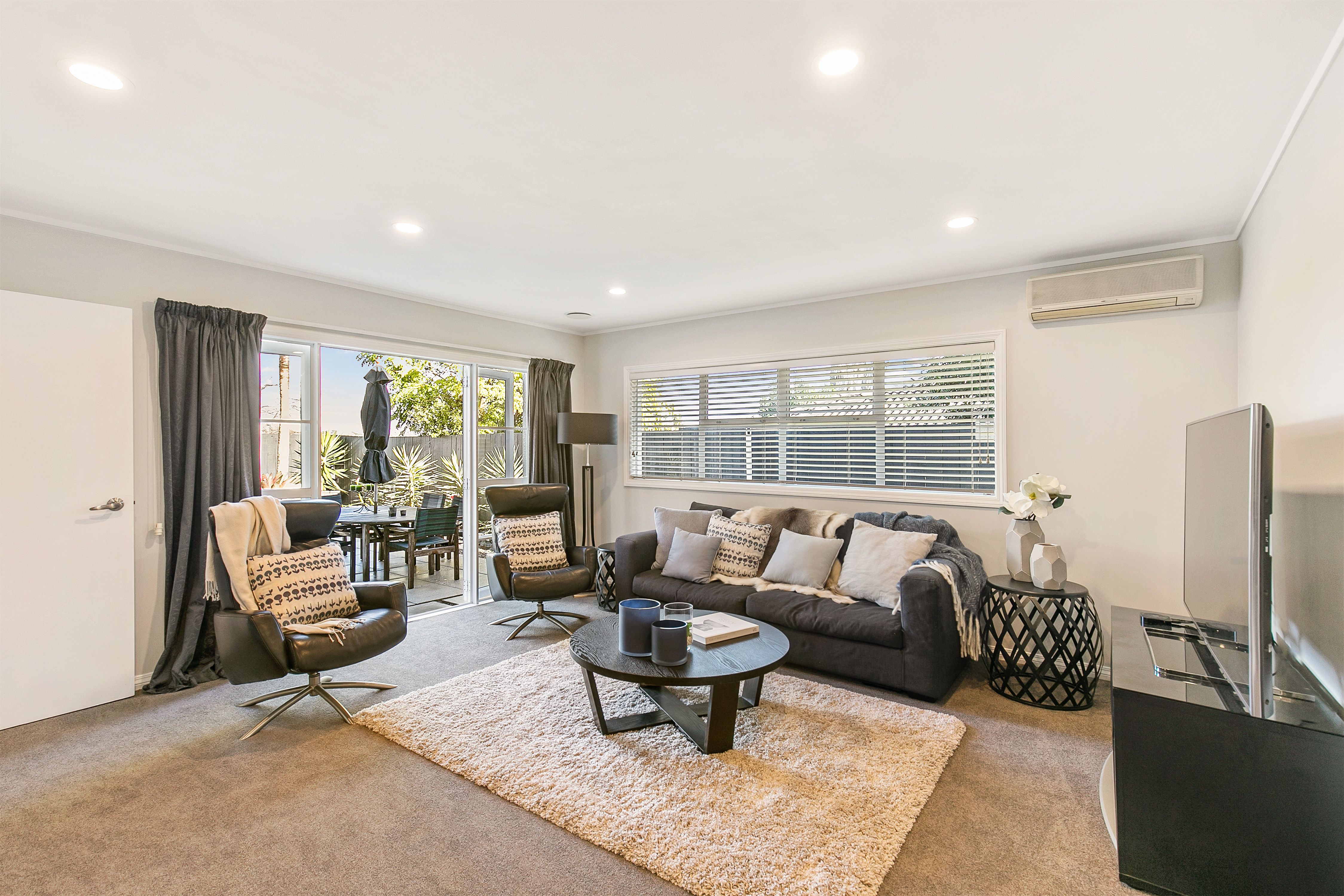 -Great indoor/outdoor flow from both living areas to a flat, low maintenance, fenced garden