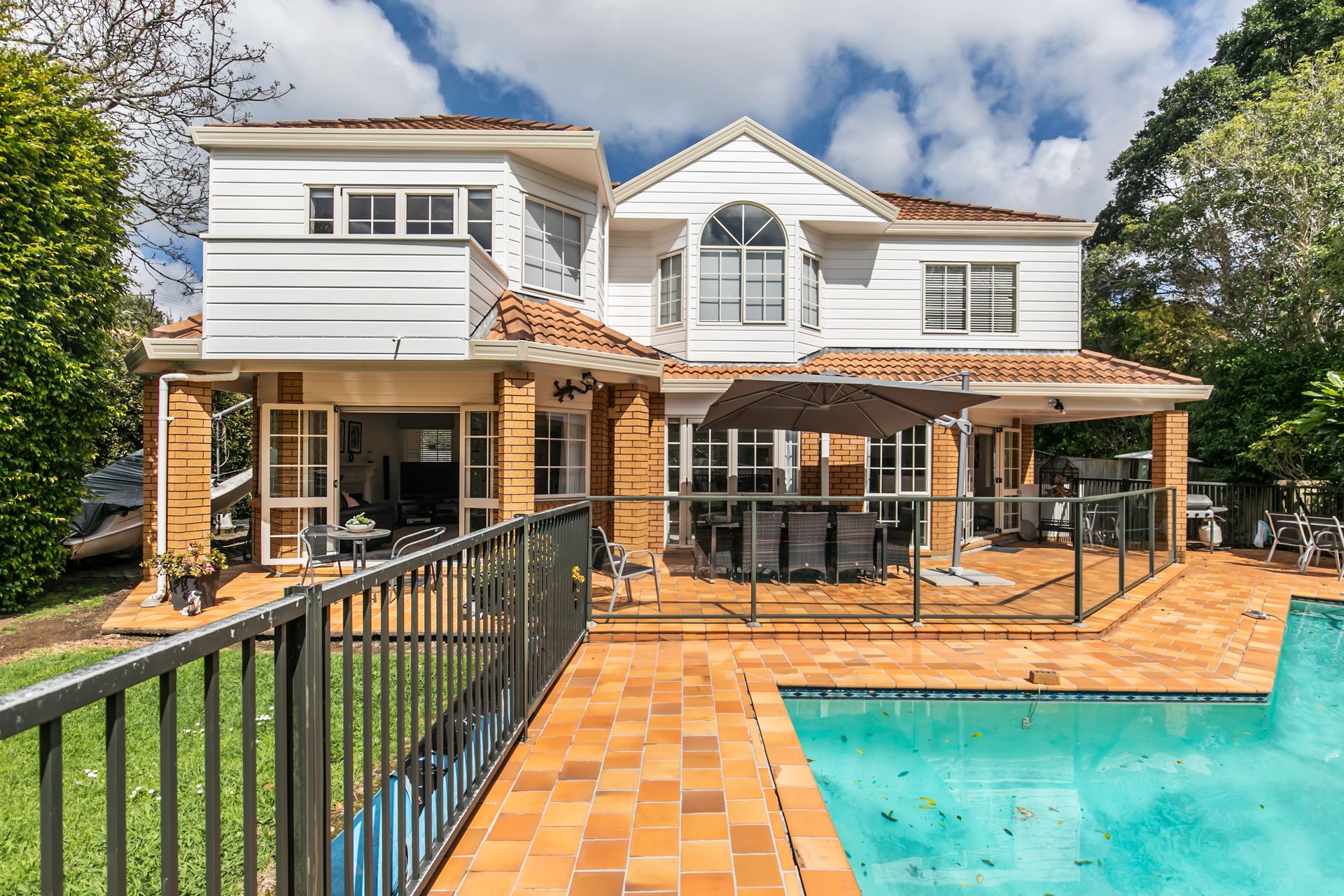 The home is constructed of brick and cedar weatherboard cladding with a concrete tile roof and our lovely owners have cared for the home beautifully. For such a large property the home is low maintenance and framed by lush tropical style gardens.