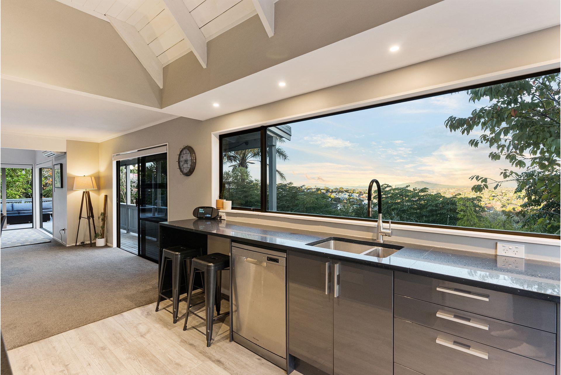 Set well off the main road in an elevated position, the home is completely at one with it's setting capturing unreal panoramic vistas with Rangitoto Island on full display, while inside a complete upgrade has been elegantly executed.