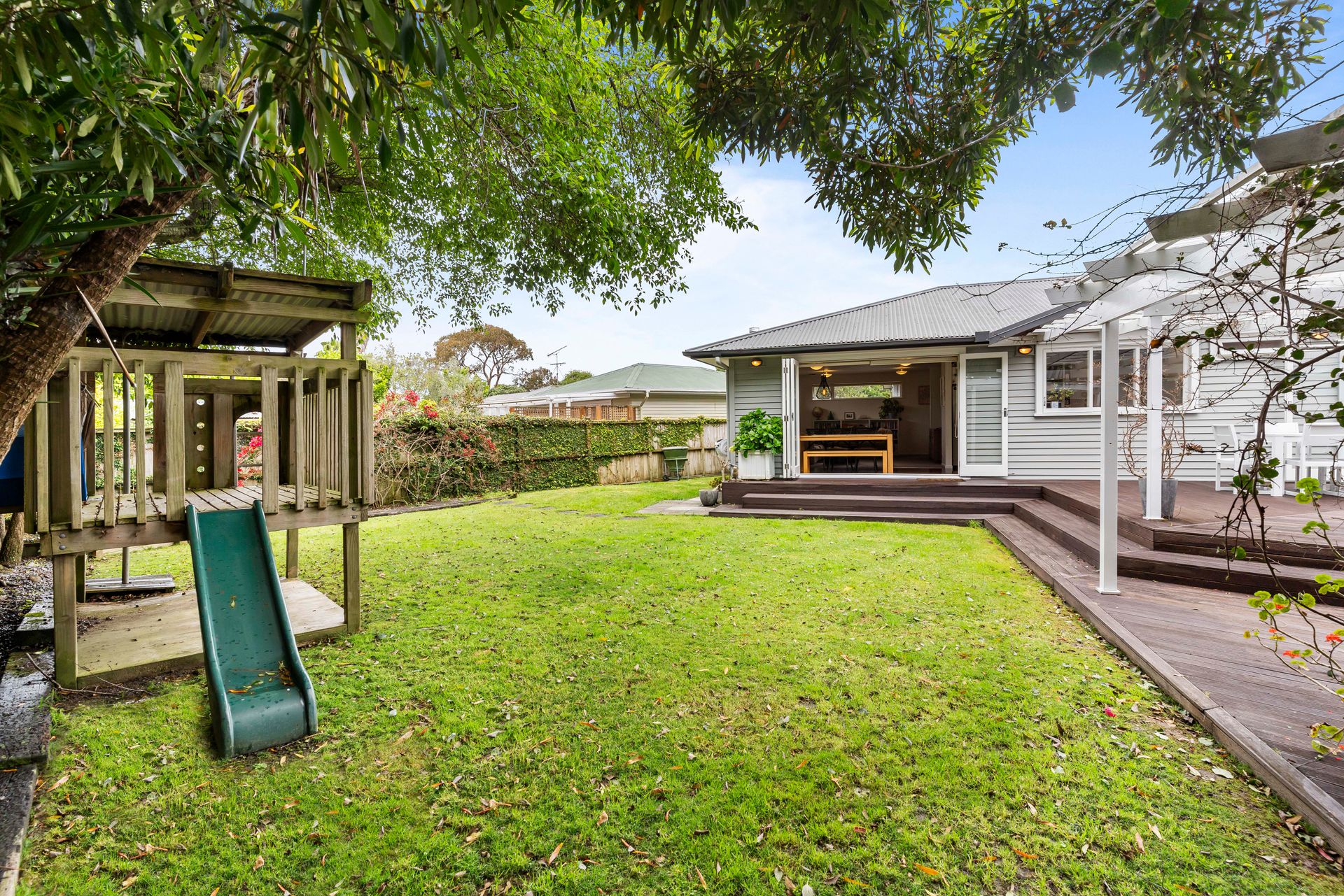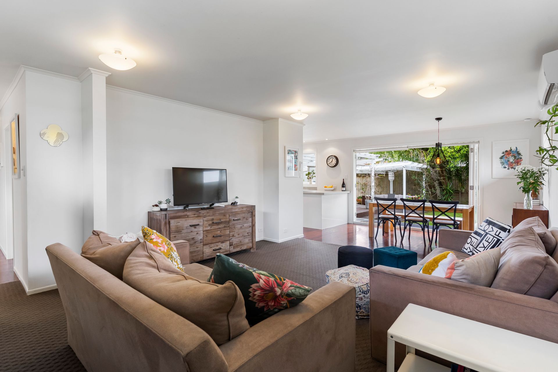 • Open plan kitchen living and dining that opens out to an expansive sheltered deck perfect for those who like to entertain or have a BBQ.