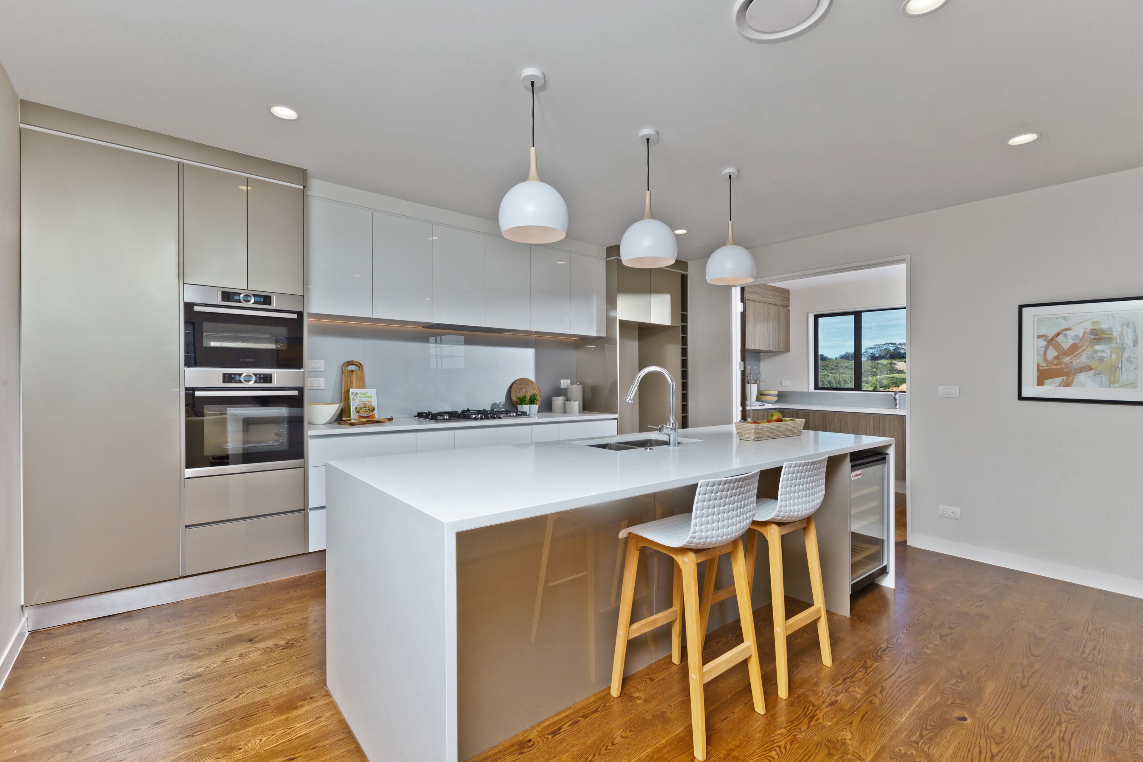 The home offers a very modern kitchen with quality appliances and a butler's kitchen, open plan living, underfloor heating in the bathrooms and there is even air-conditioning so that you can truly relax on those hot summer days.