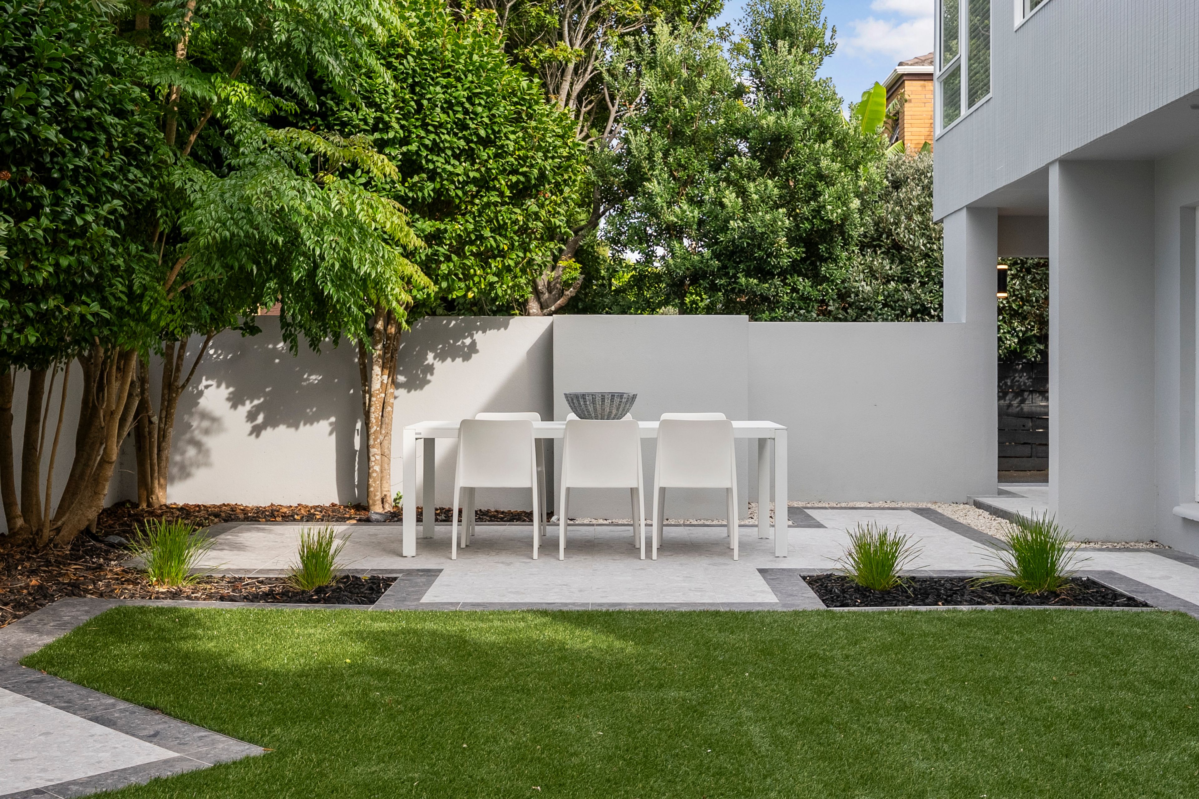 • Low-maintenance, flat and fully fenced lawn for children and pets.