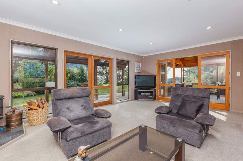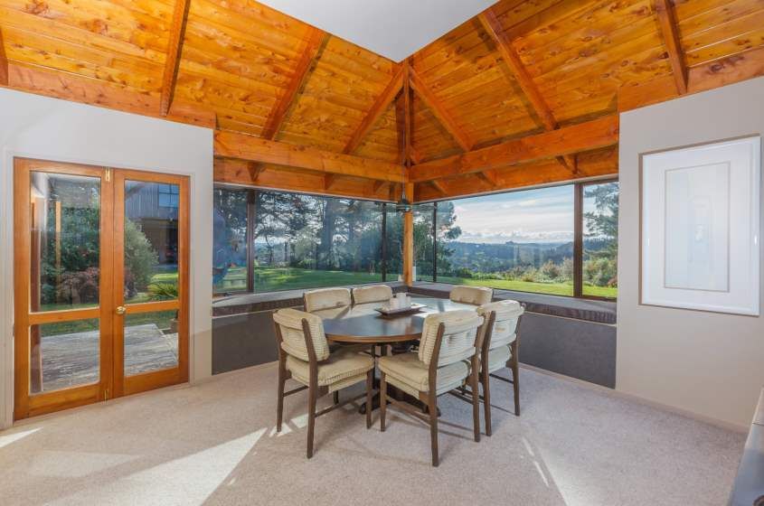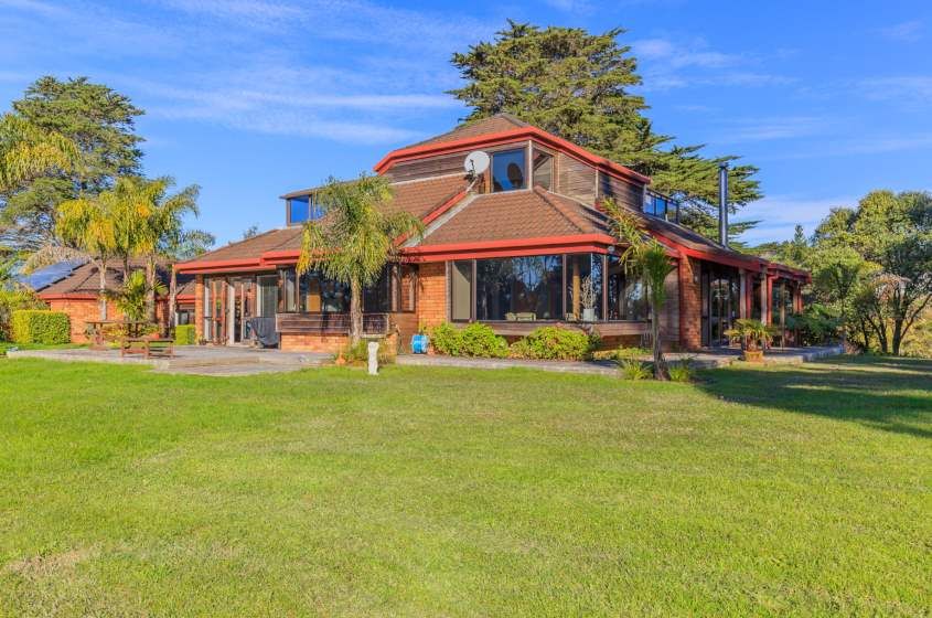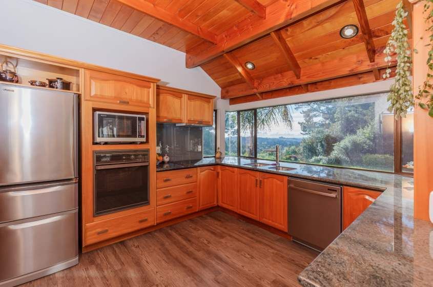 * All rooms have doors opening out to enjoy the wrap-around deck. A well designed and inviting front porch invites you in. You will be impressed with the quality throughout - from the Kauri kitchen to the high feature sarked Macrocarpa ceilings - unique and appealing.